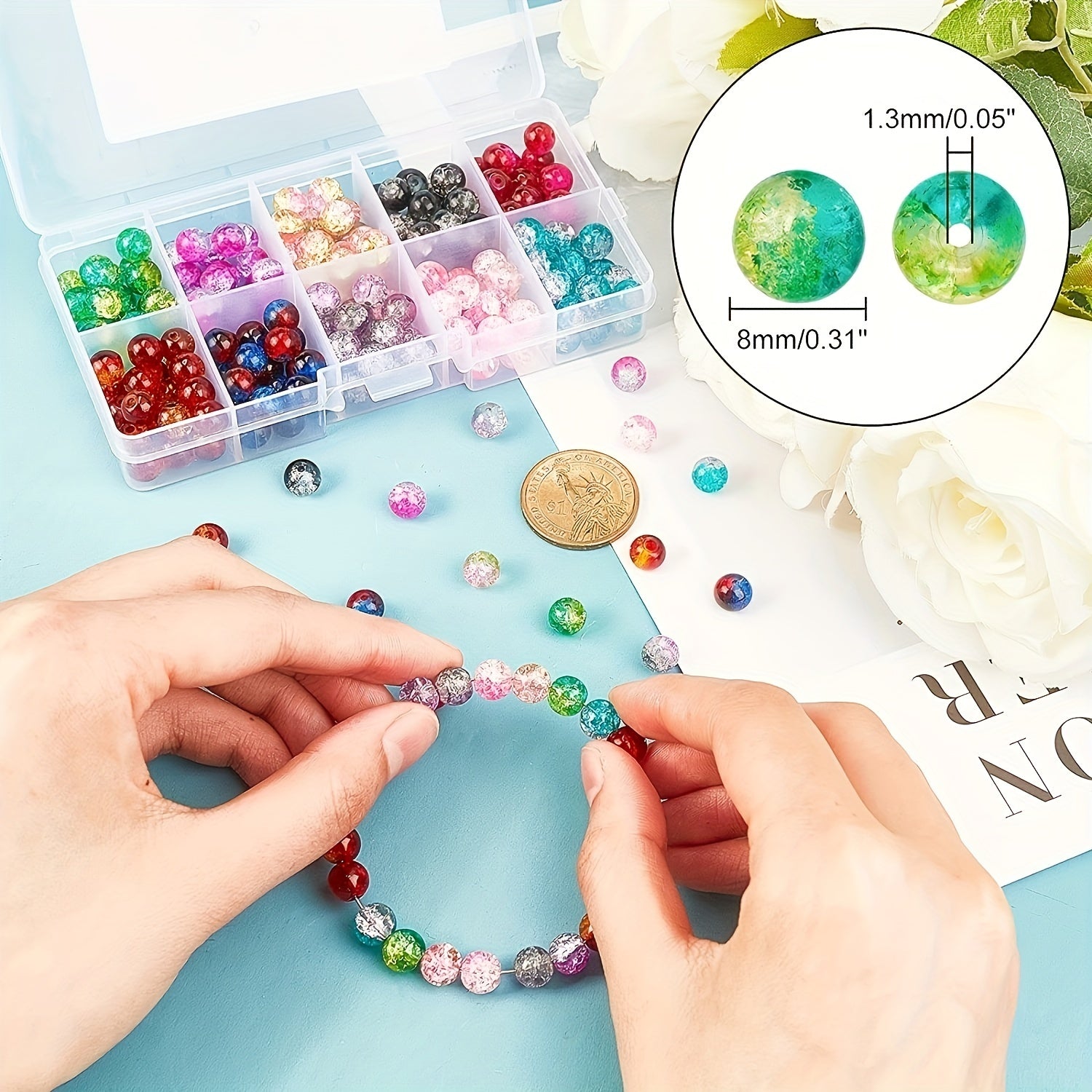 Add a touch of elegance to your jewelry creations with these 8mm round handcrafted crackle glass beads. Perfect for beading, friendship bracelet making, and creating unique mother's jewelry.