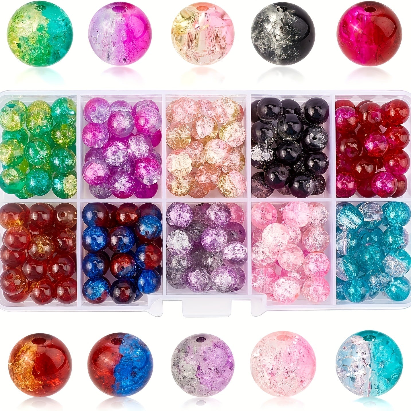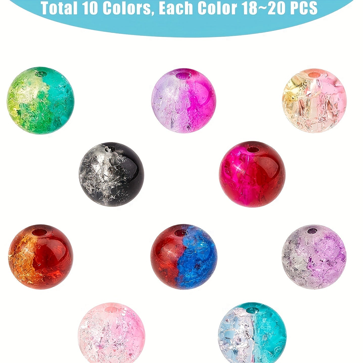 • 10 different colors of round handcrafted crackle beads