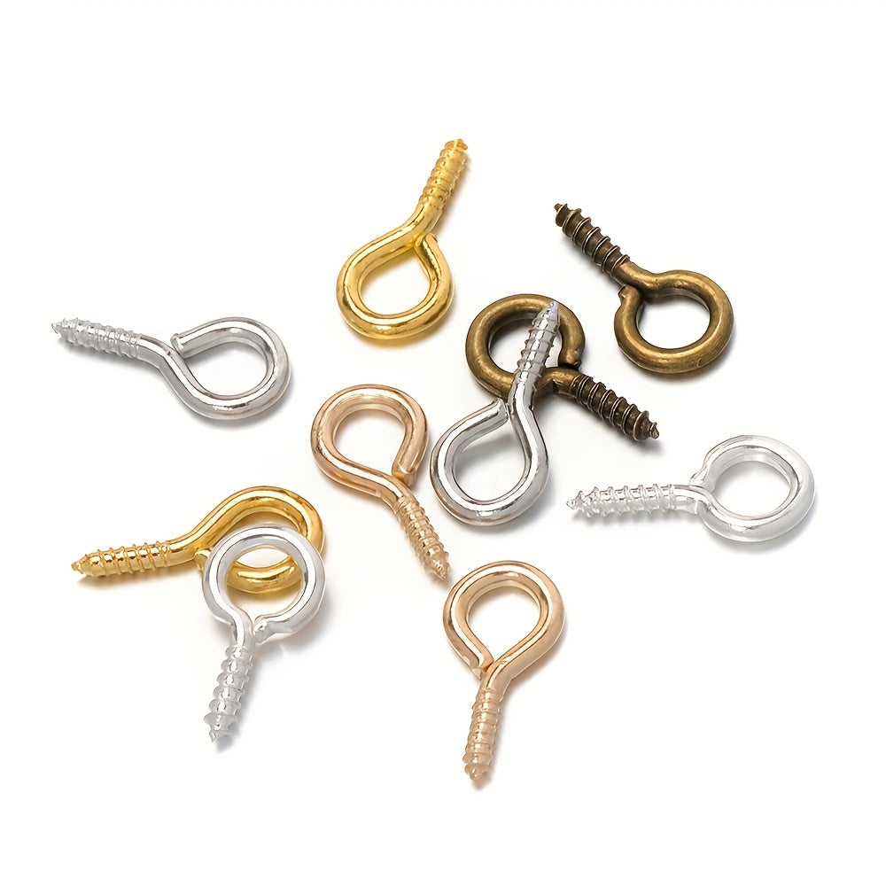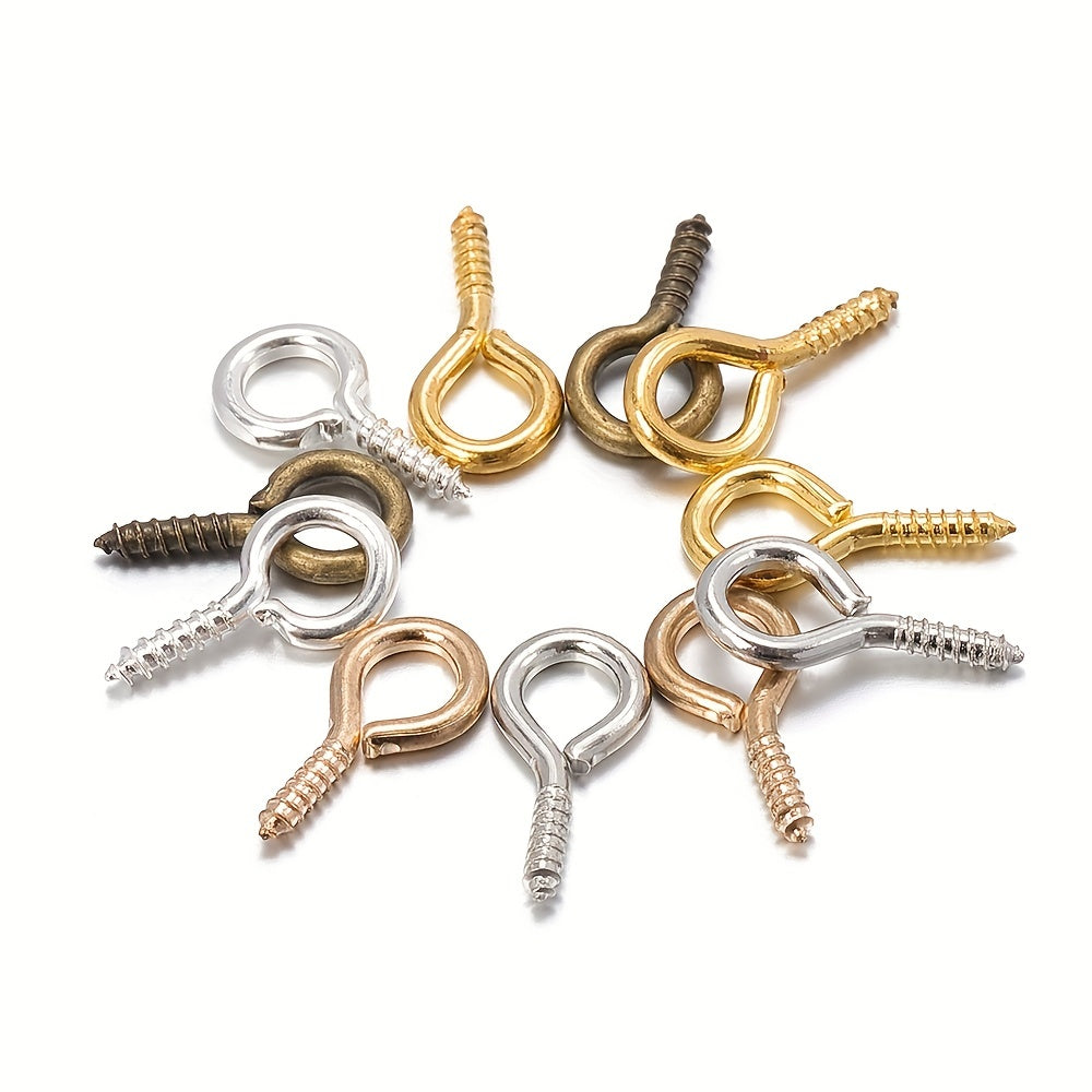 Get this set of 200 small alloy eye hook screw pins perfect for your DIY jewelry making projects. Each pin features a tiny eye for easy connection.