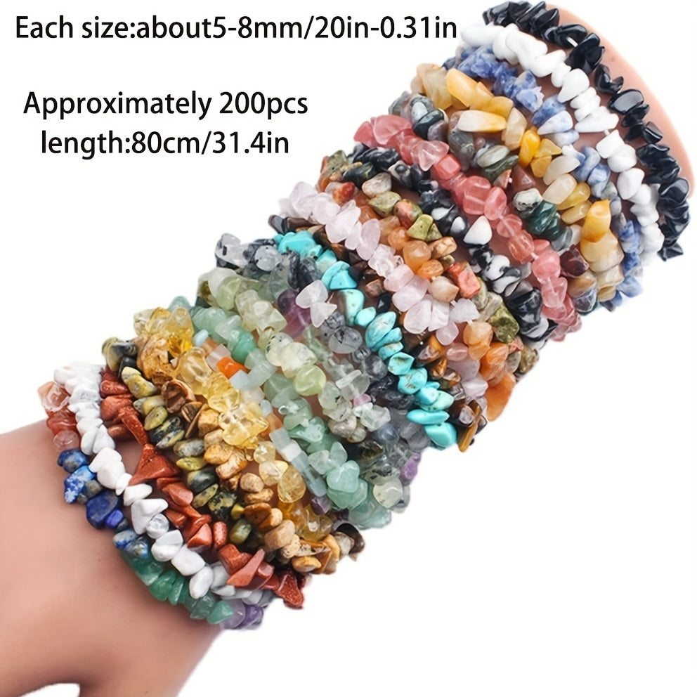 Enhance your jewelry making with this set of 200 natural chip stone beads in a variety of multicolor gemstones. Each bead has healing crystal properties that can bring positive energy to your creations.
