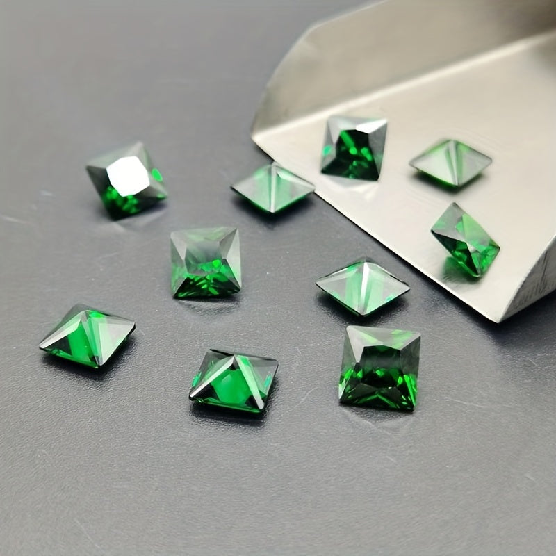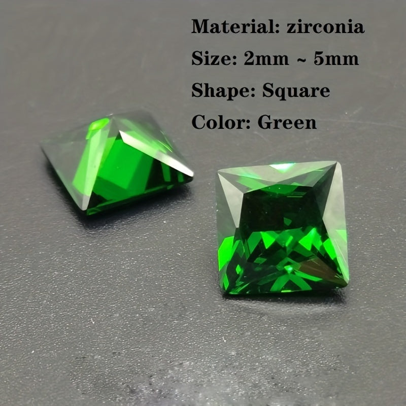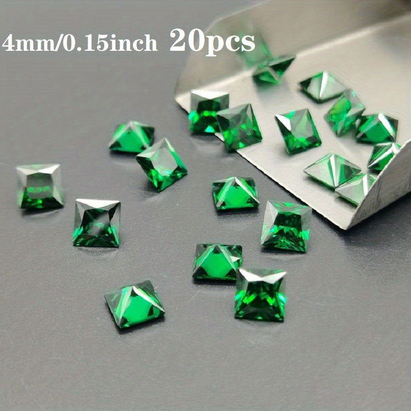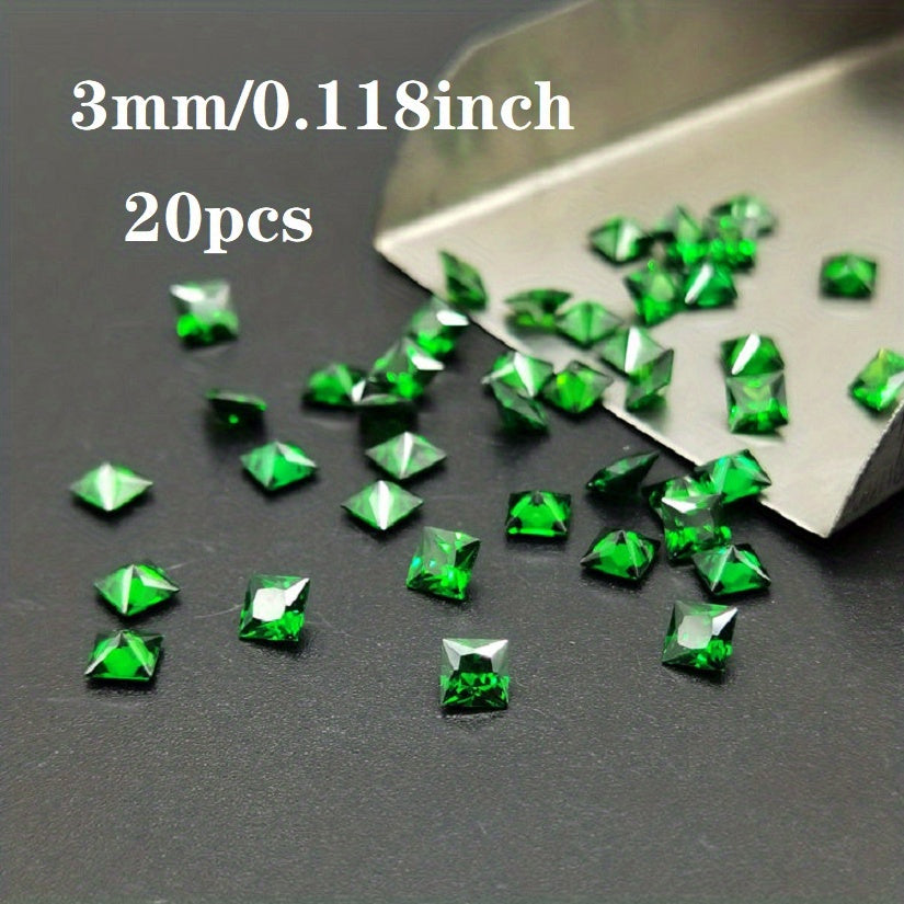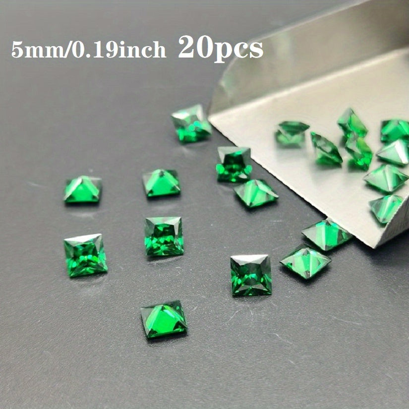 This bag contains 20 pieces of green square cut cubic zirconia crystals in 2mm and 5mm sizes, perfect for creating beautiful rings and other jewelry pieces.