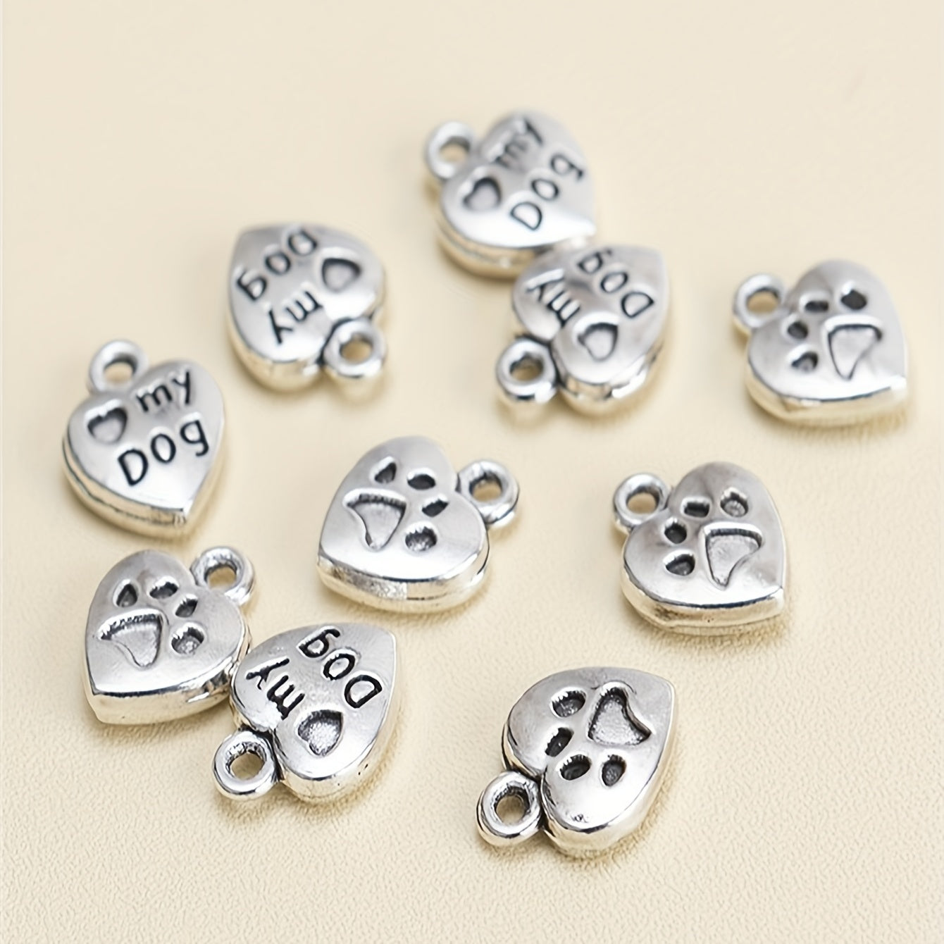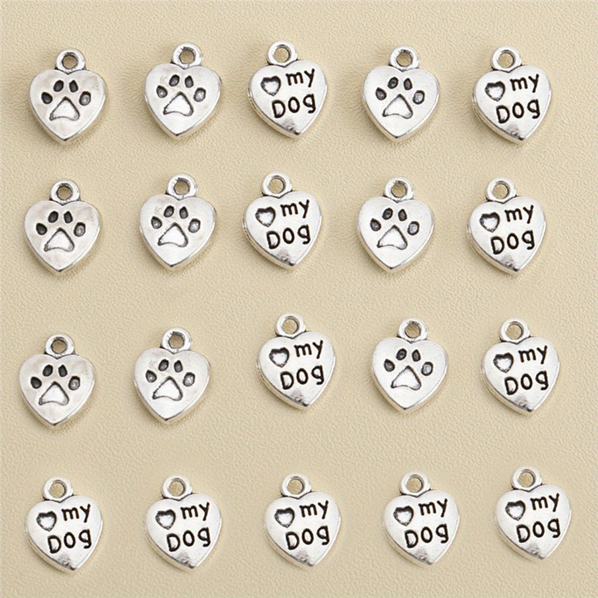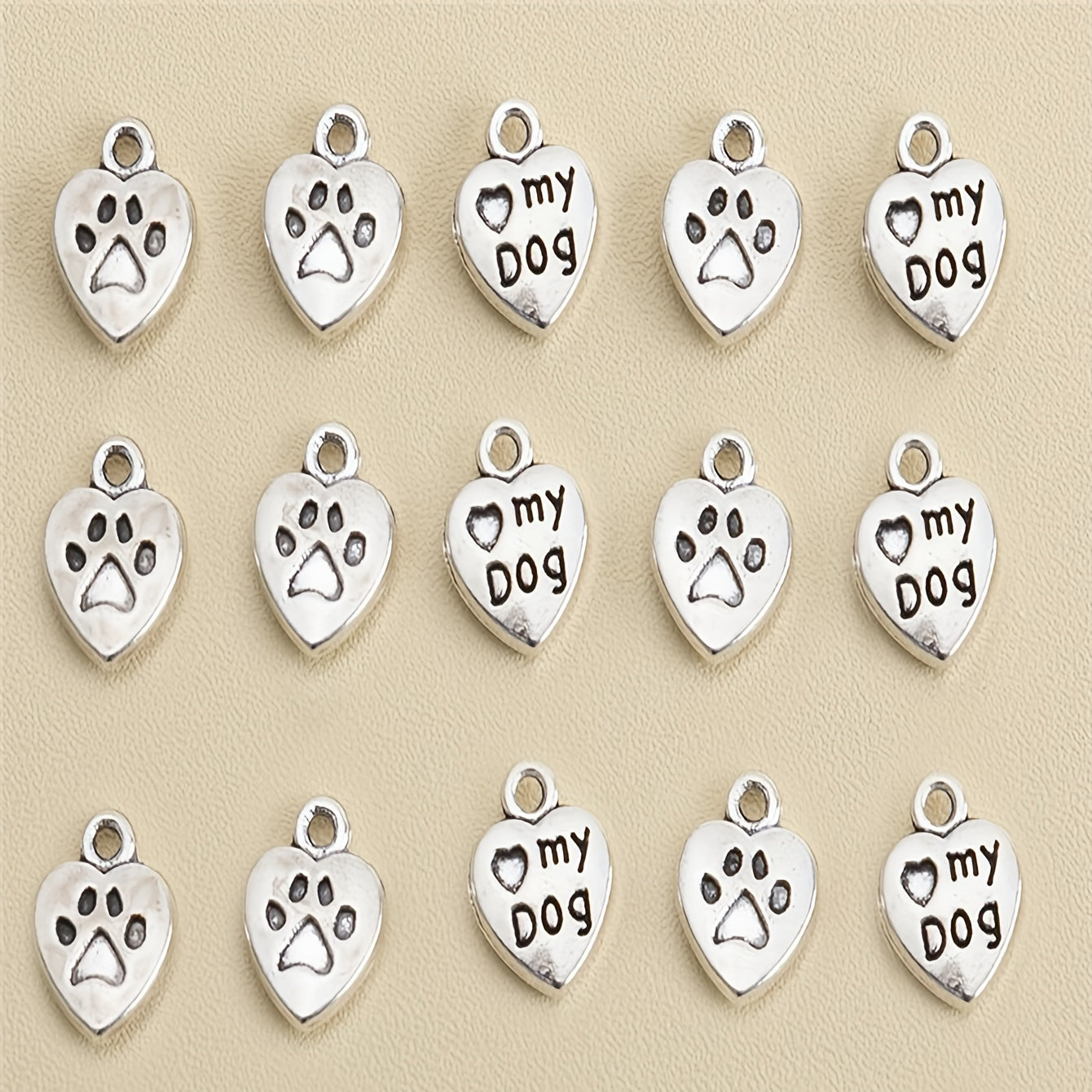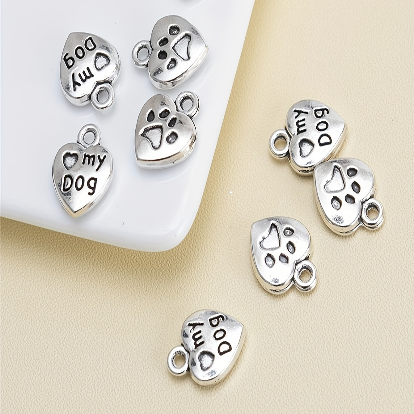Add a touch of love to your jewelry creations with these heart-shaped pendants featuring clew print and dog detailing. Perfect for DIY crafts and antique jewelry making.