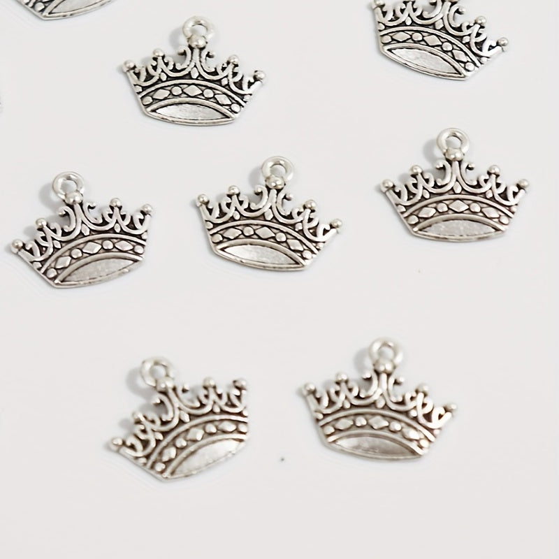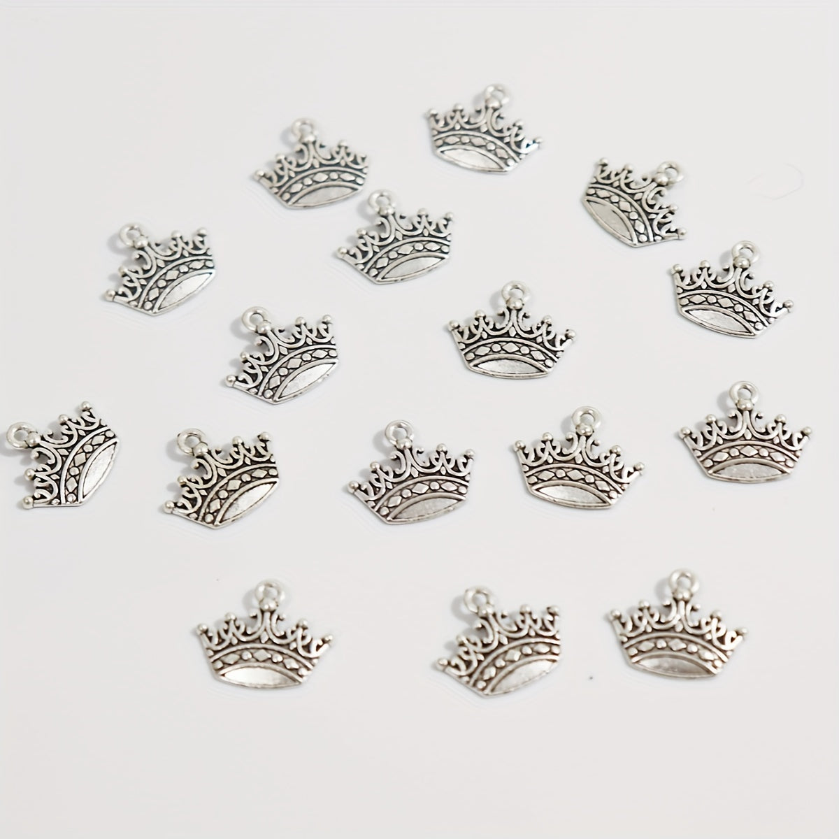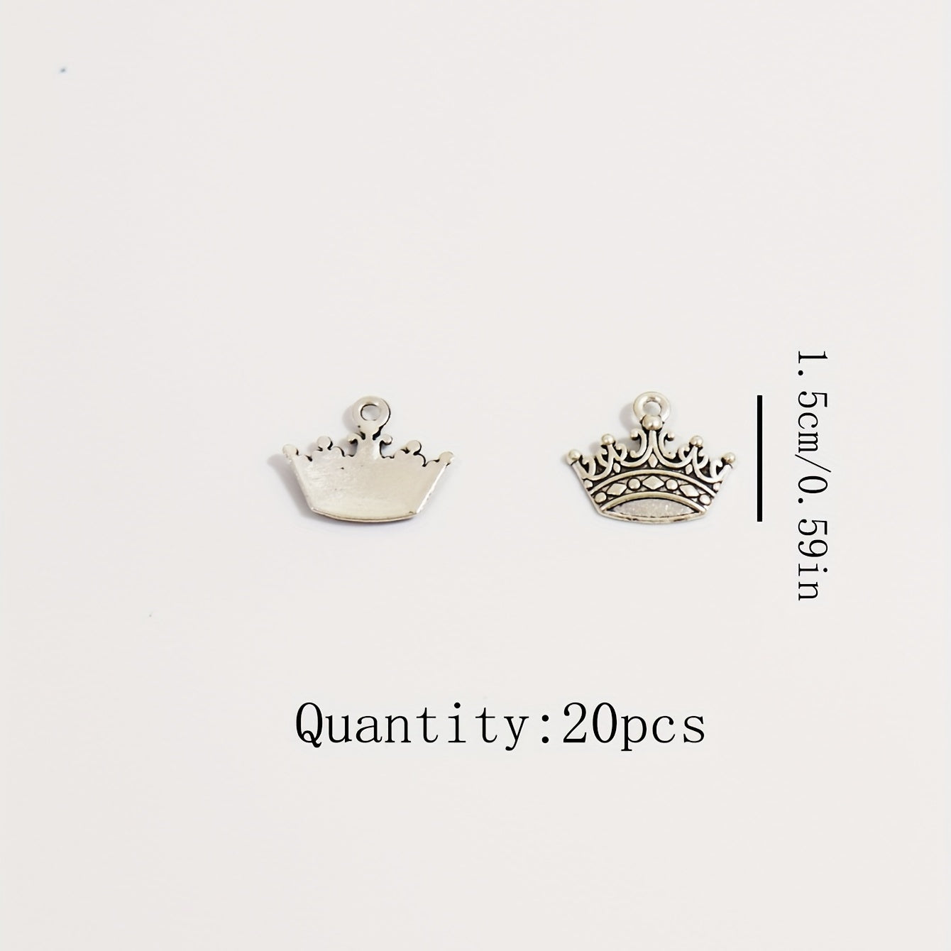 This set includes 20 silvery queen crown alloy pendants that can be used to create earrings, bracelets, necklaces, and other accessories.