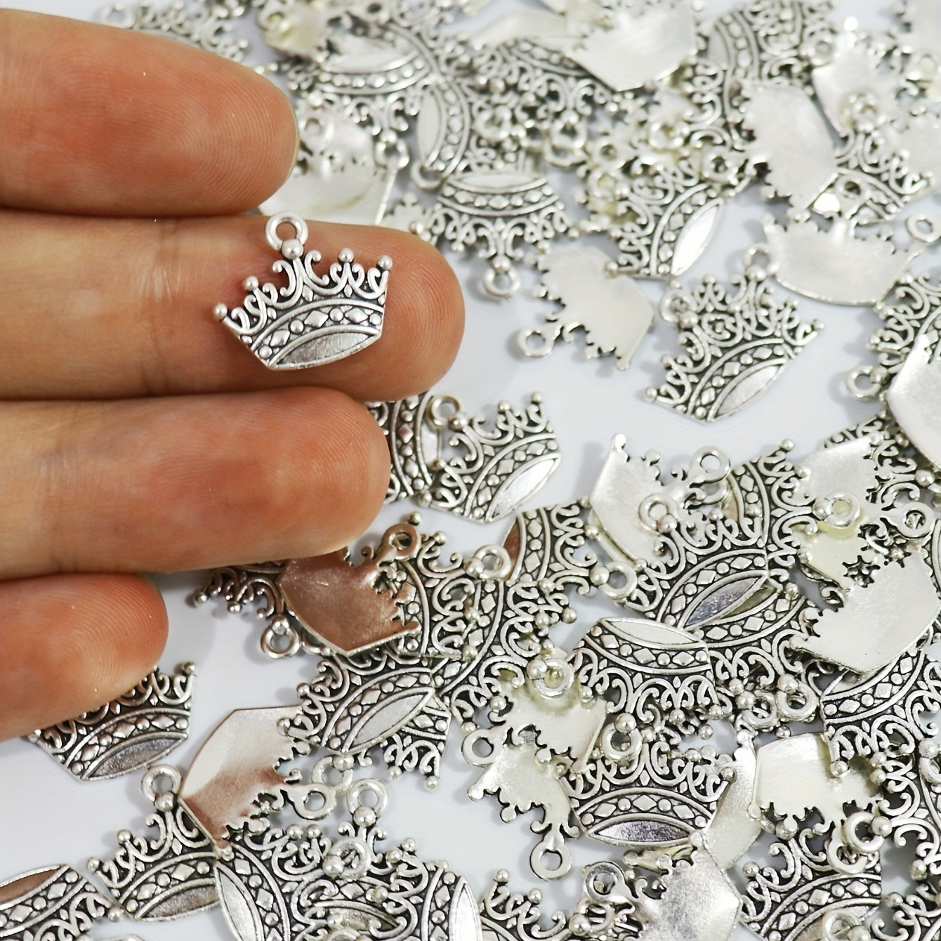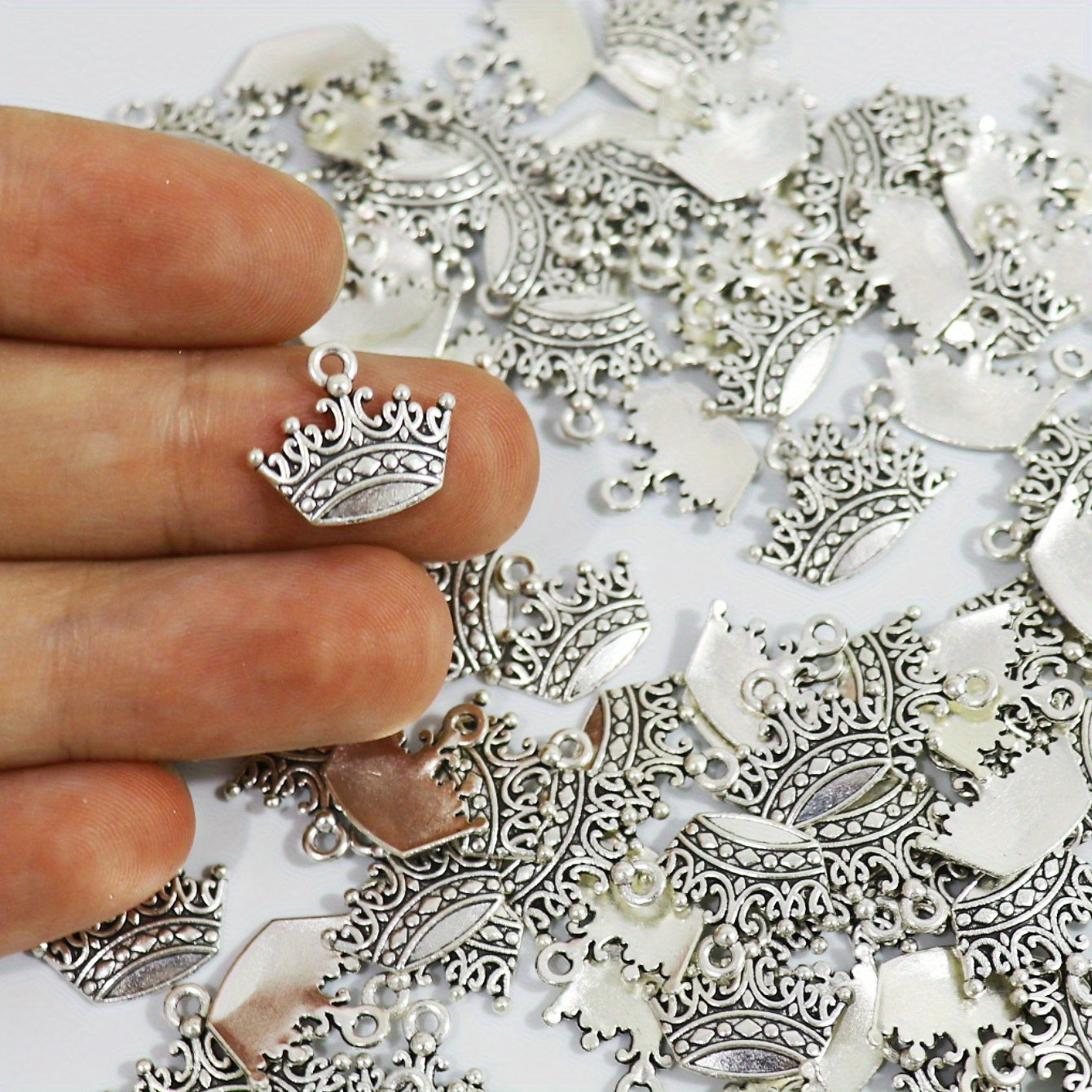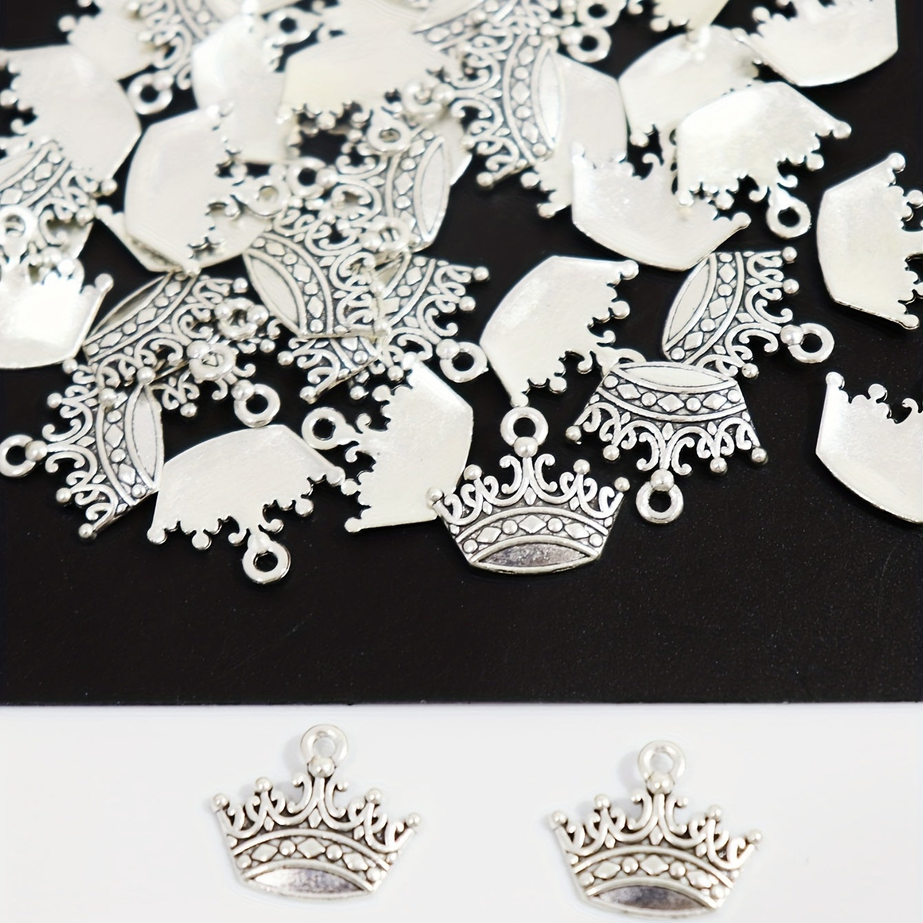 This set includes 20 silvery queen crown alloy pendants that can be used to create earrings, bracelets, necklaces, and other accessories.