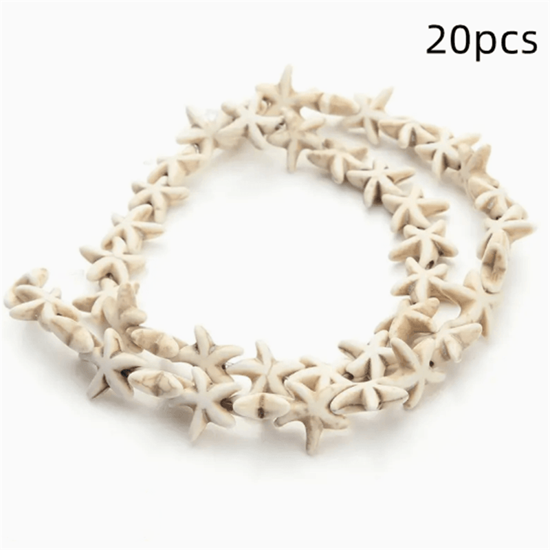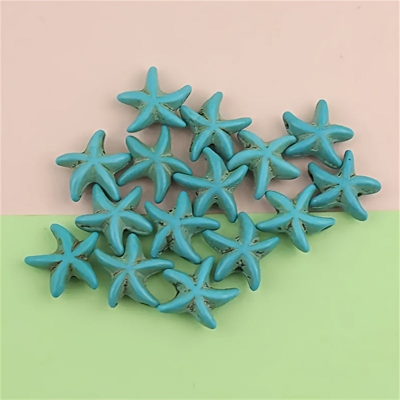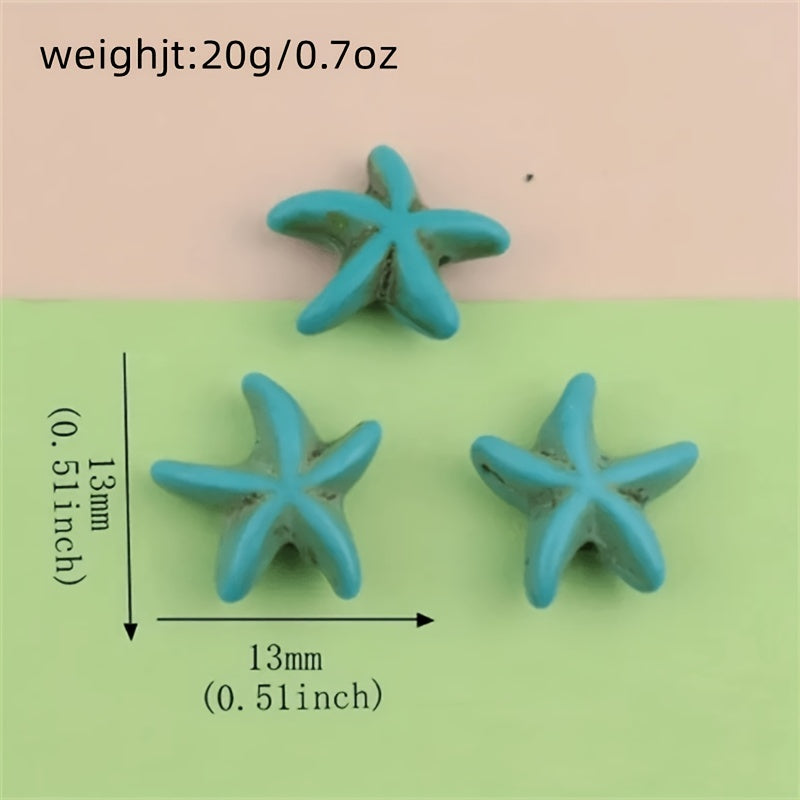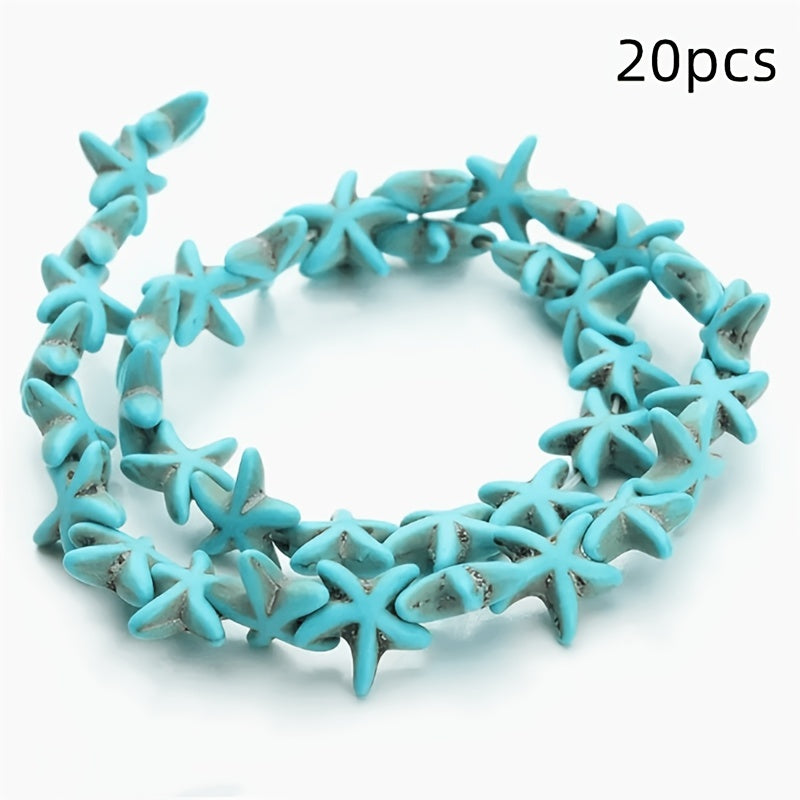 Enhance your jewelry collection with this set of 20 turquoise starfish beads. Perfect for creating earrings, bracelets, necklaces, and other accessories.