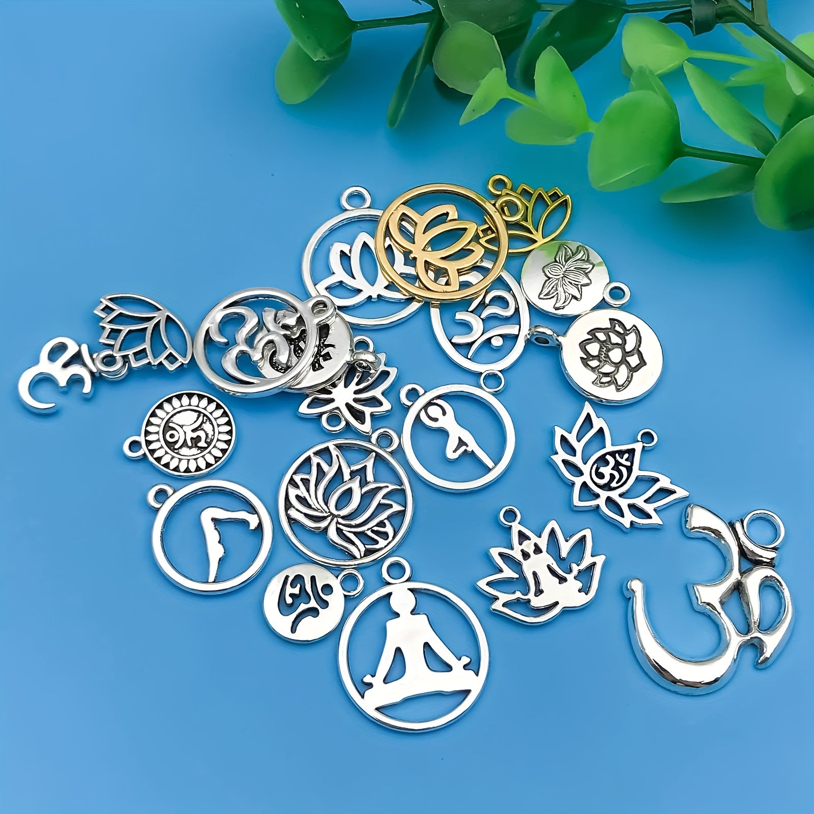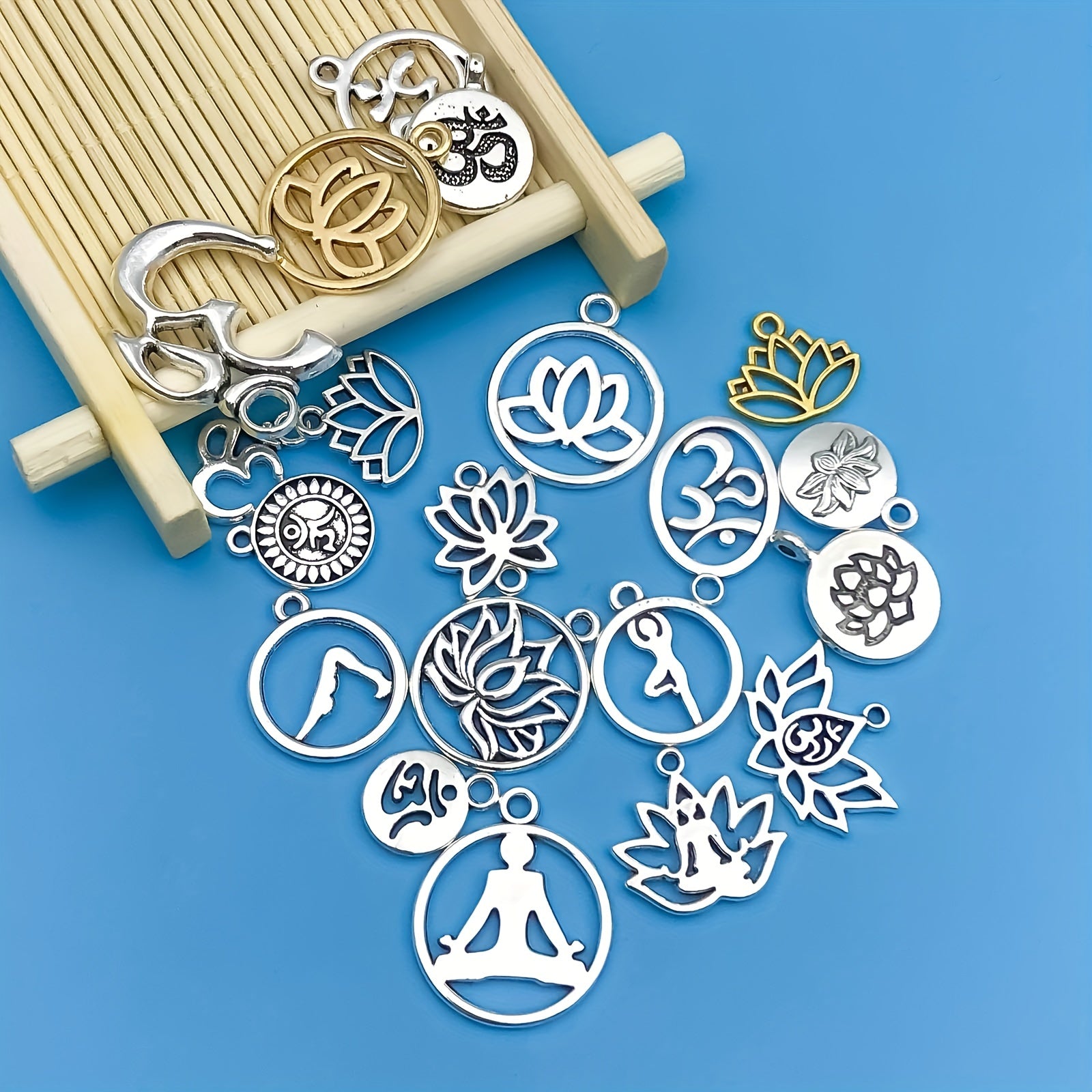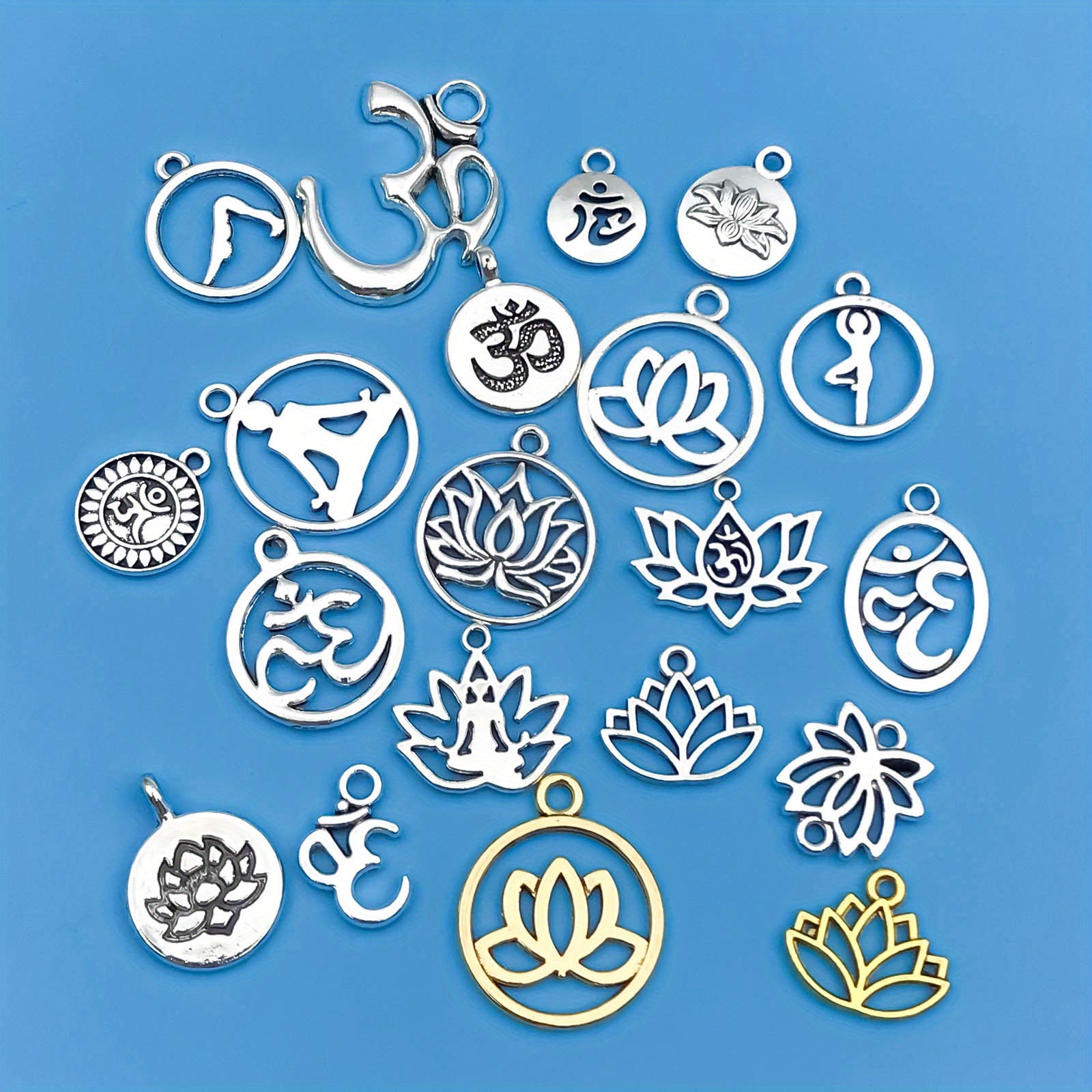 Get creative with these 20pcs zinc alloy antique silver yoga lotus shaped charms pendants perfect for making necklaces, bracelets, and earrings.