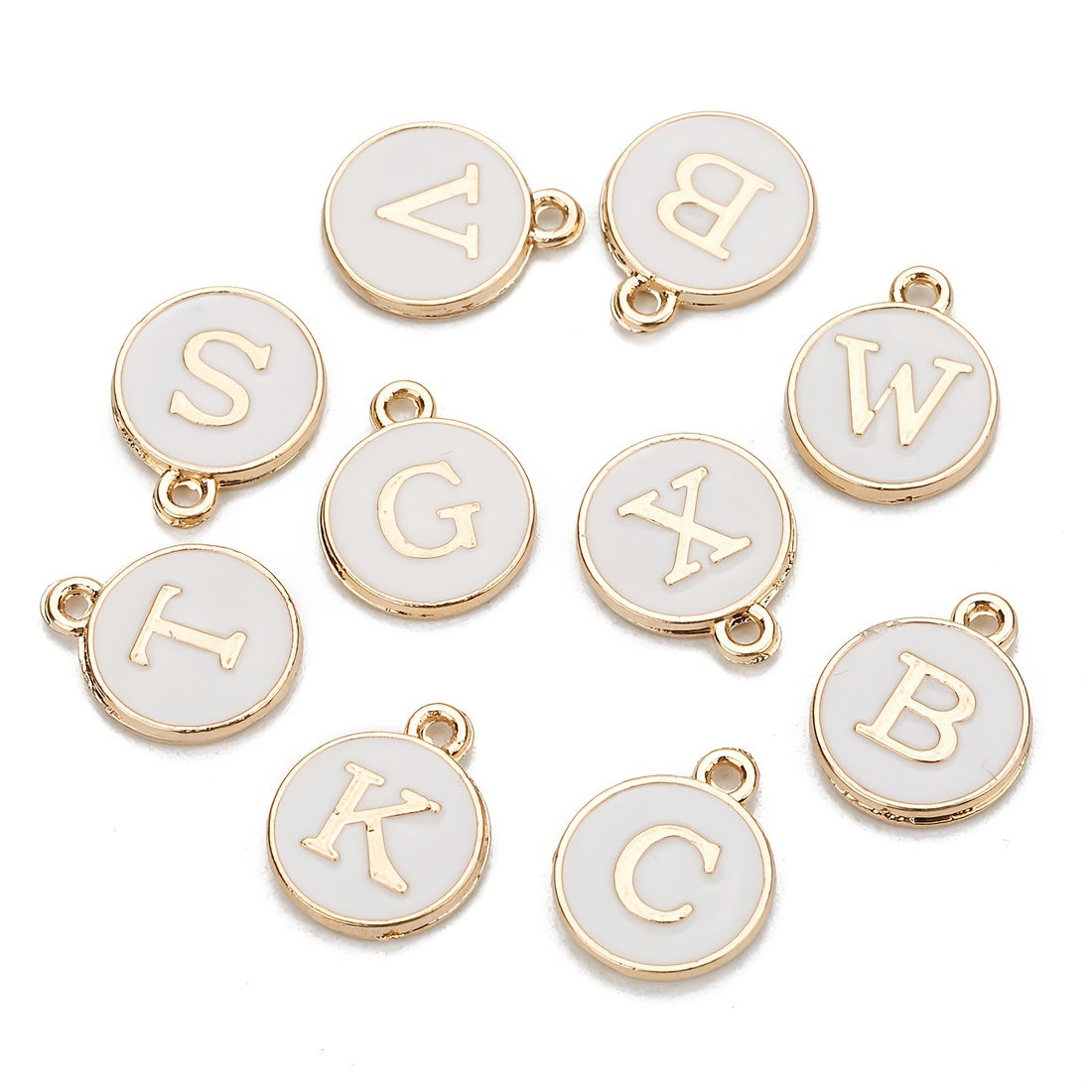 Get creative with these 24pcs letter pendants made from dripping oil, perfect for DIY projects. The double-sided design adds versatility to your jewelry-making endeavors.