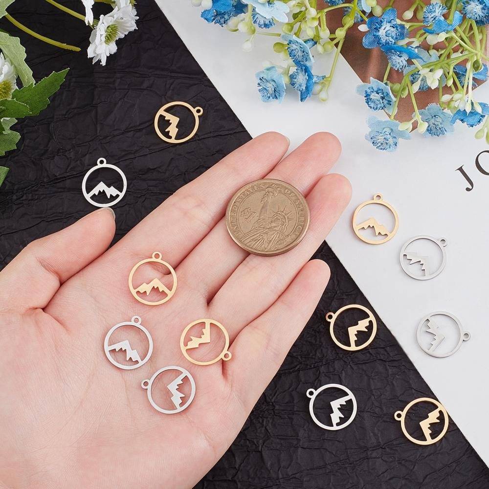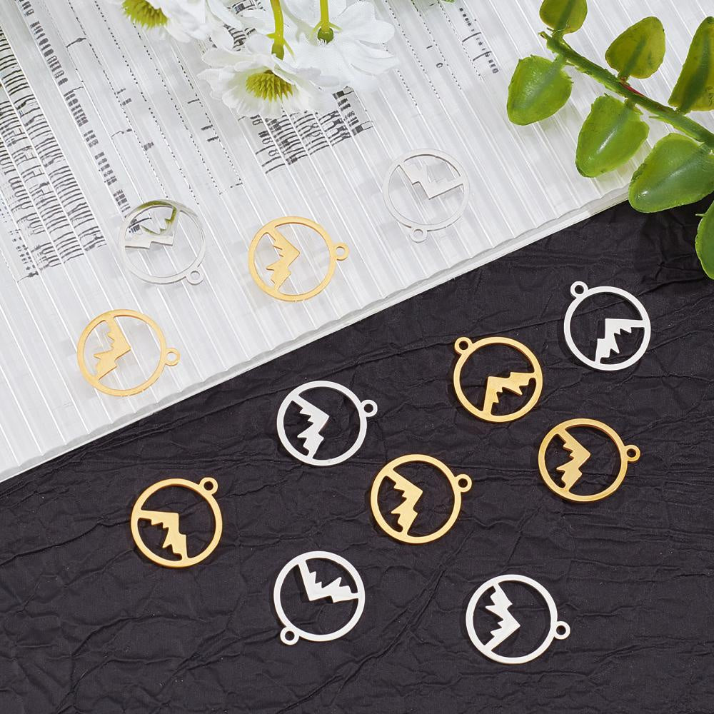 Enhance your DIY projects with this set of 24 laser cut stainless steel pendants. Ideal for creating necklaces, bracelets, and anklets.