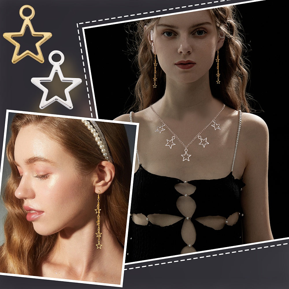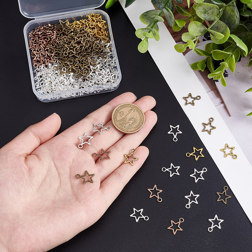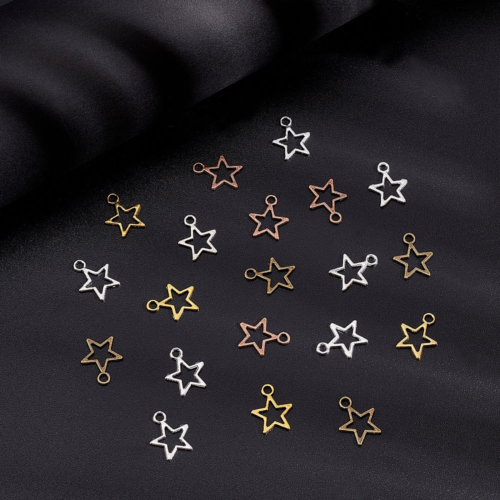 Get a bulk pack of 250 hollow star pendants with open back bezels, perfect for creating unique bracelets and necklaces. Each pentagram charm measures 12mm (0.47 inches) in size.