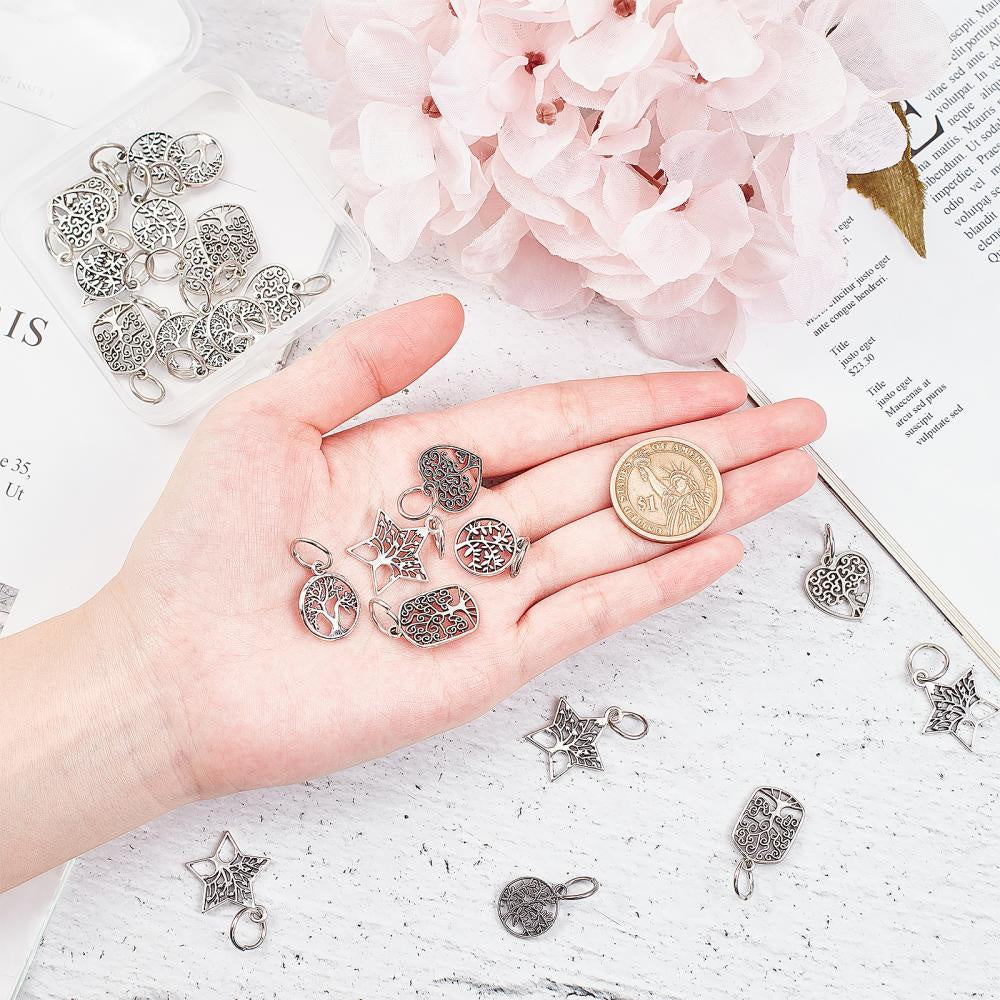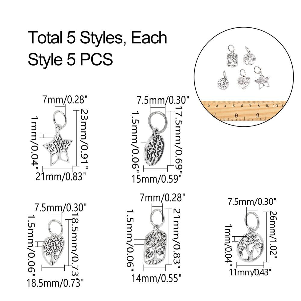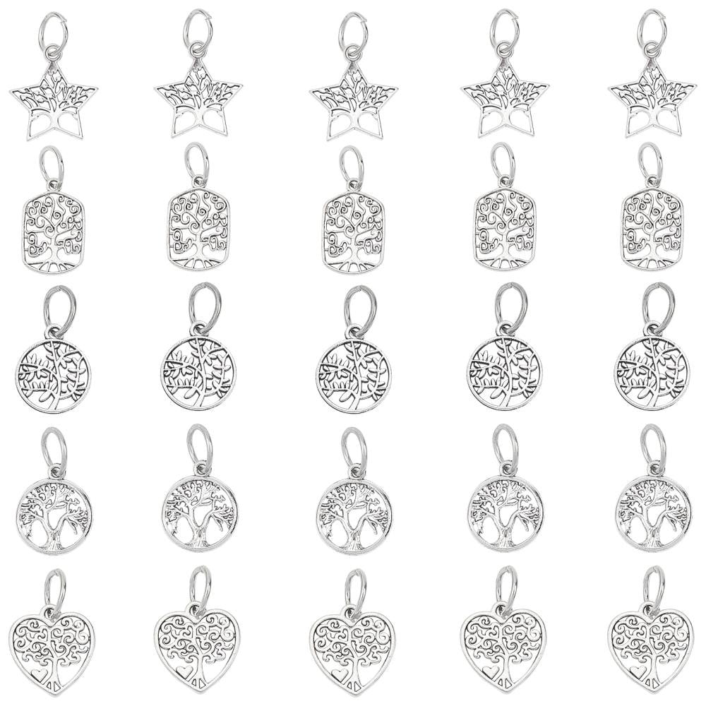 Get a pack of 25 assorted tree pattern alloy pendants for DIY jewelry making. Perfect for earrings, bracelets, and necklaces.