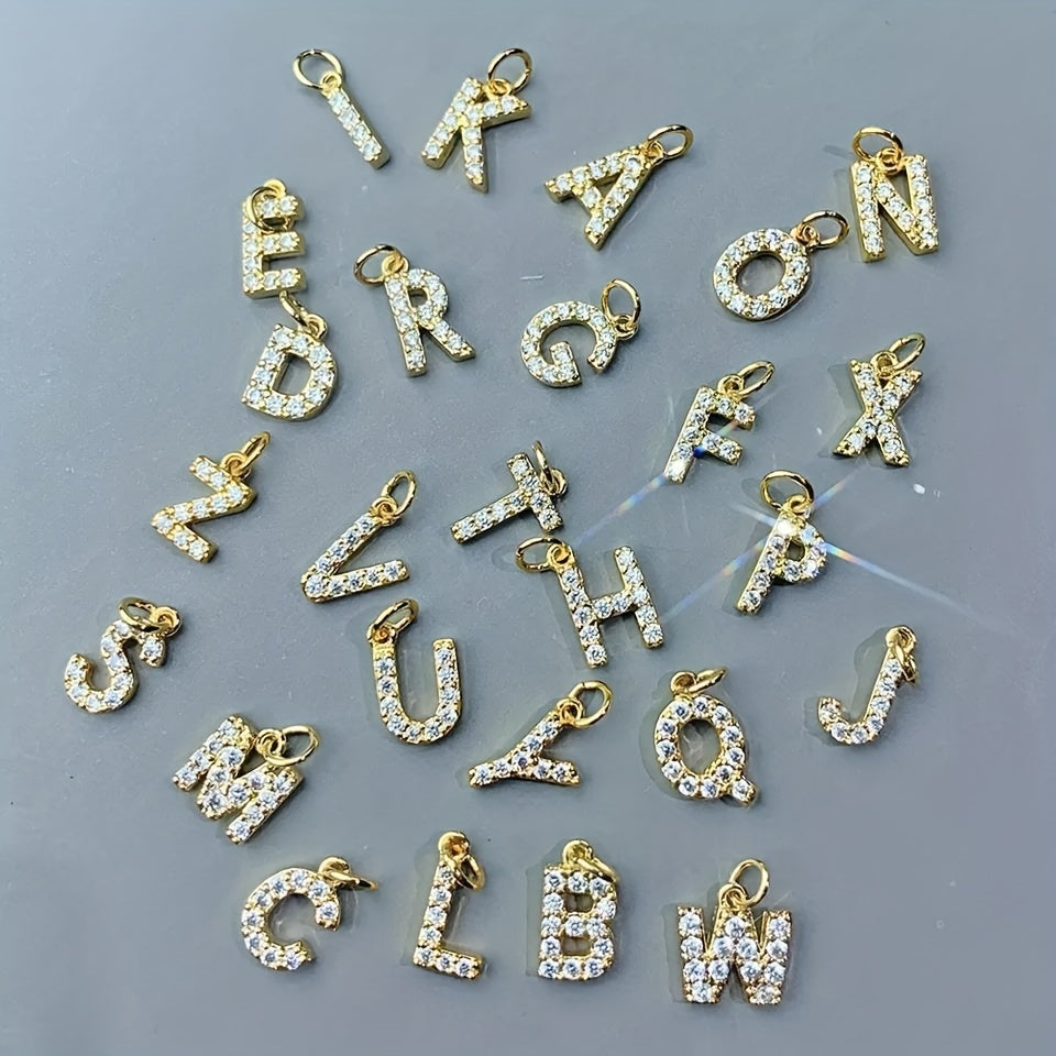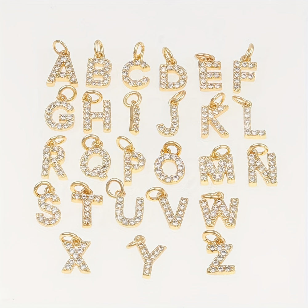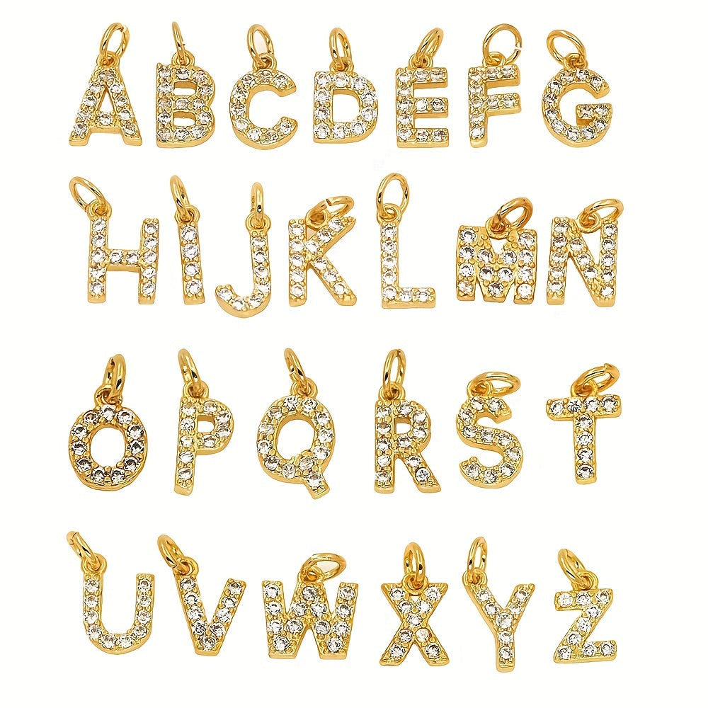 Enhance your jewelry making with this set of 26 letter charms featuring cubic zirconia decorations. Perfect for creating personalized bracelets and necklaces.