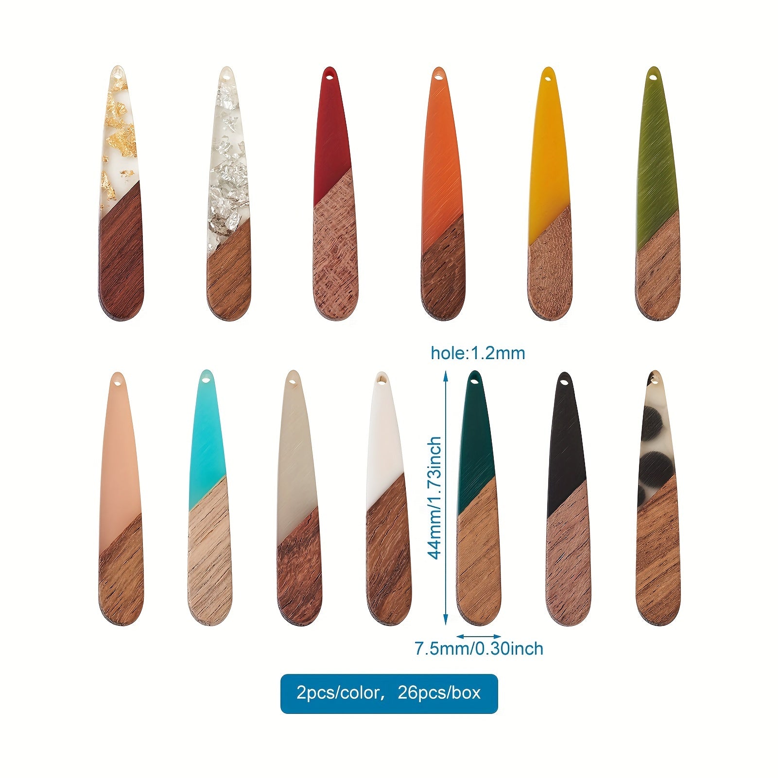 Get creative with this set of 26 mixed resin walnut teardrop pendants for making necklaces, bracelets, and earrings.