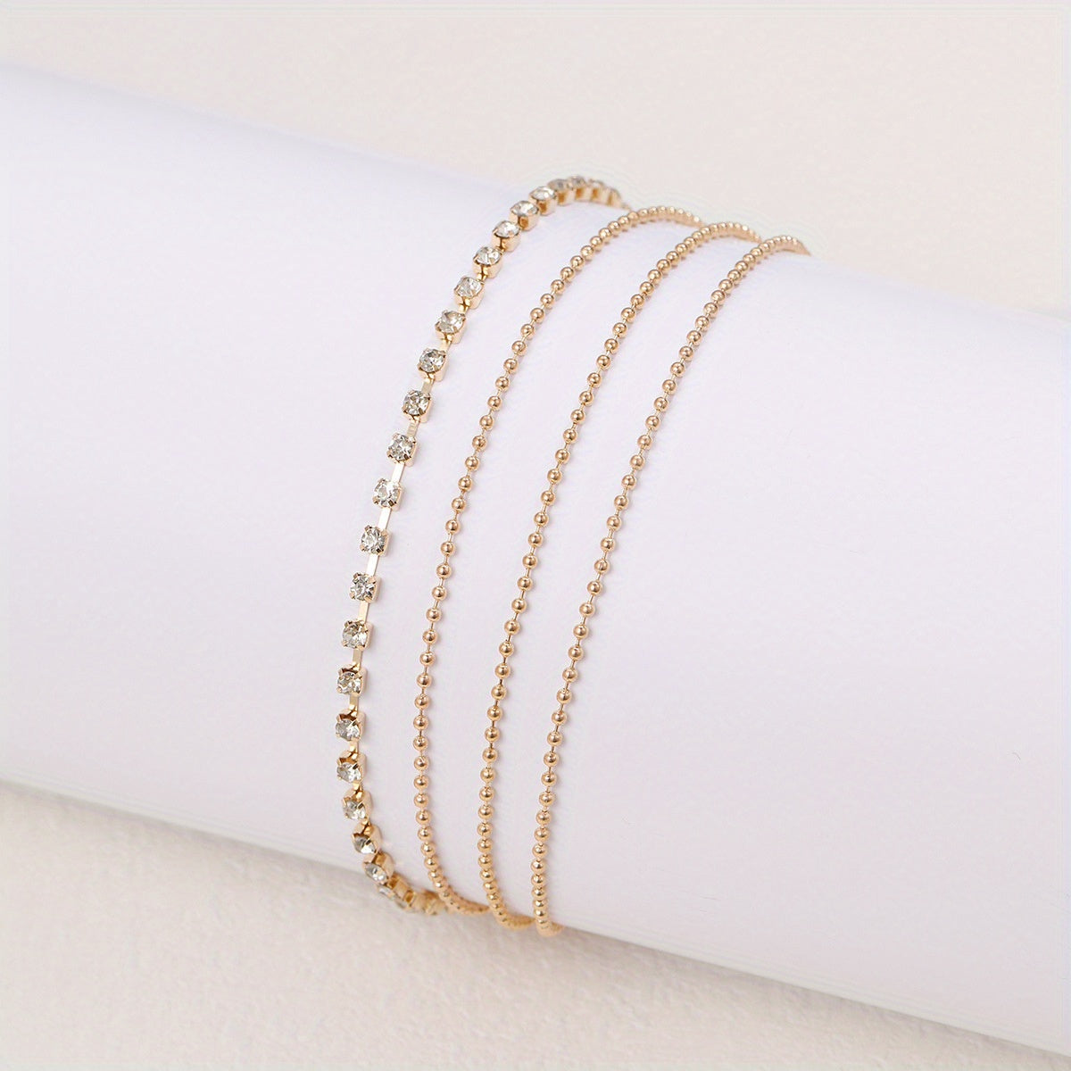 Enhance your summer look with this stylish anklet set featuring a layered chain design. Perfect for the beach or street shooting.