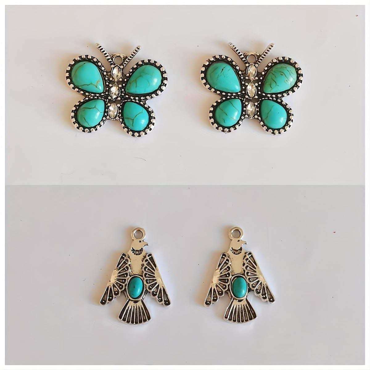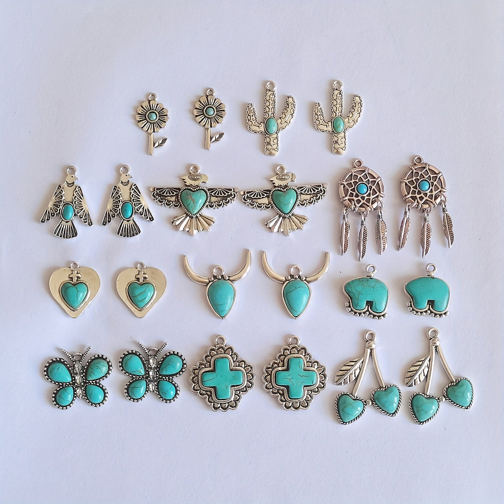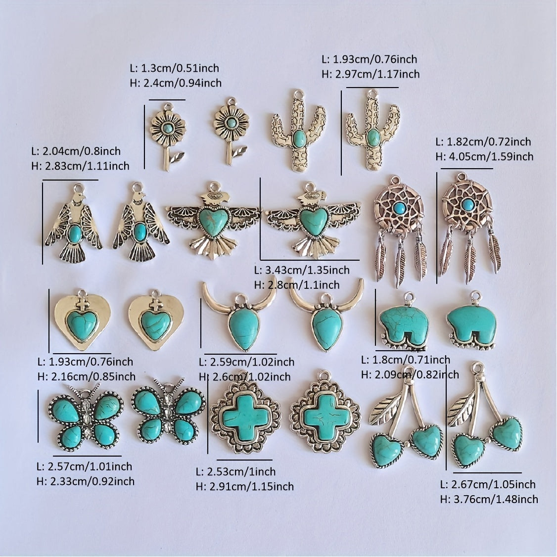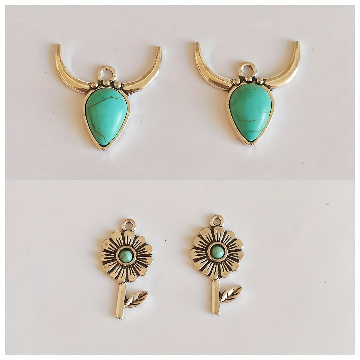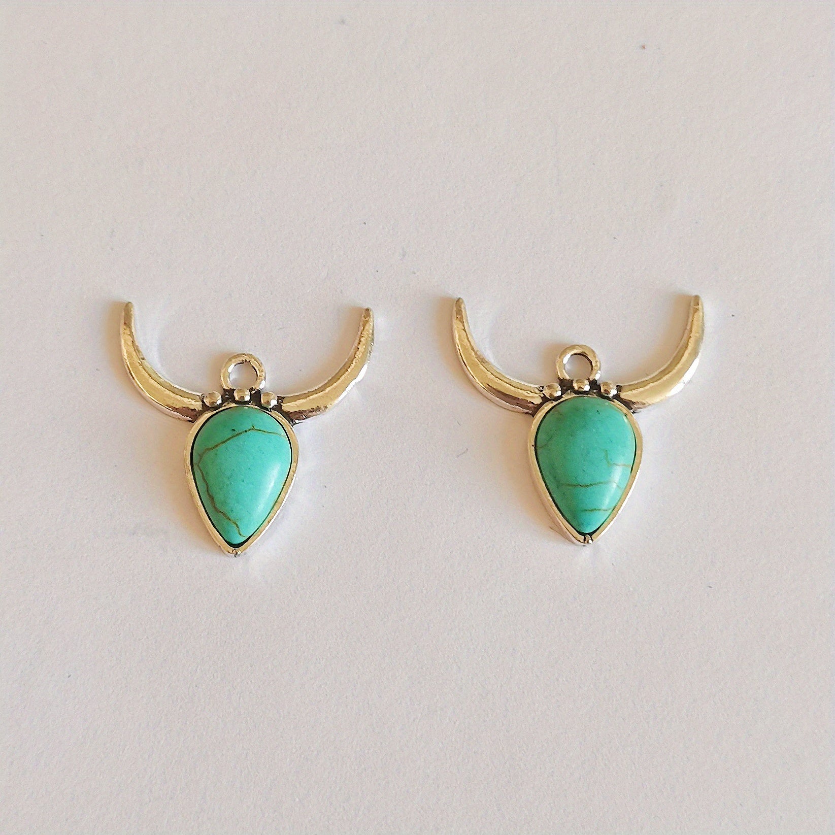 Add a touch of bohemian charm to your decor with this set of 2 assorted shaped alloy pendants featuring turquoise accents.