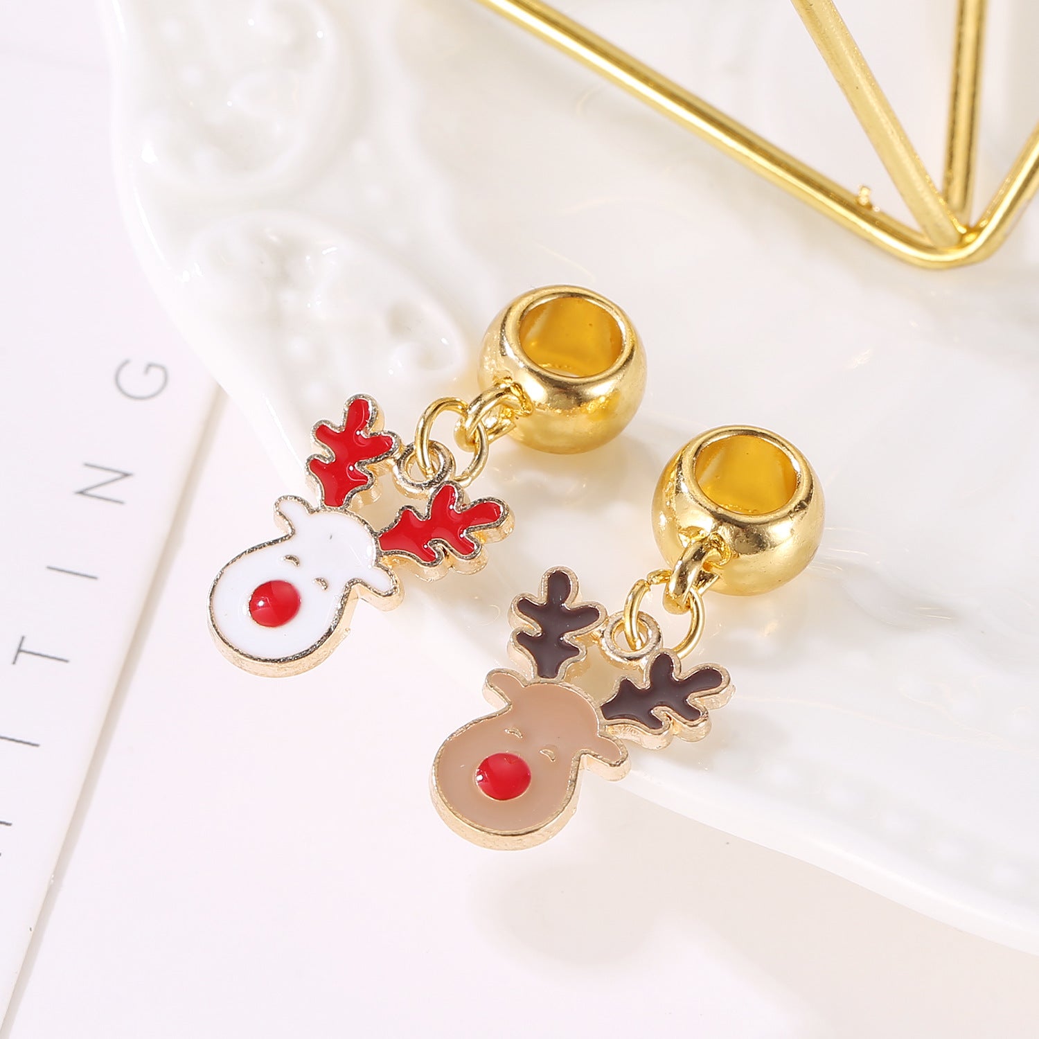 Adorable cartoon elk pendants perfect for creating earrings, bracelets, necklaces, and other accessories during the festive season.
