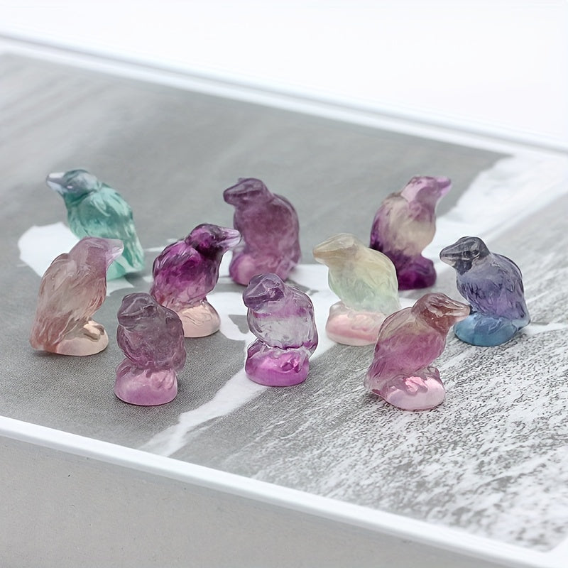 Enhance your home with these beautiful crystal crafts featuring crow carvings. These natural stone healing stones are perfect for decoration.