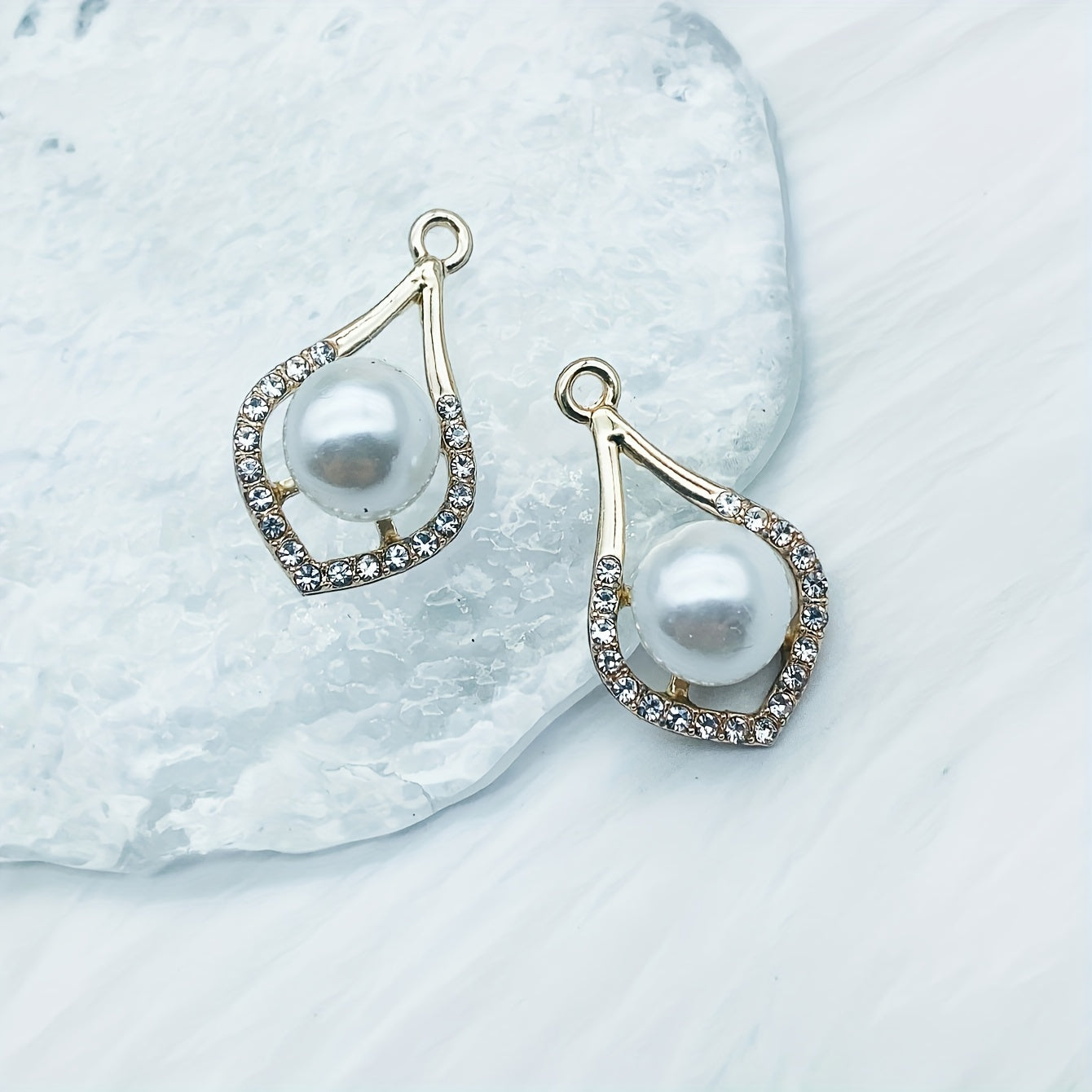 Add a touch of elegance with these golden artificial diamond pearl drop pendants. Perfect for accessorizing your outfits for special occasions or daily wear.