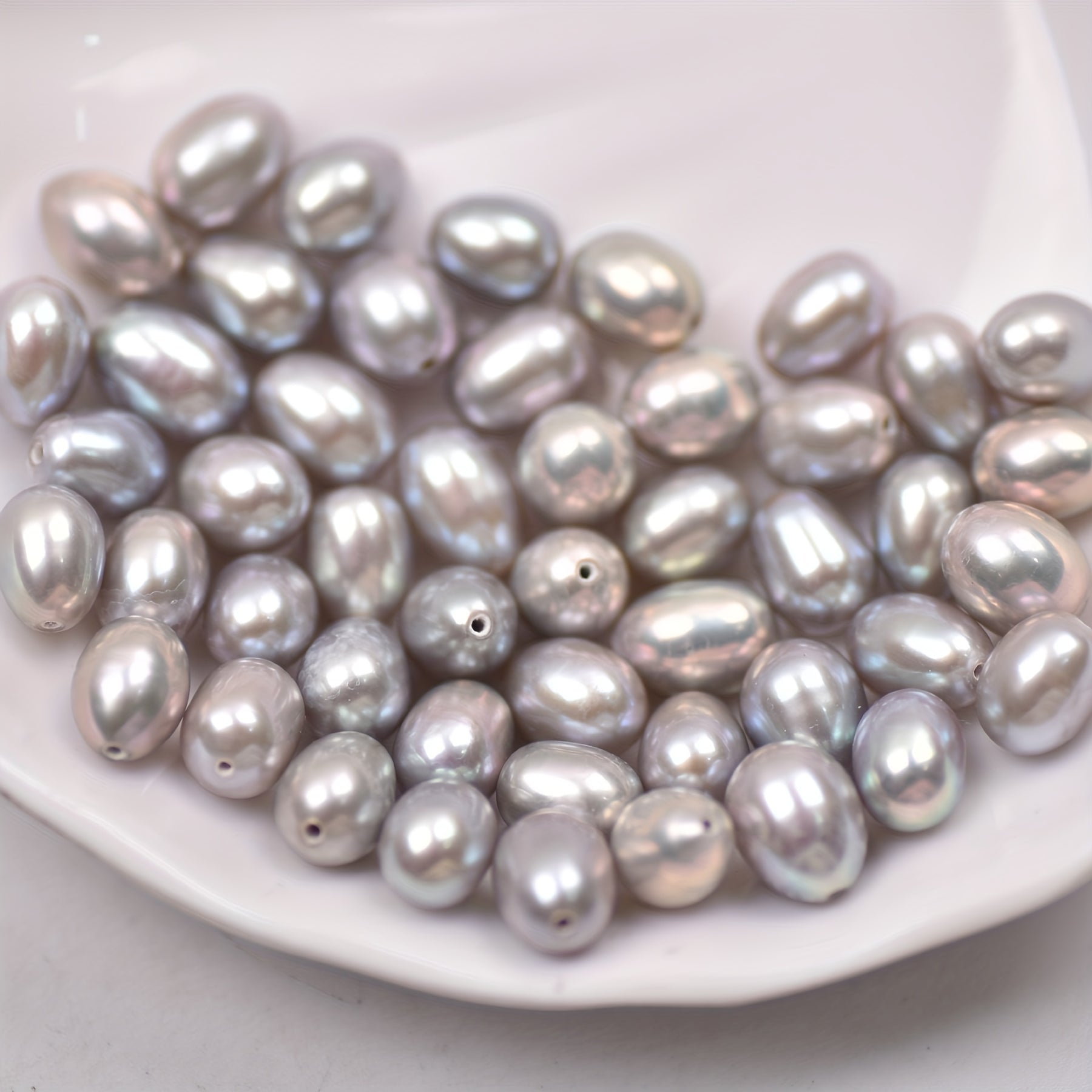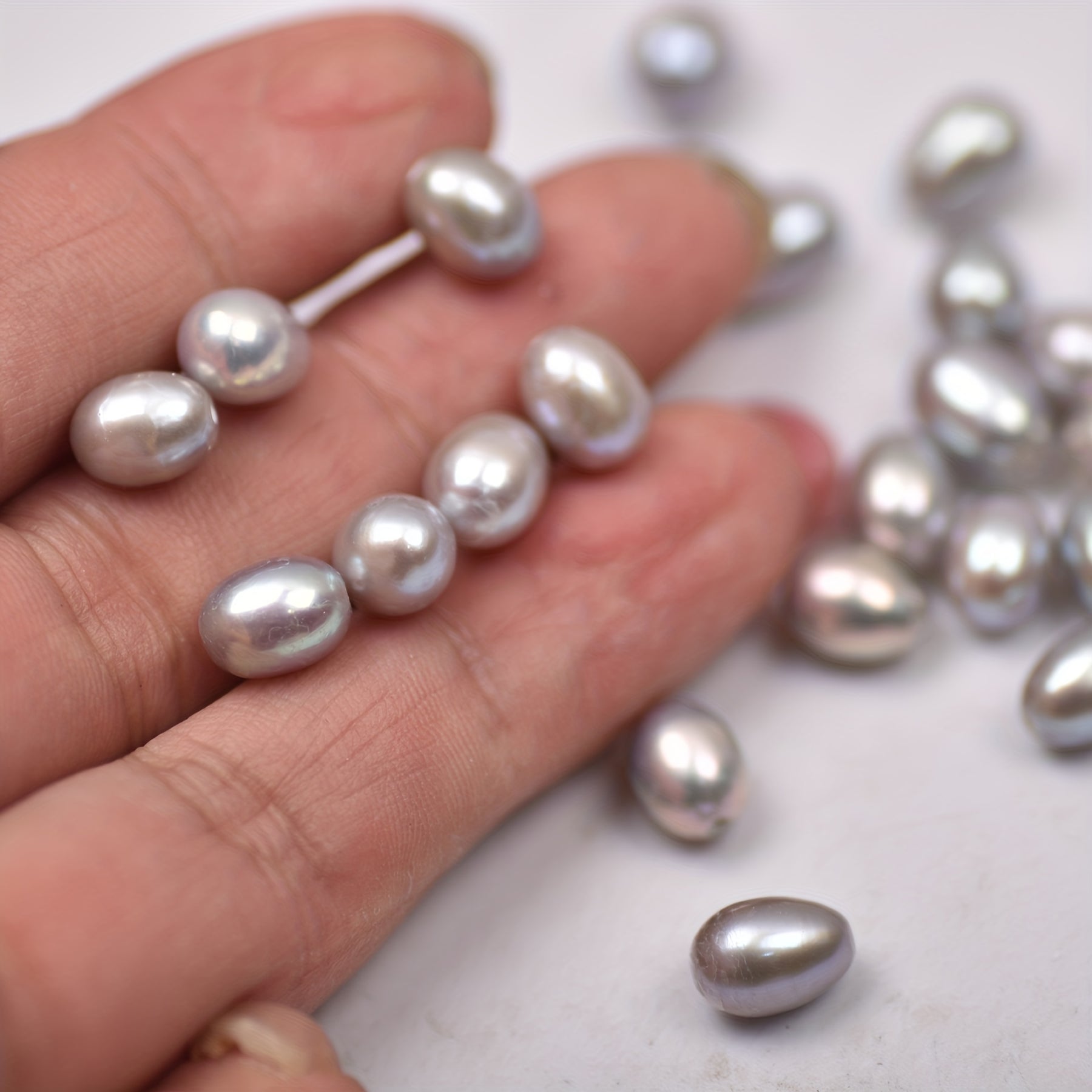 Enhance your jewelry making with these natural grey rice shaped freshwater pearls. Perfect for creating unique bracelets and necklaces.
