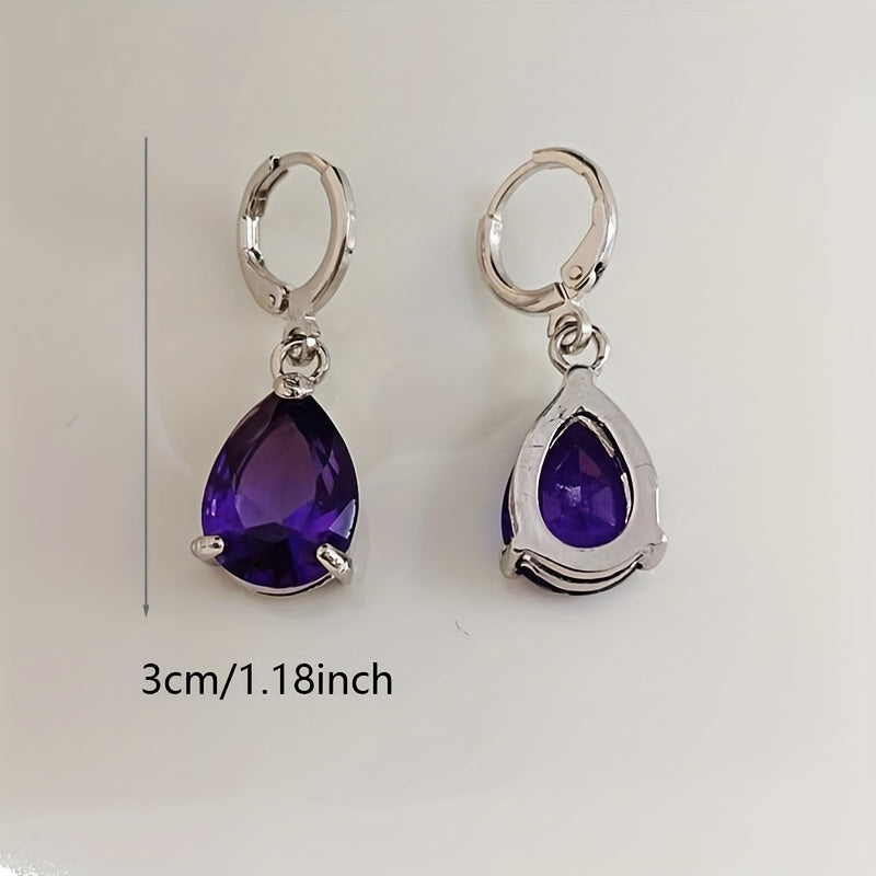 2pcs Men's Amethyst & Drop Earrings Noble Earrings