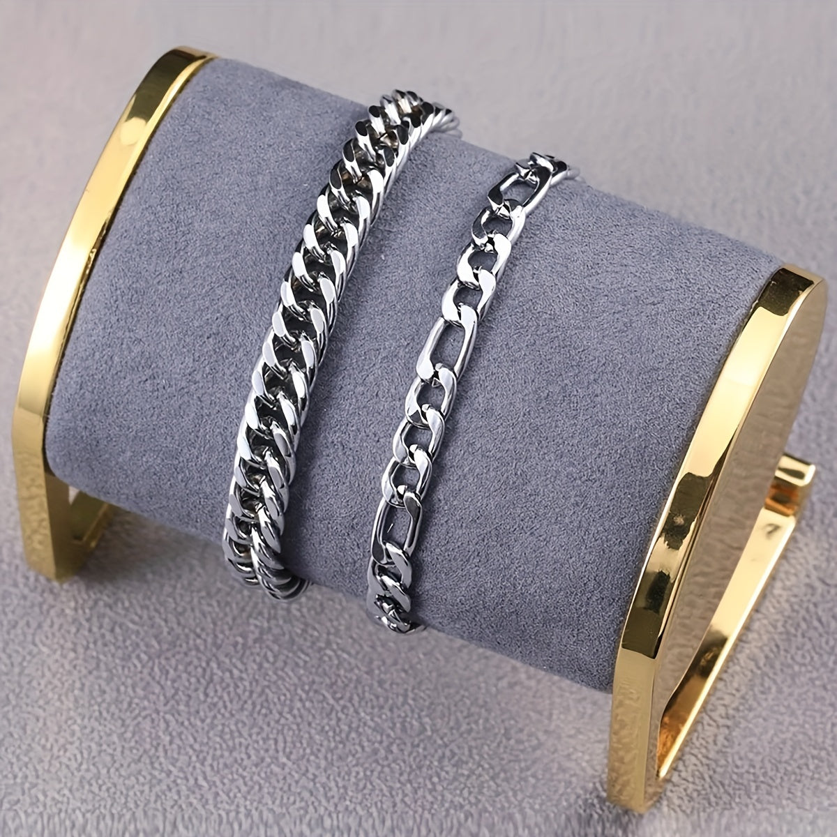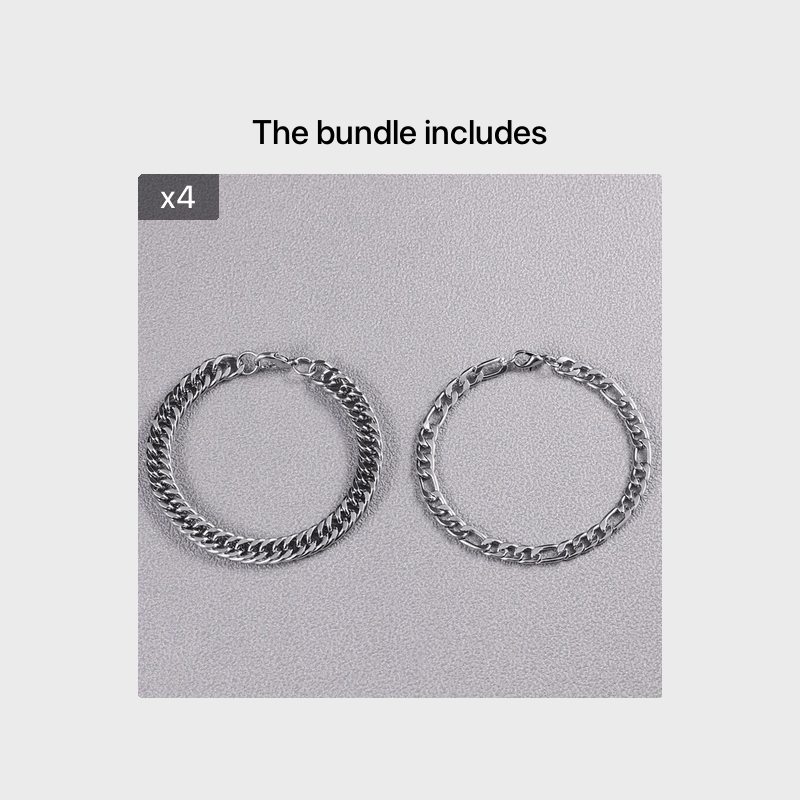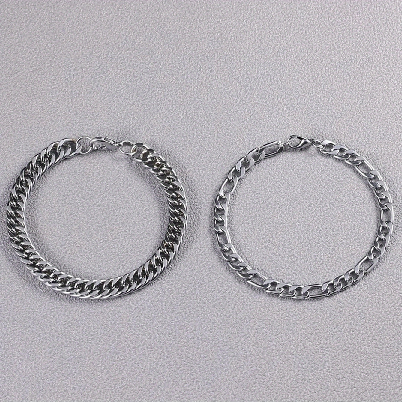 Elegant and minimalist silver bracelet set for men made of durable stainless steel. Perfect for everyday wear.