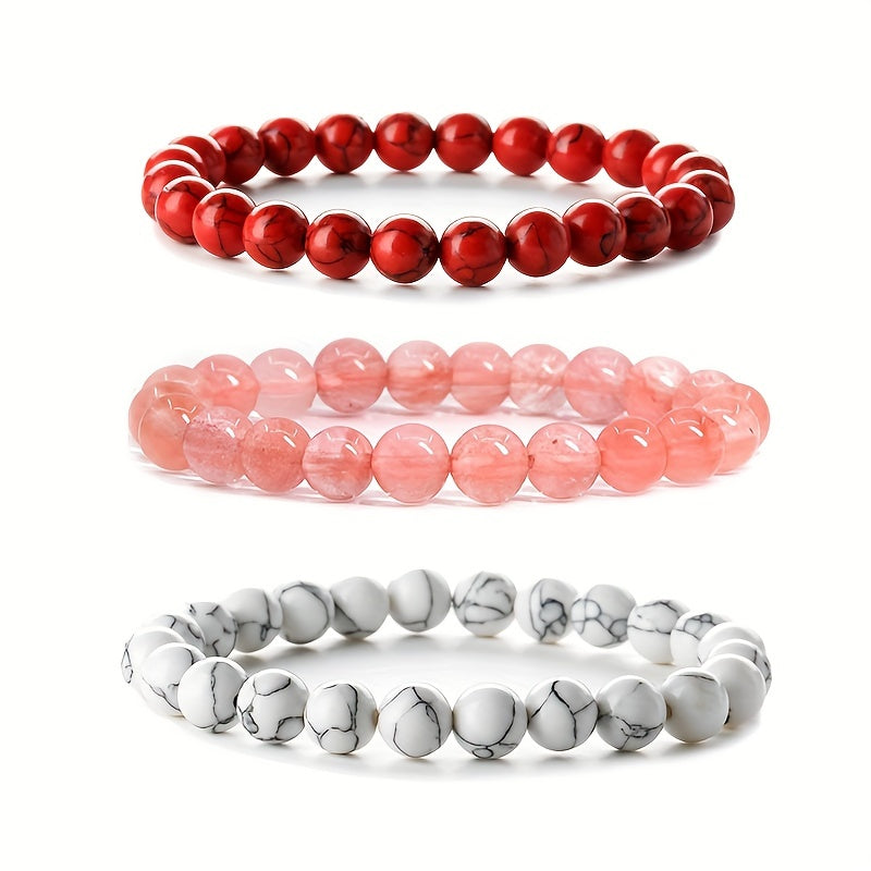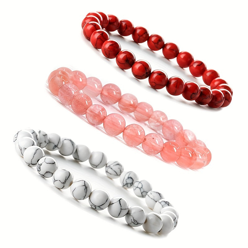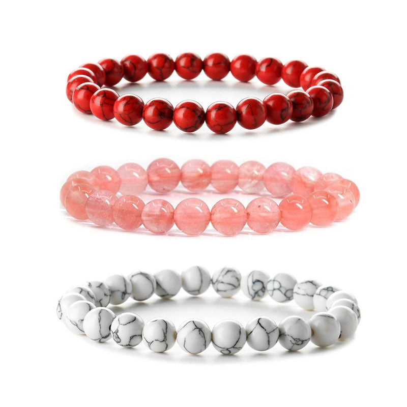 This set of 3 healing stone bead bracelets is perfect for parties and makes a great gift. Elastic design fits most wrists.