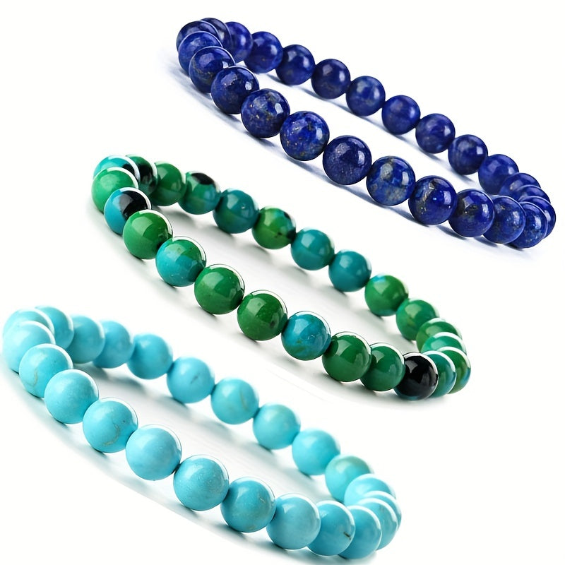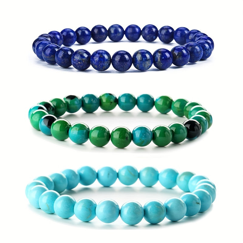 This set includes 3 elastic stone bead bracelets for a healing touch. Suitable for both men and women, these bracelets are stylish and meaningful.