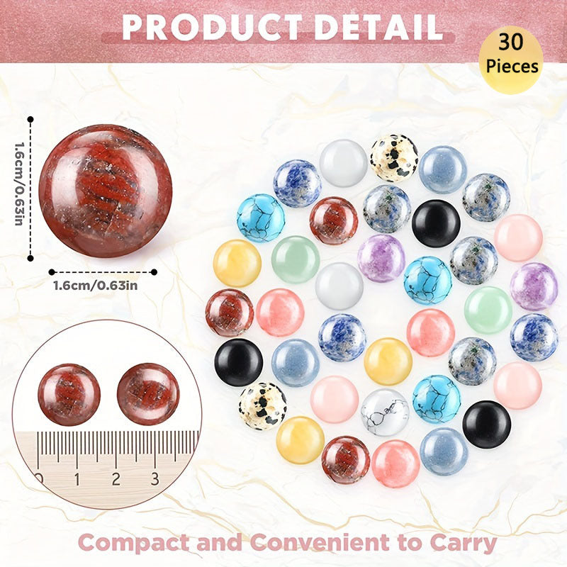 Add a pop of color to your crafts with these 30 natural stone round beads. Each bead is 1.0 inch in size and features vibrant, colorful hues.