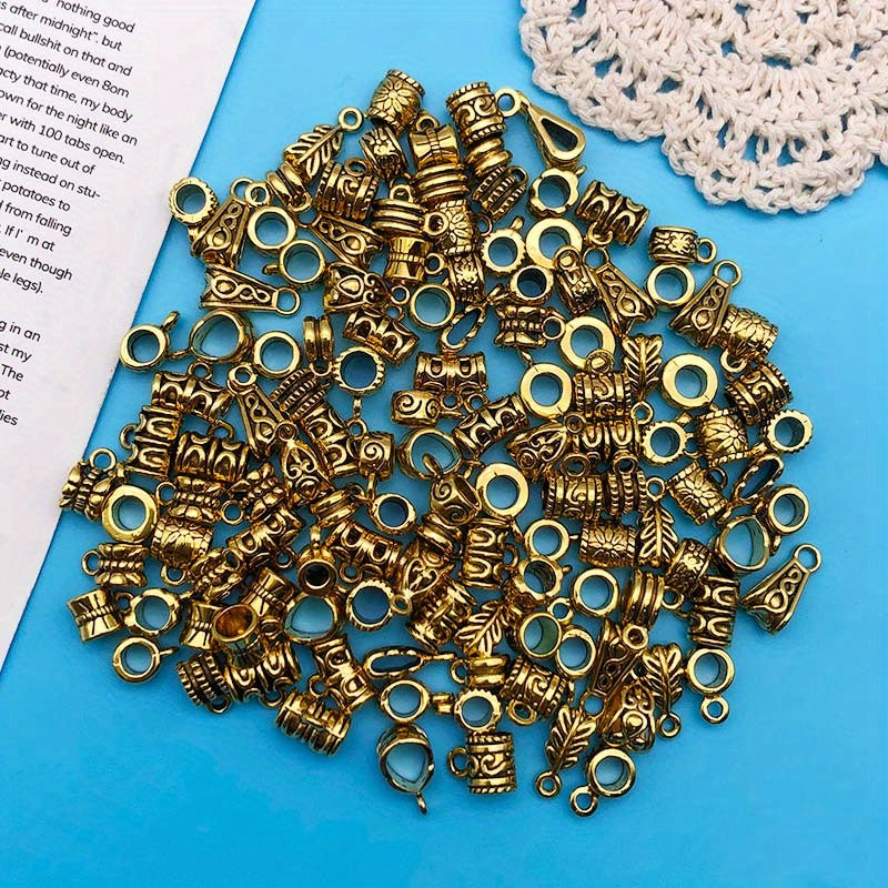 Enhance your jewelry making with this set of 30pcs antique golden metal connectors. Perfect for creating necklaces, bracelets, and earrings.