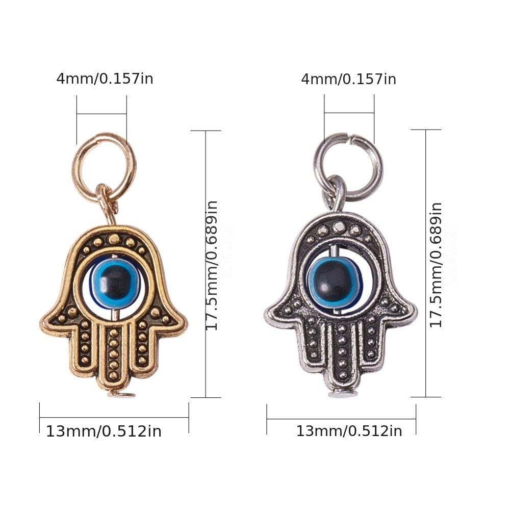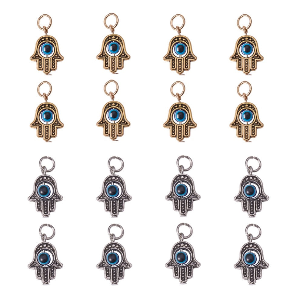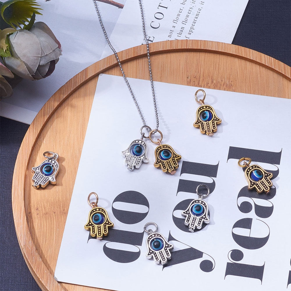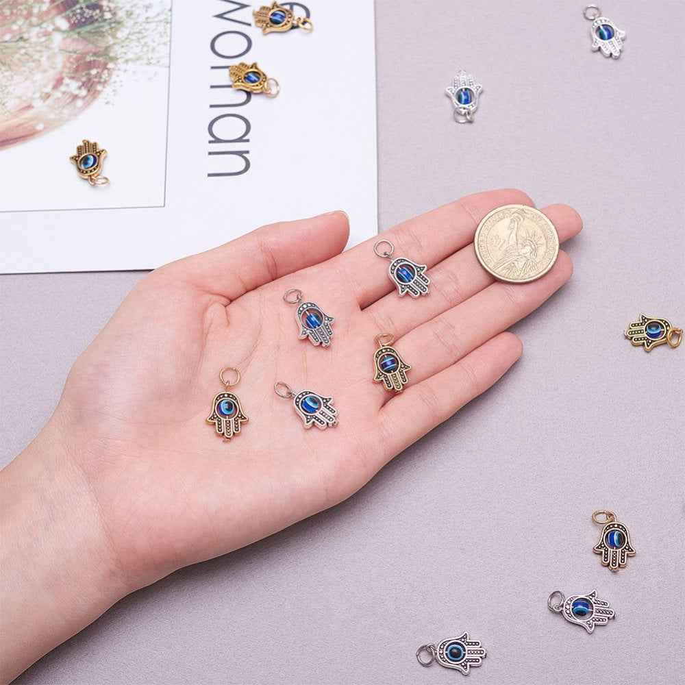 Enhance your jewelry collection with these eye bead palm pendants. Perfect for earrings, bracelets, necklaces, and more!