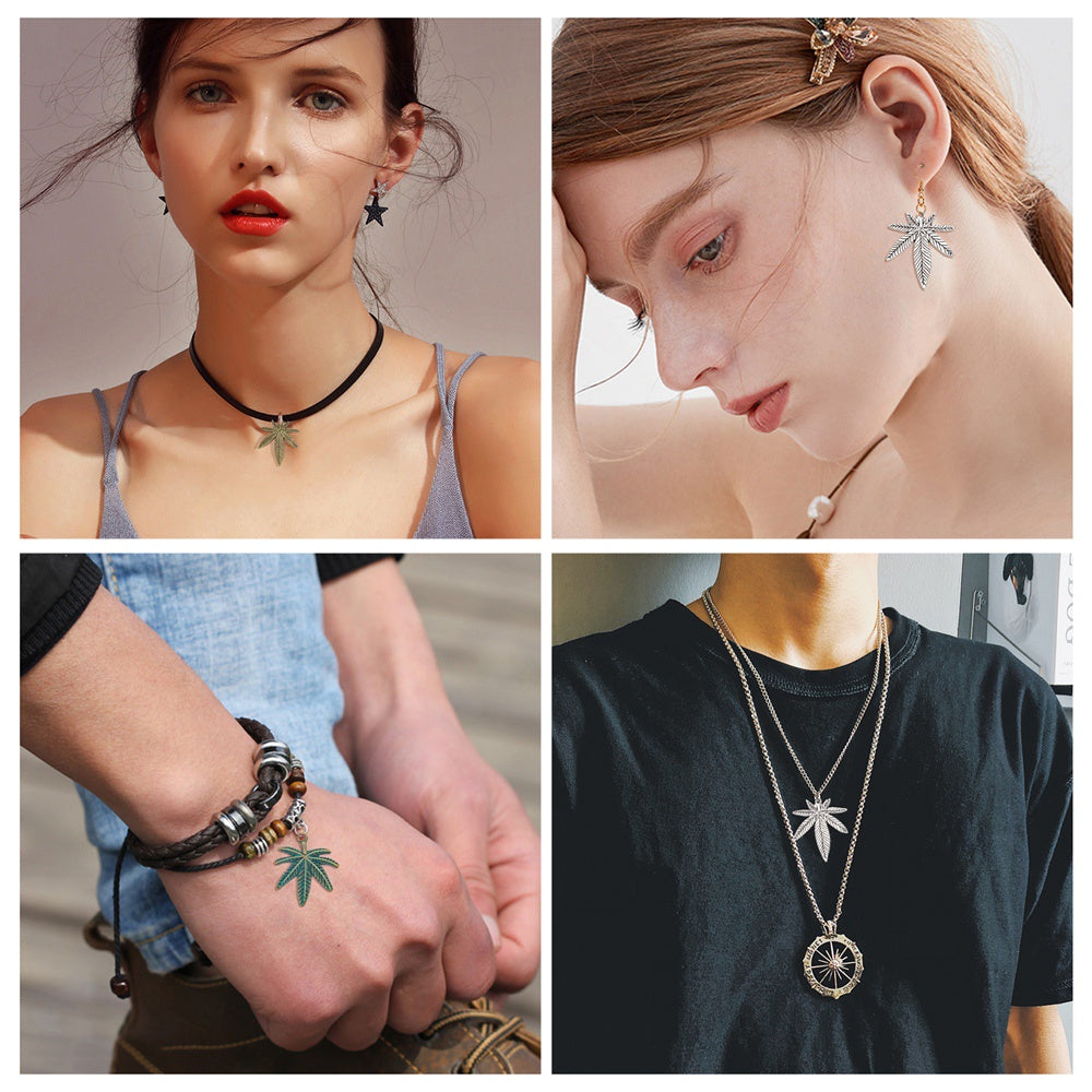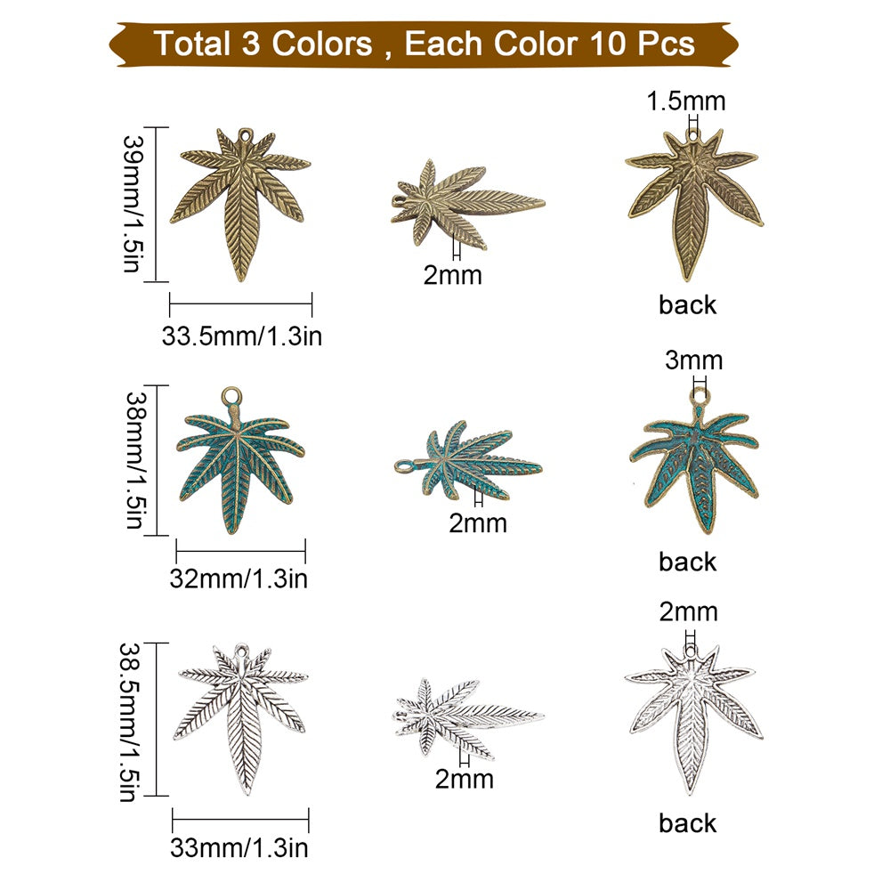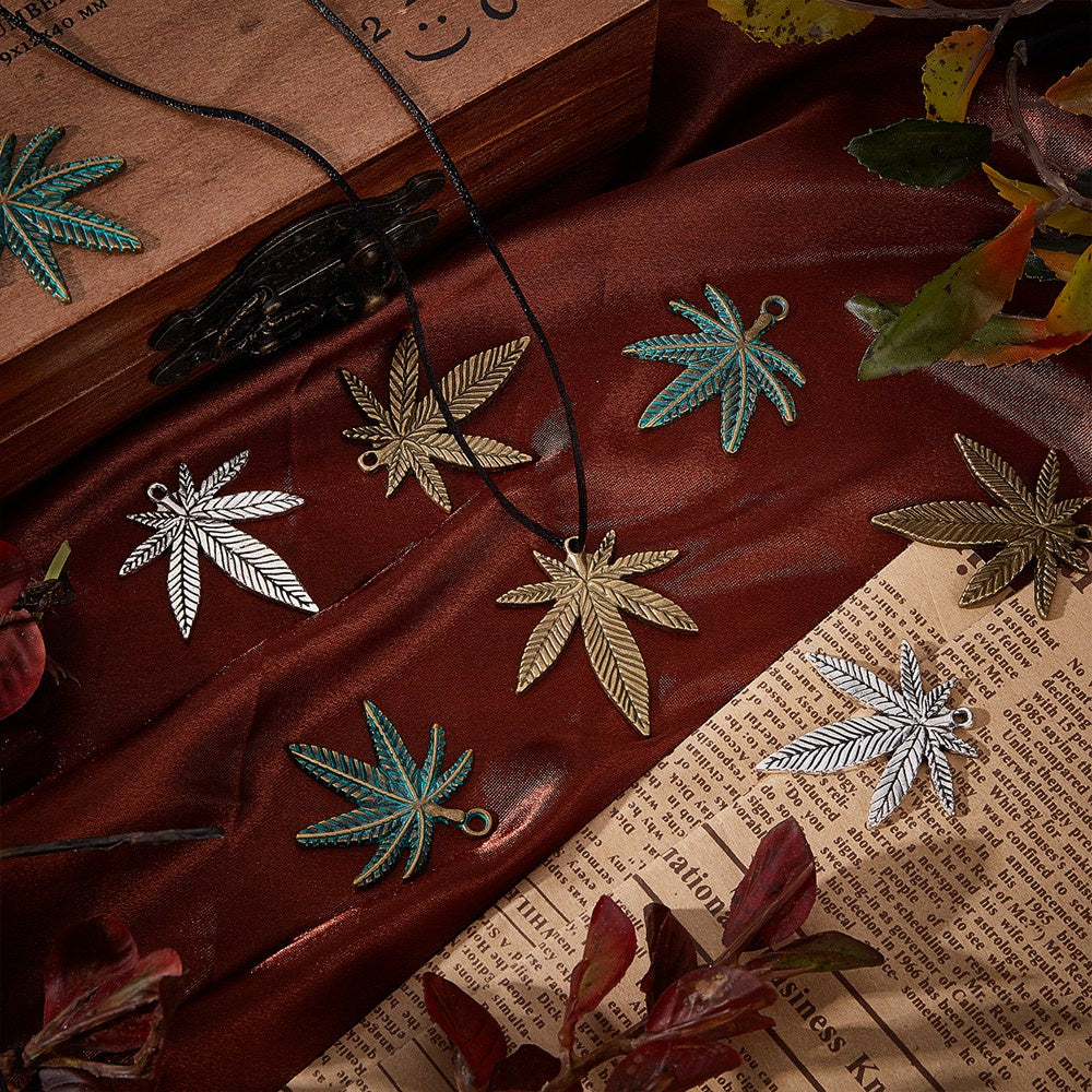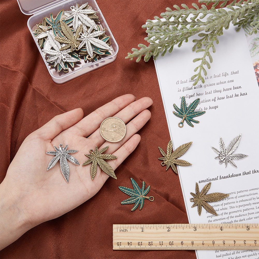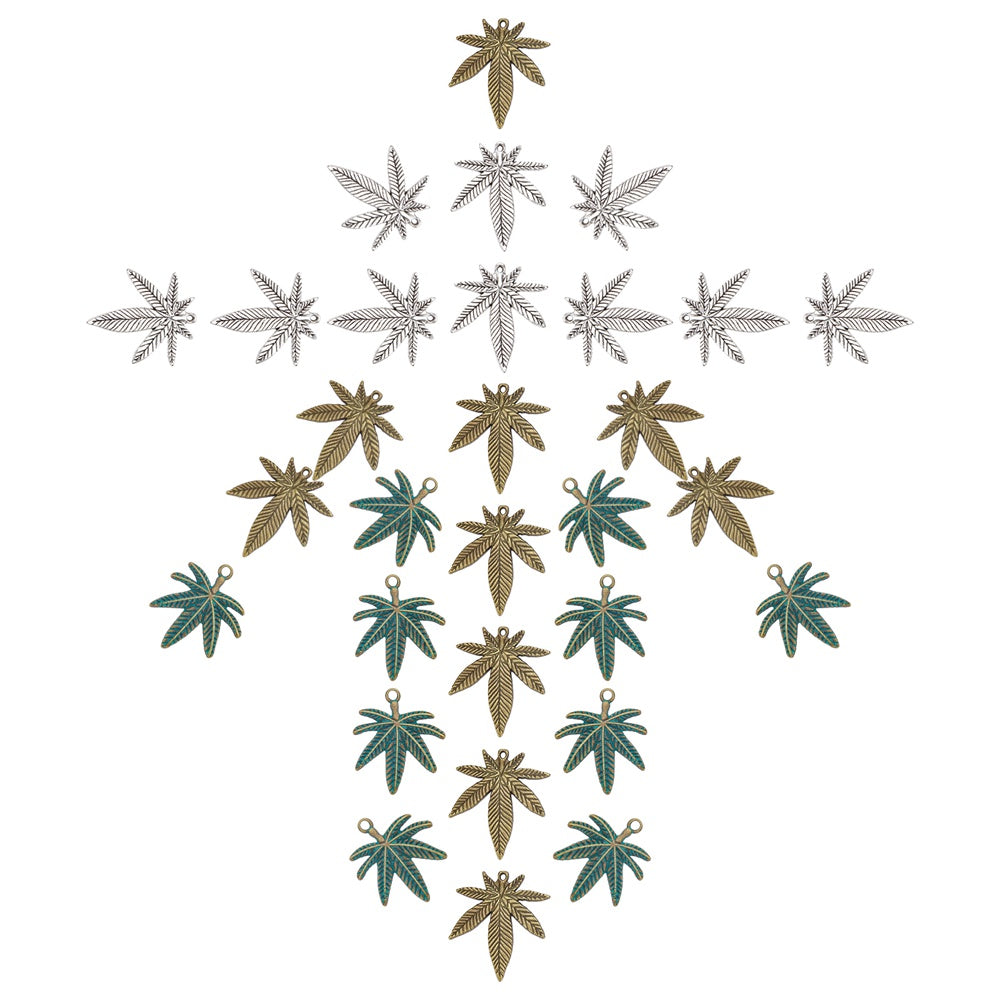 30Pcs Mixed Leaf Hemp Leaf Shape Alloy Pendants for DIY Jewelry Making