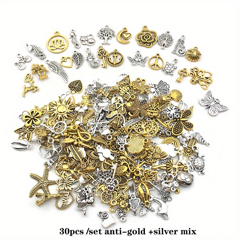 30pcs Mixed Styles Silver Alloy Charms Pendants For DIY Jewelry Making