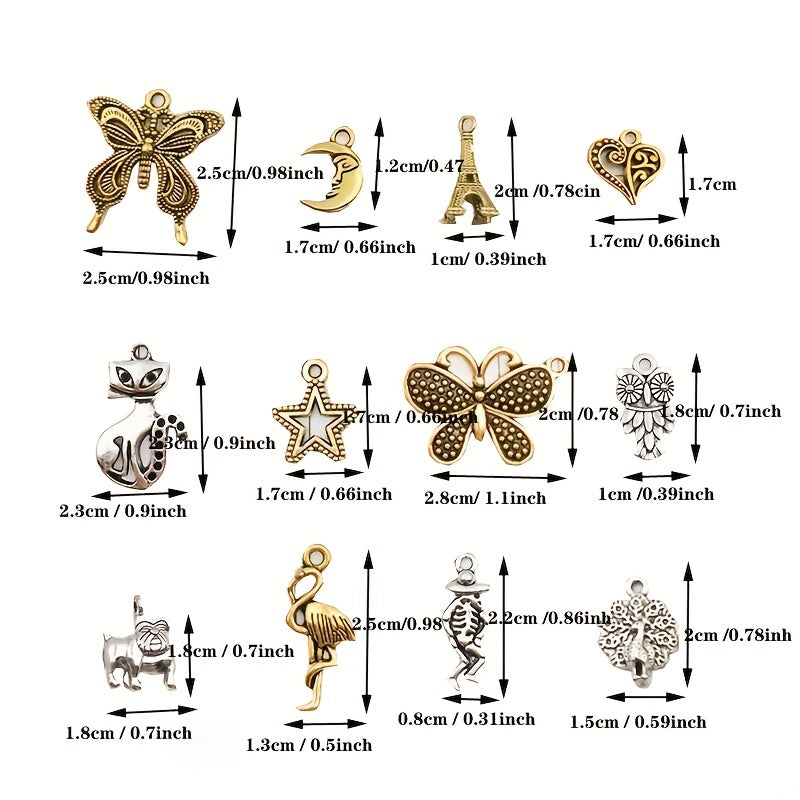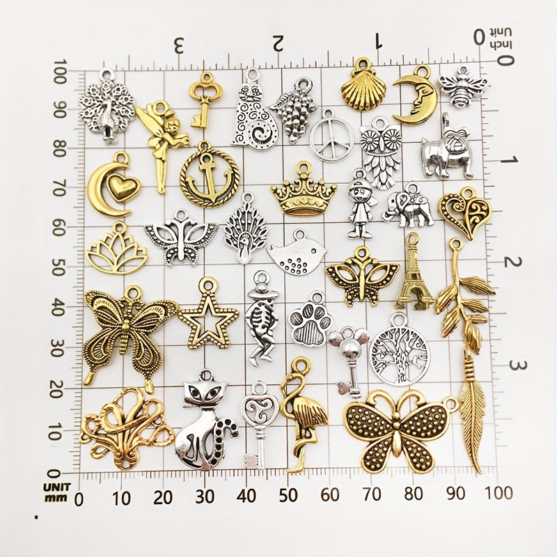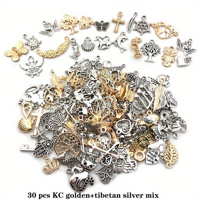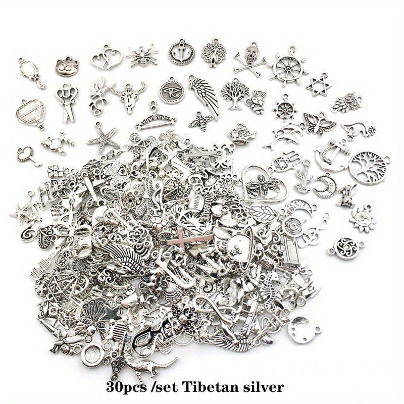 Get creative with these 30 assorted silver alloy charms pendants perfect for DIY earrings, bracelets, necklaces, and more. Elevate your jewelry-making projects with these high-quality materials.