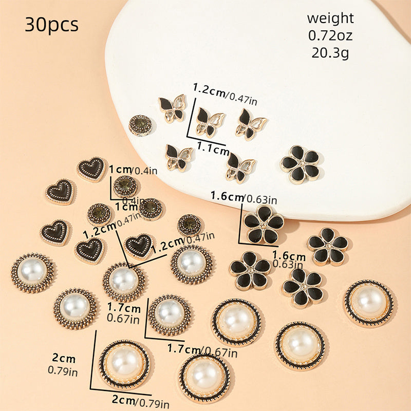 This set includes 30 retro round, rose, and flower pattern charms that are perfect for creating your own unique hair accessories and clothing designs.