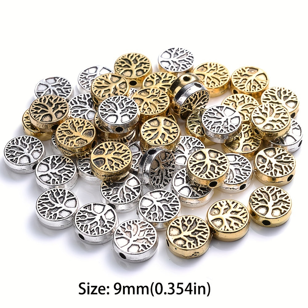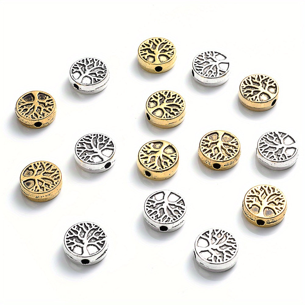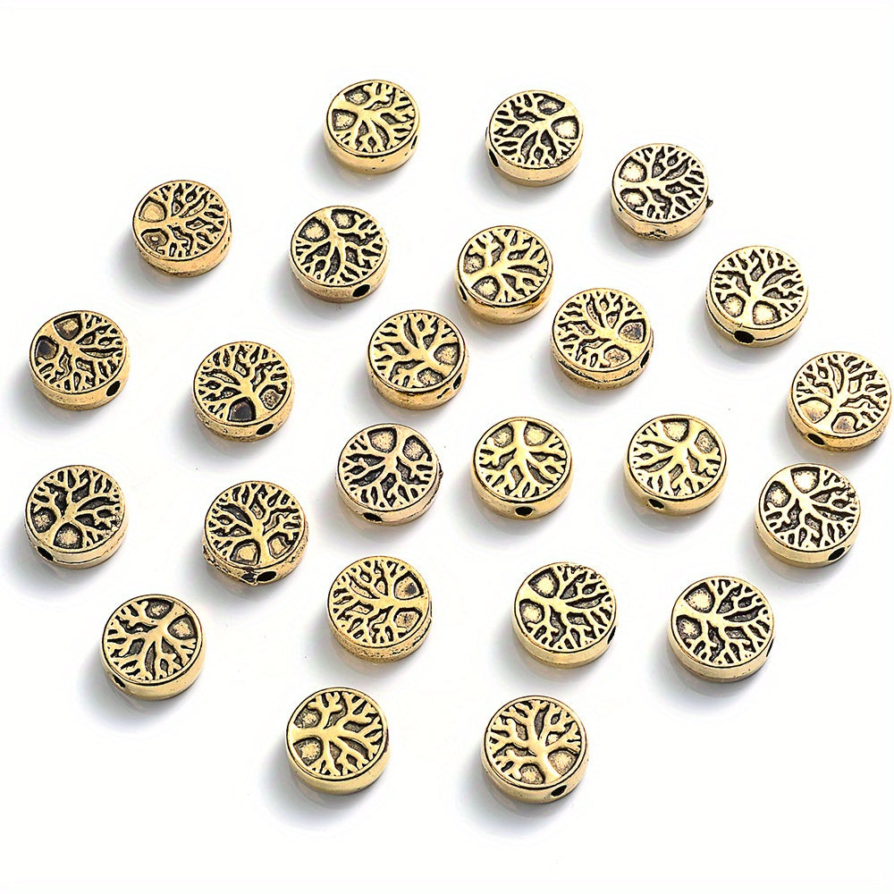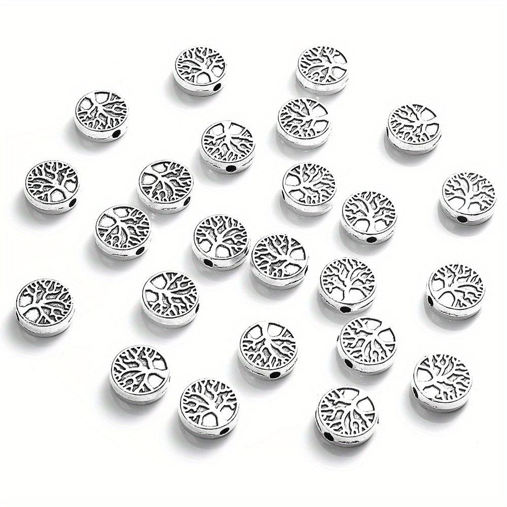 Enhance your jewelry making with this set of 30 retro tree pattern round beads pendants. Perfect for crafting unique accessories and art pieces.
