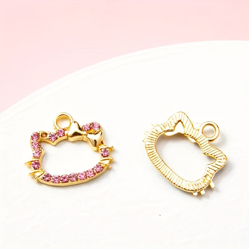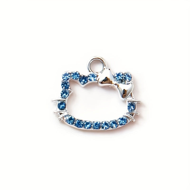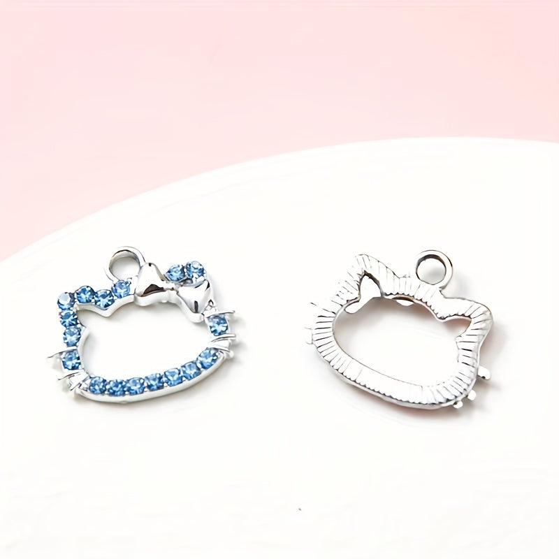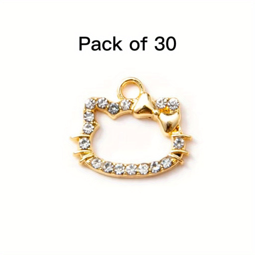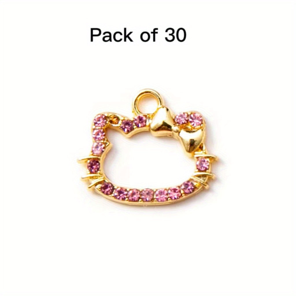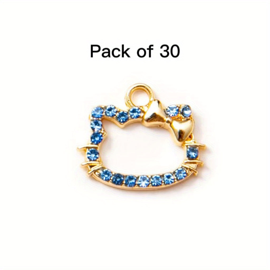 This set includes 30 colorful rhinestone decorated kitty head alloy pendants suitable for making earrings, bracelets, or necklaces. Perfect for DIY jewelry projects.