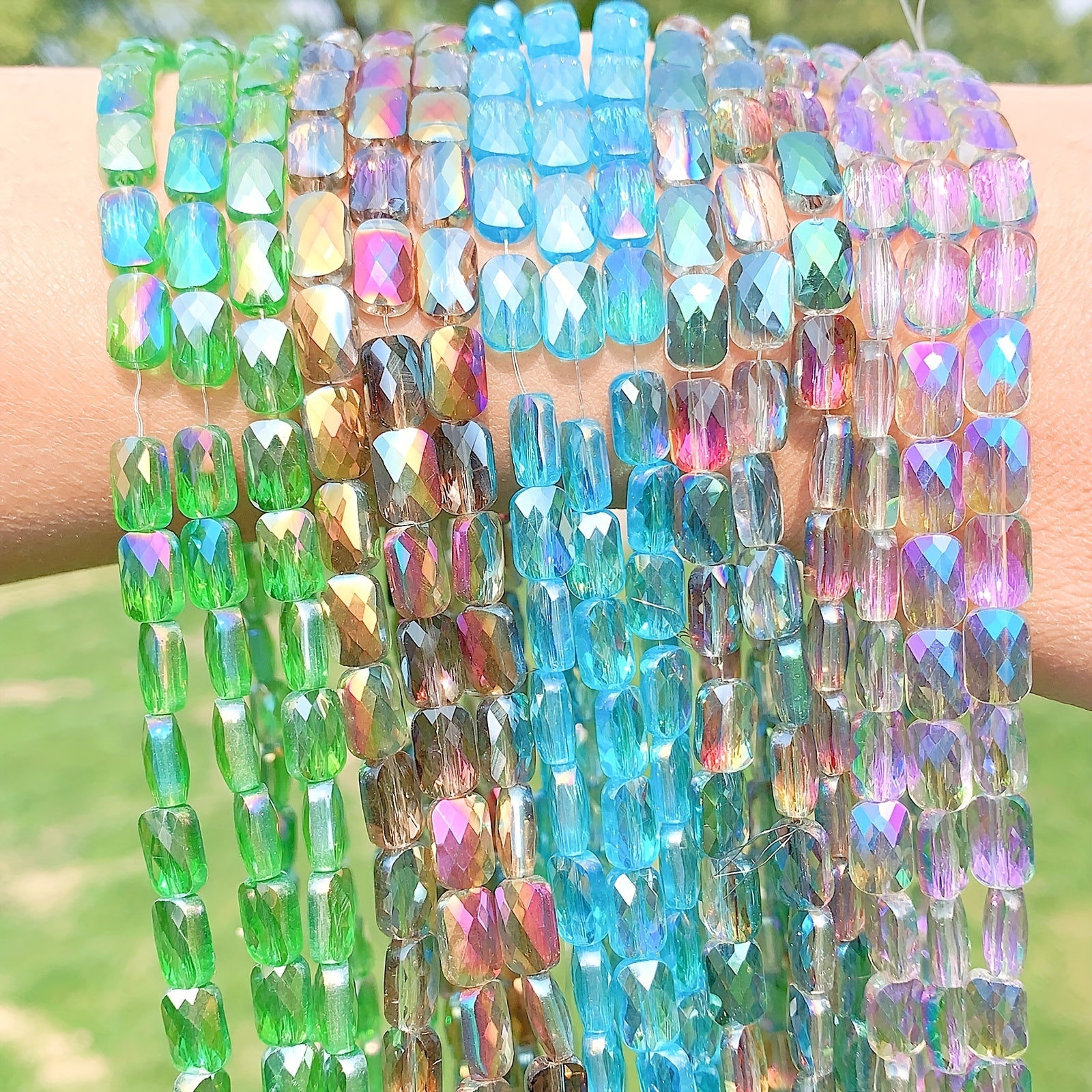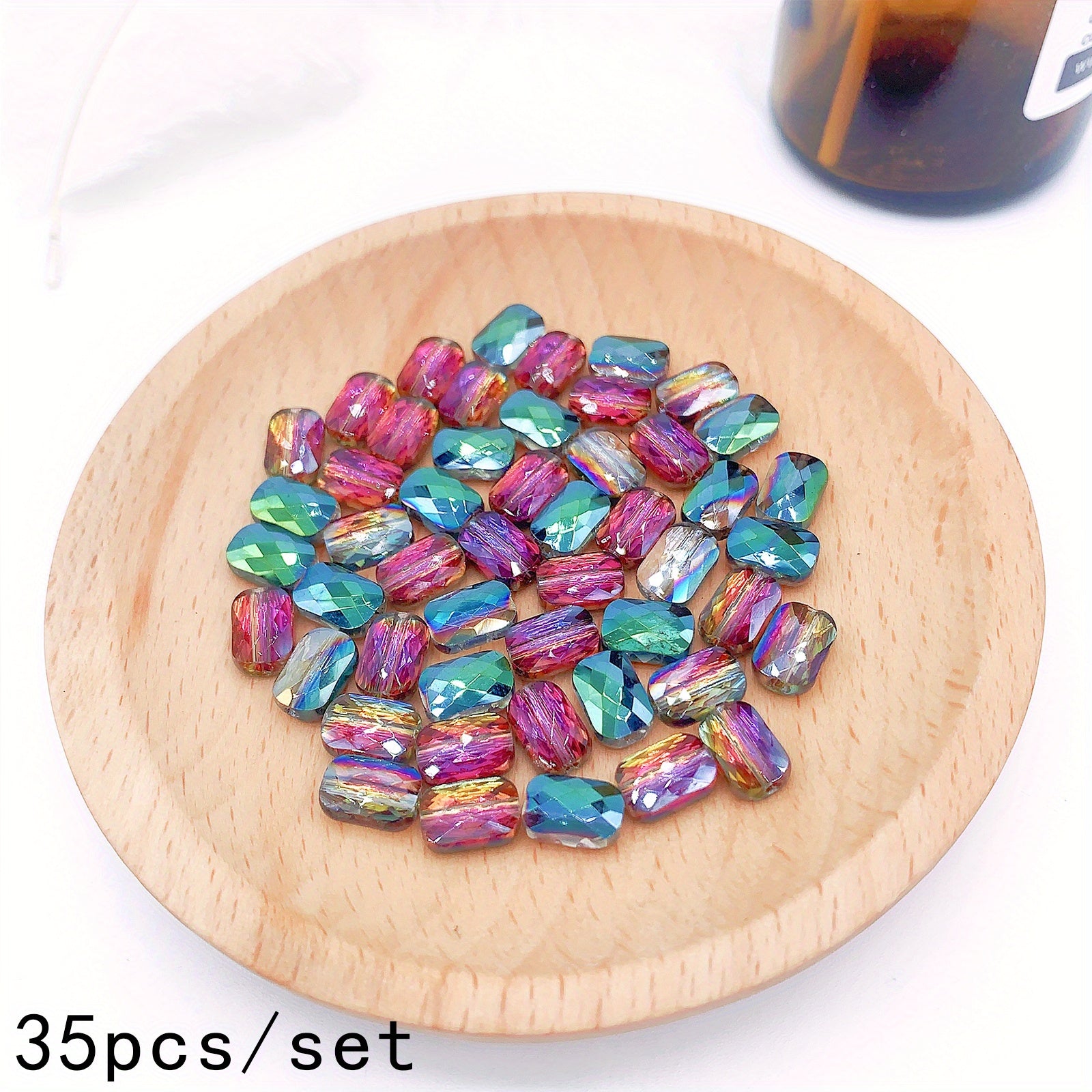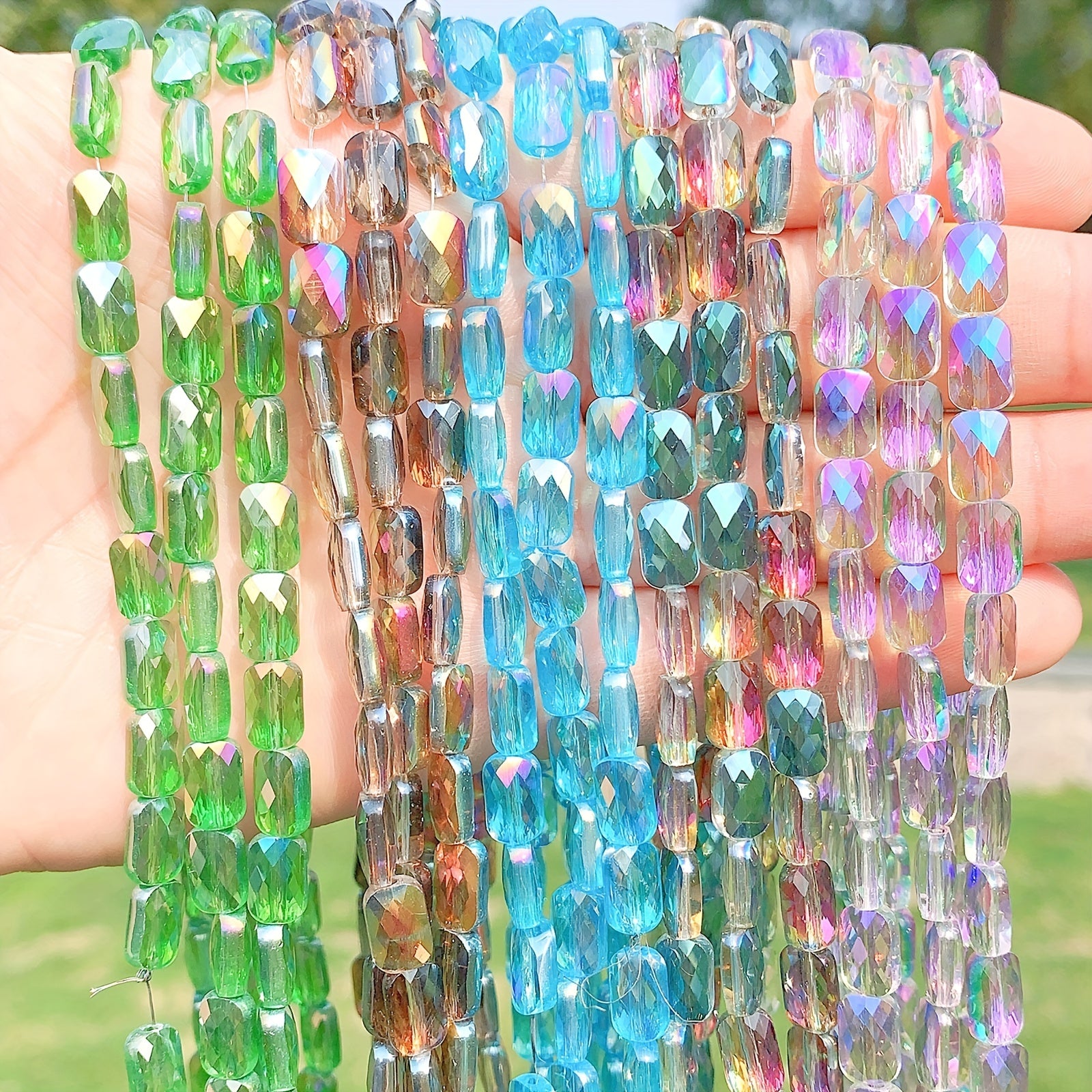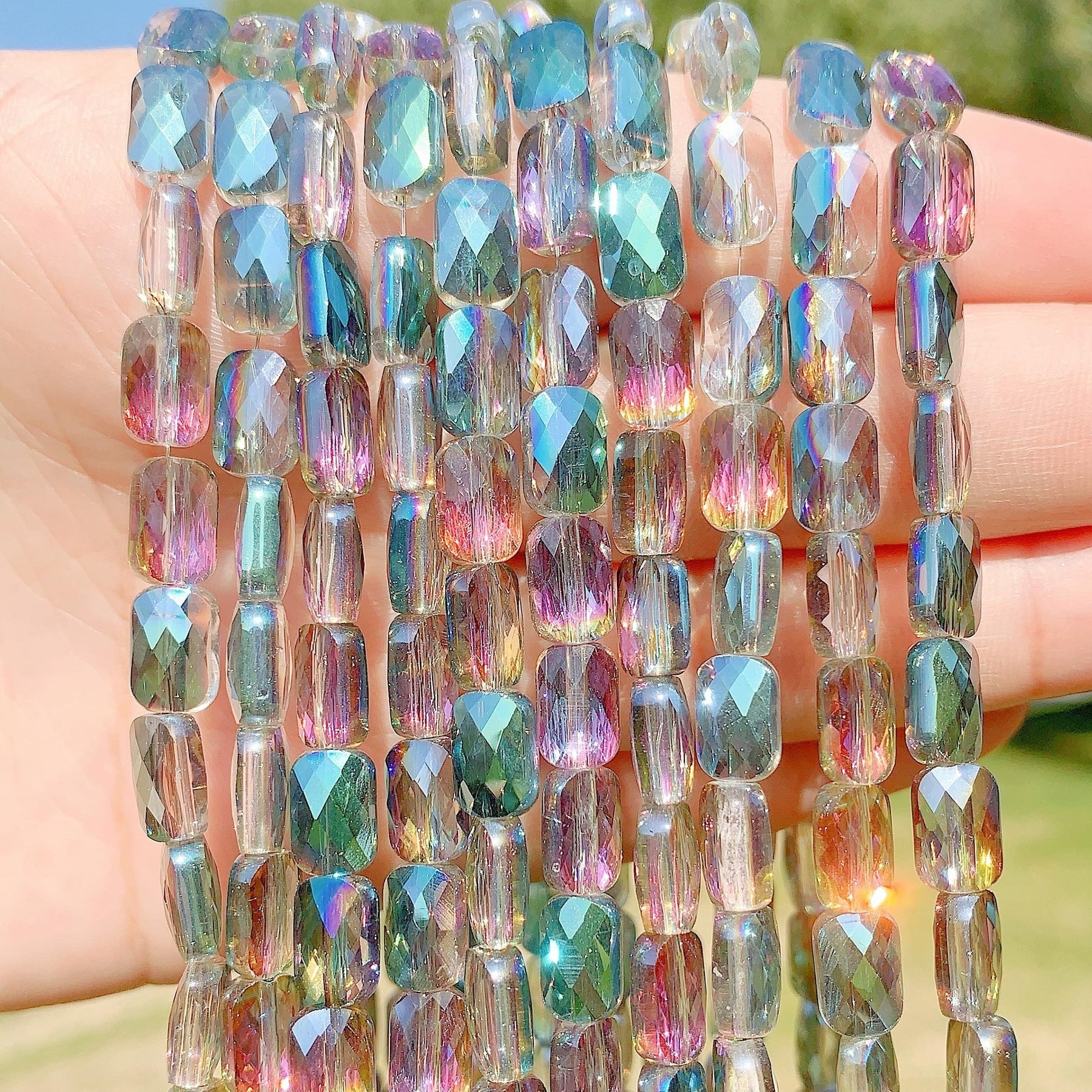 Add a touch of sparkle to your DIY bracelet projects with these 35 rectangular faceted crystal plated AB glass beads.