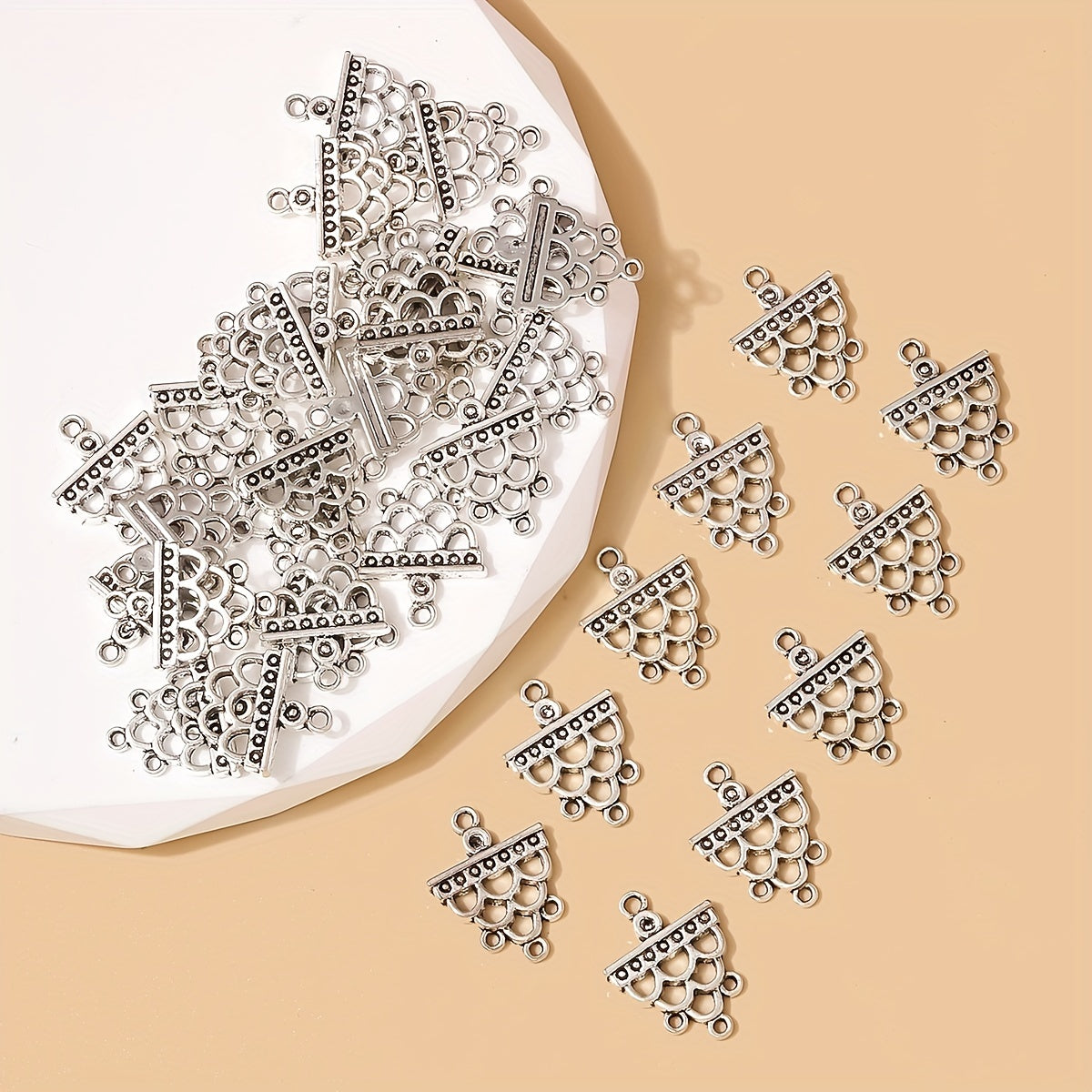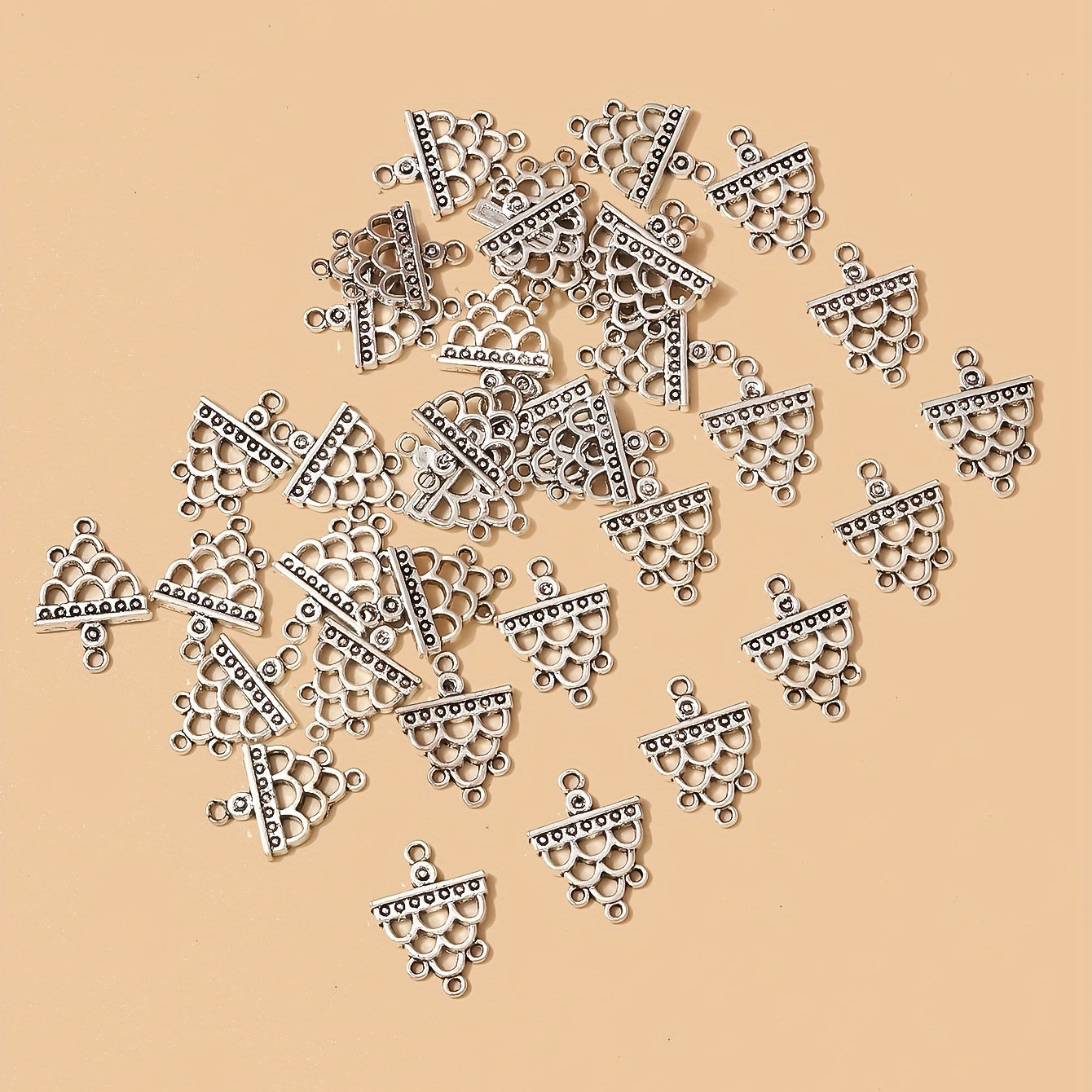 • Set of 35 silvery hollow hole connectors