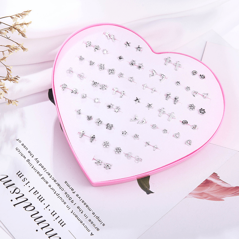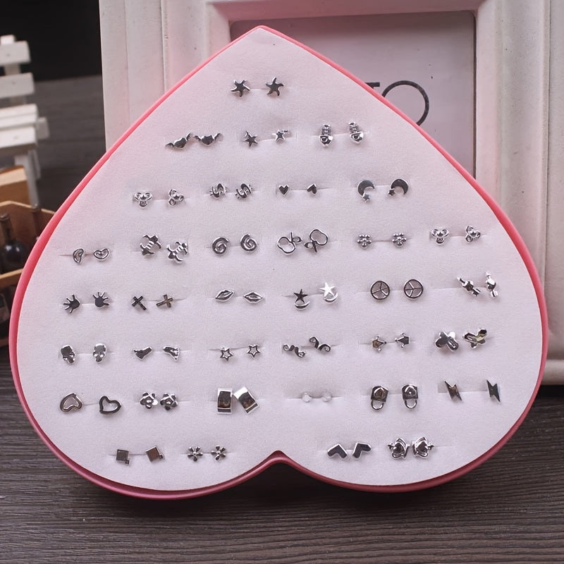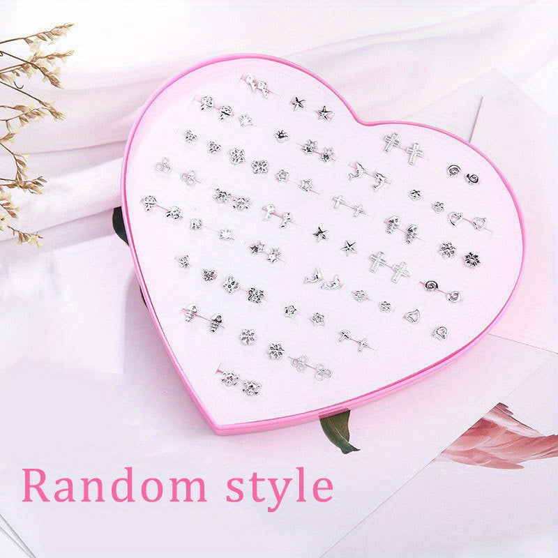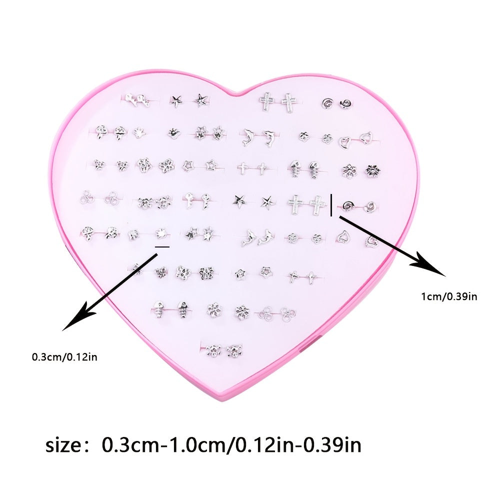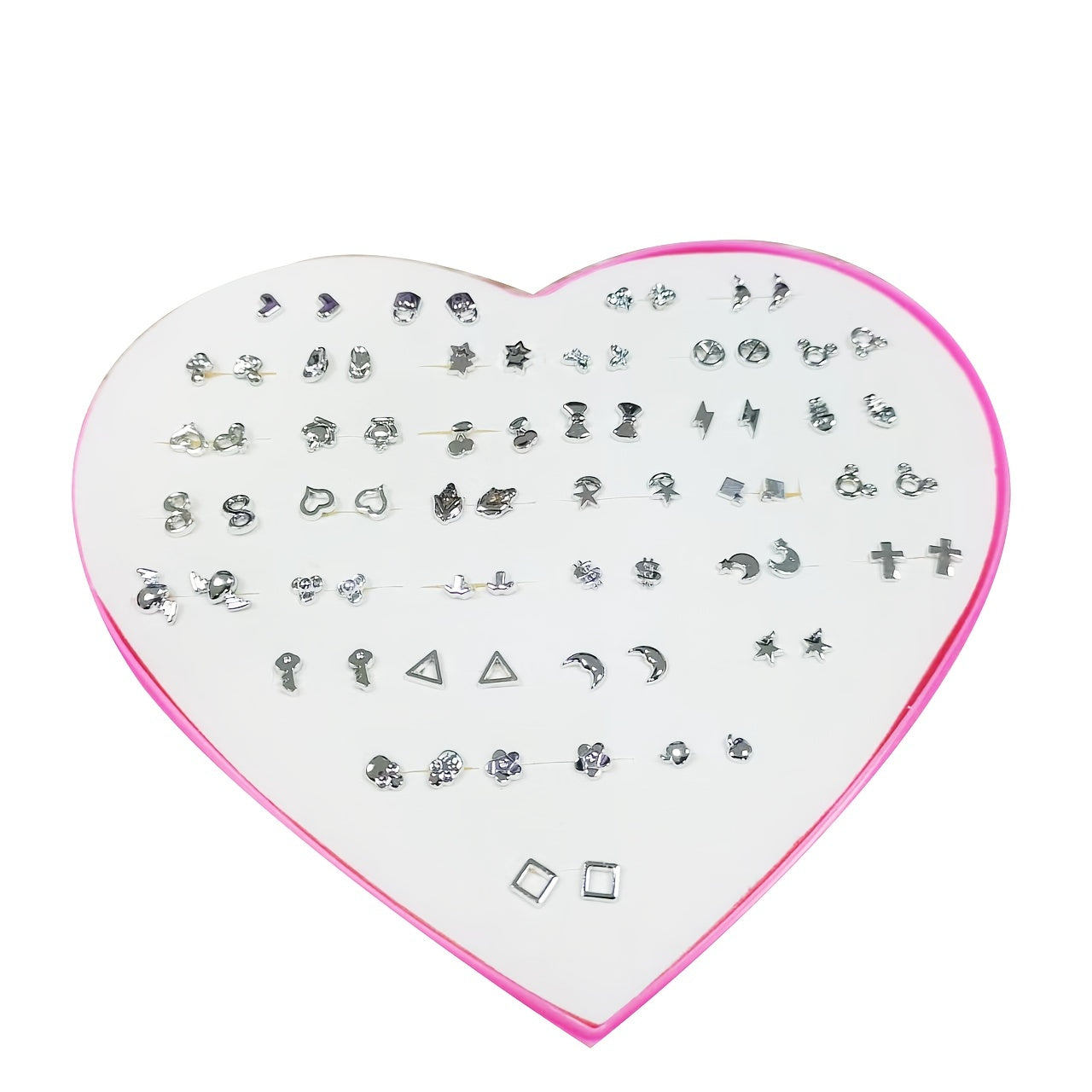 Add versatile style to your accessory collection with this set of 36 pairs of silver stud earrings. These earrings feature a variety of designs and are perfect for everyday wear or special occasions.