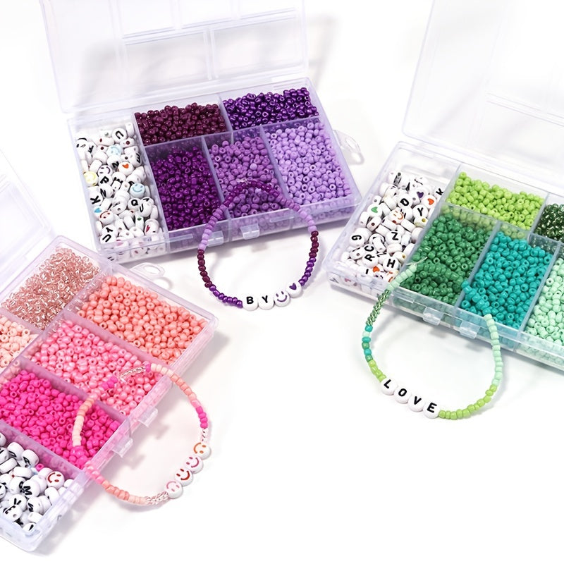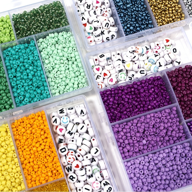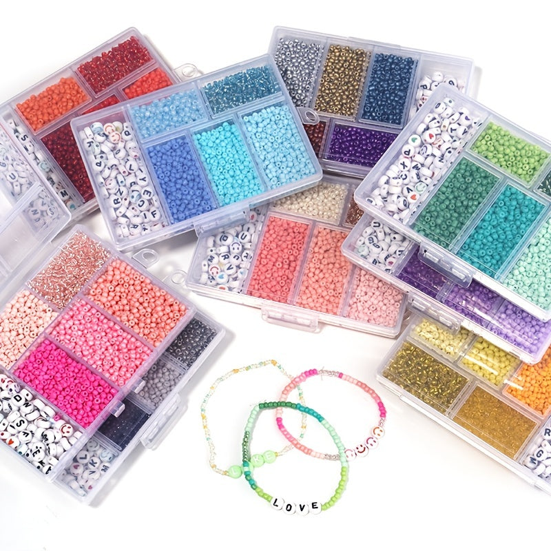 Create beautiful jewelry with this 3mm glass rice beads kit. Includes small beads and alphabet beads, along with elastic string for easy crafting of bracelets, necklaces, and rings.