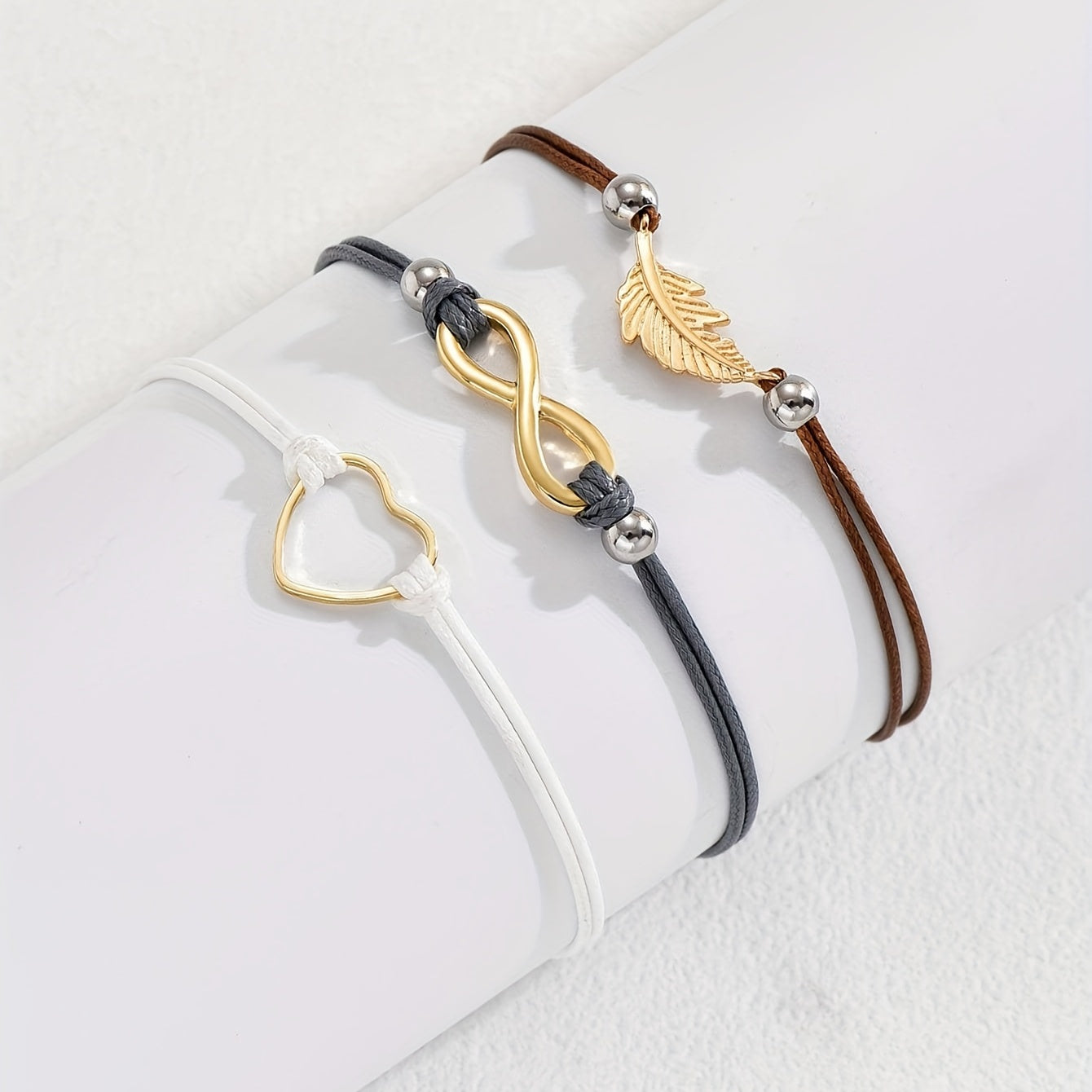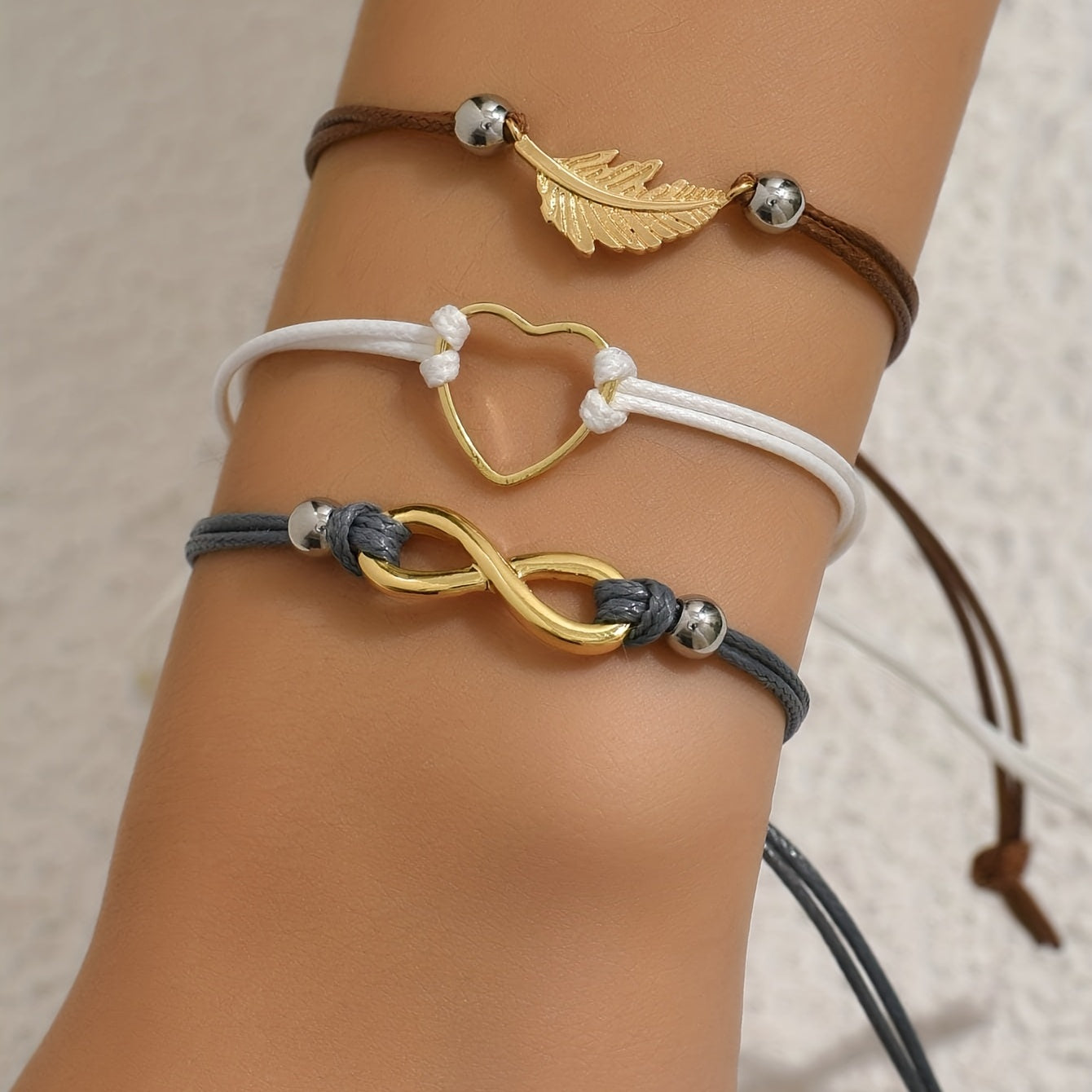 Elevate your style with this charming bohemian leaf infinity bracelet set. Handcrafted with intricate details, these bracelets are perfect for any occasion.