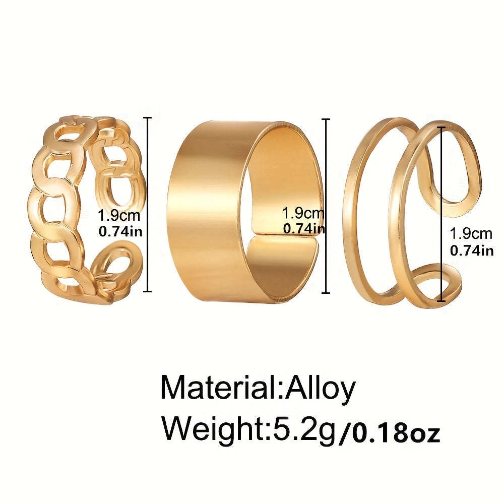 This set of 3 rings is perfect for hip hop fashion lovers. Featuring an adjustable opening design, these rings are versatile and stylish. Great gift idea for men.