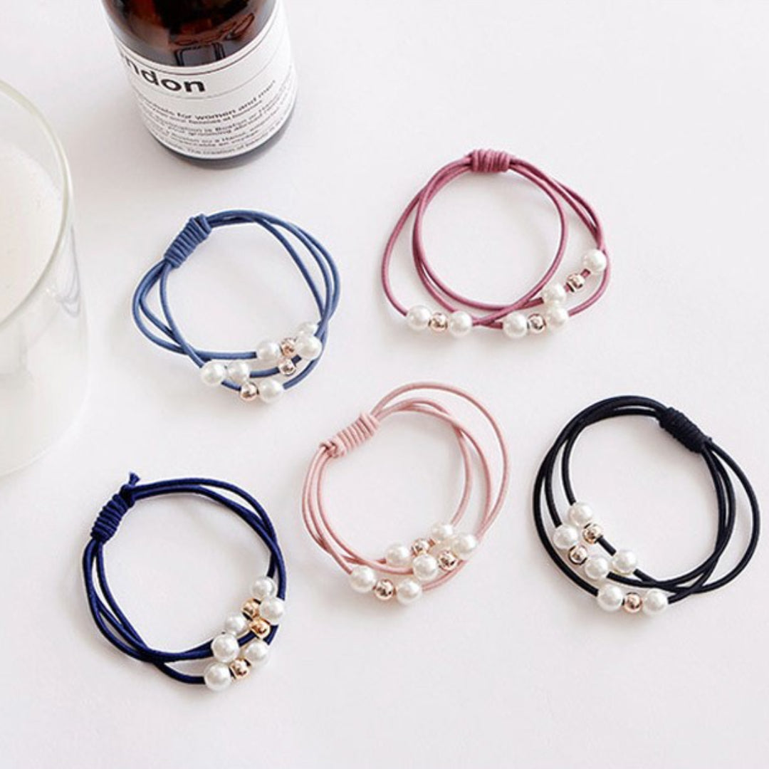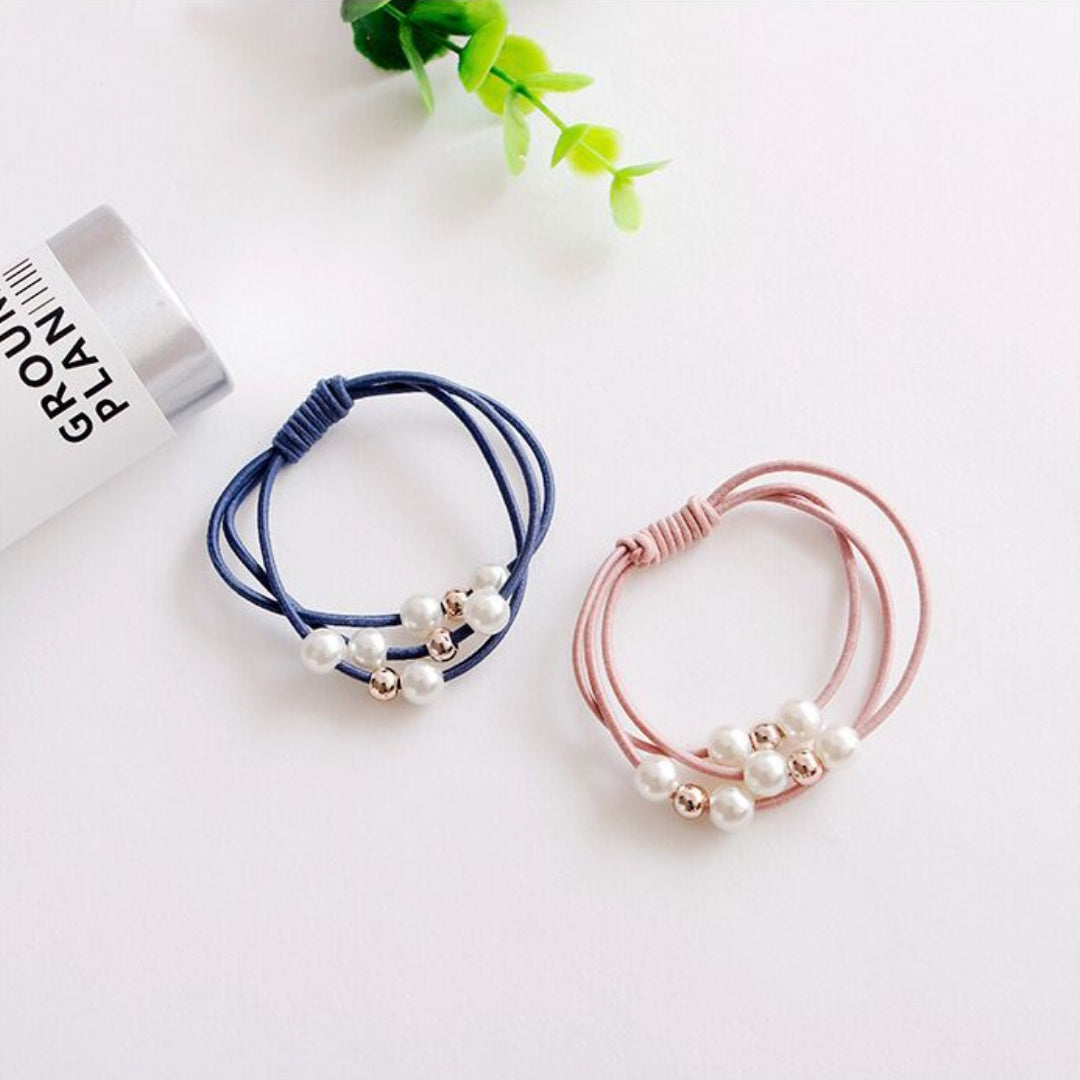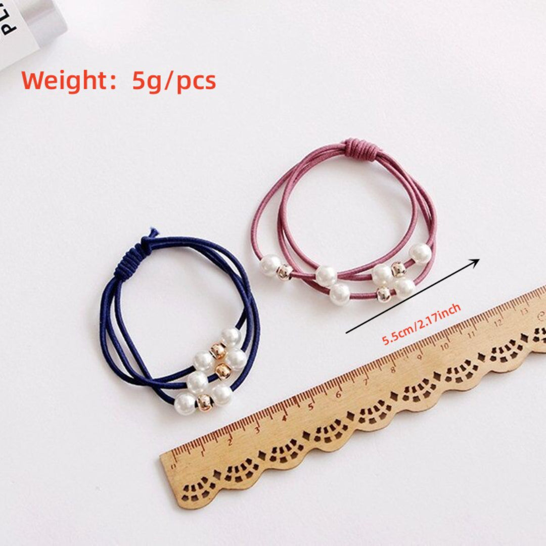 Enhance your hairstyle with these 3pcs faux pearl decorated elastic rubber band hair accessories. Perfect for adding a touch of elegance to your everyday look.