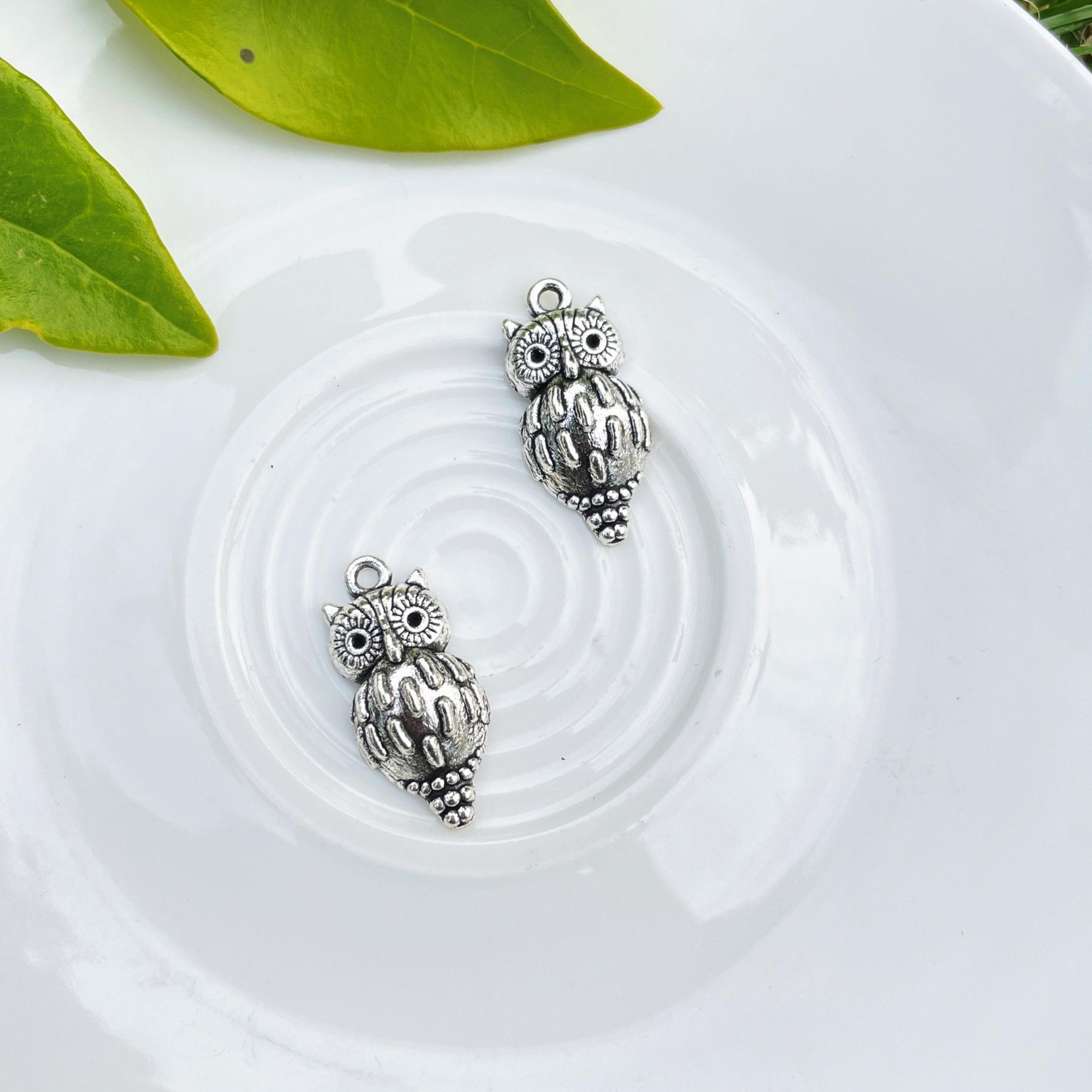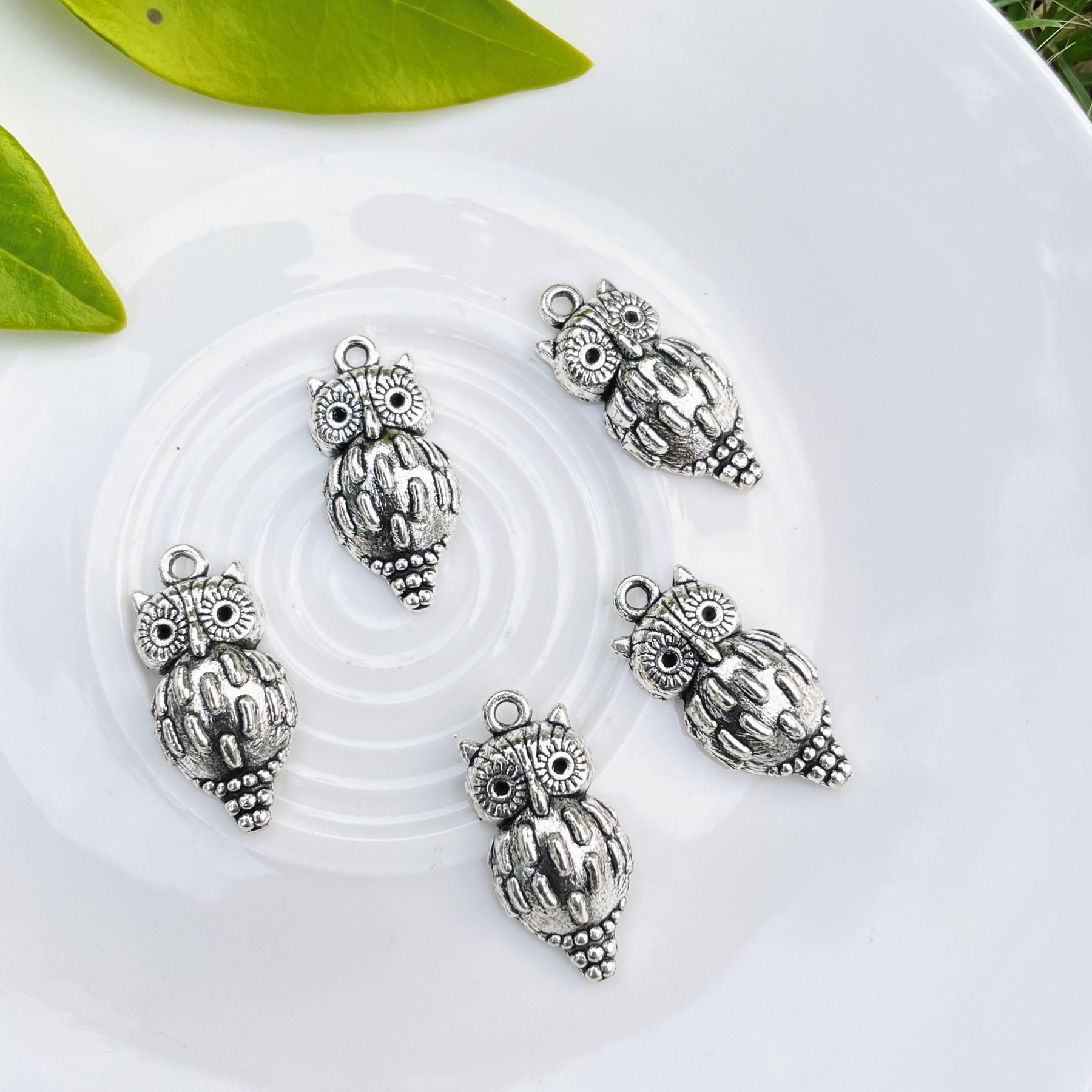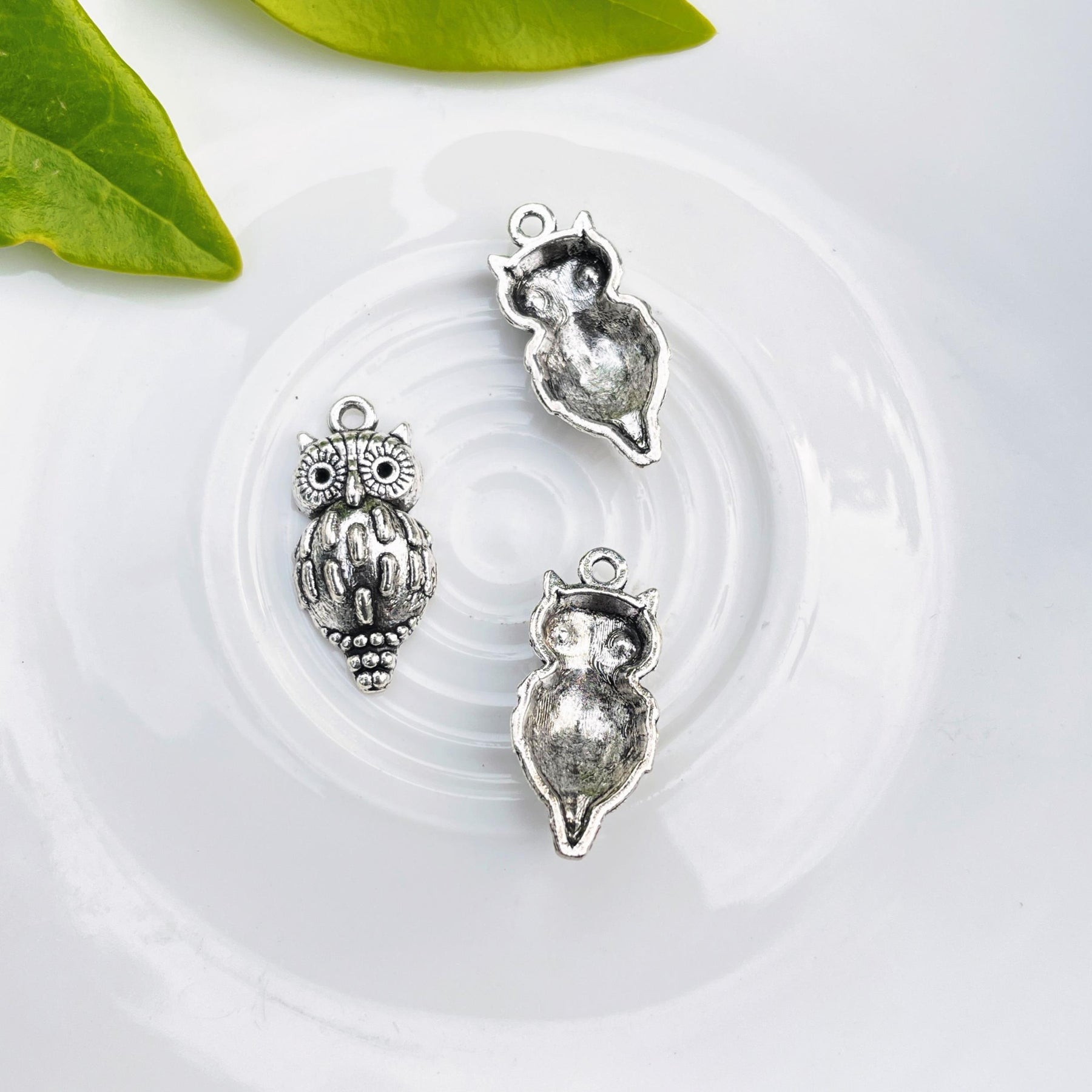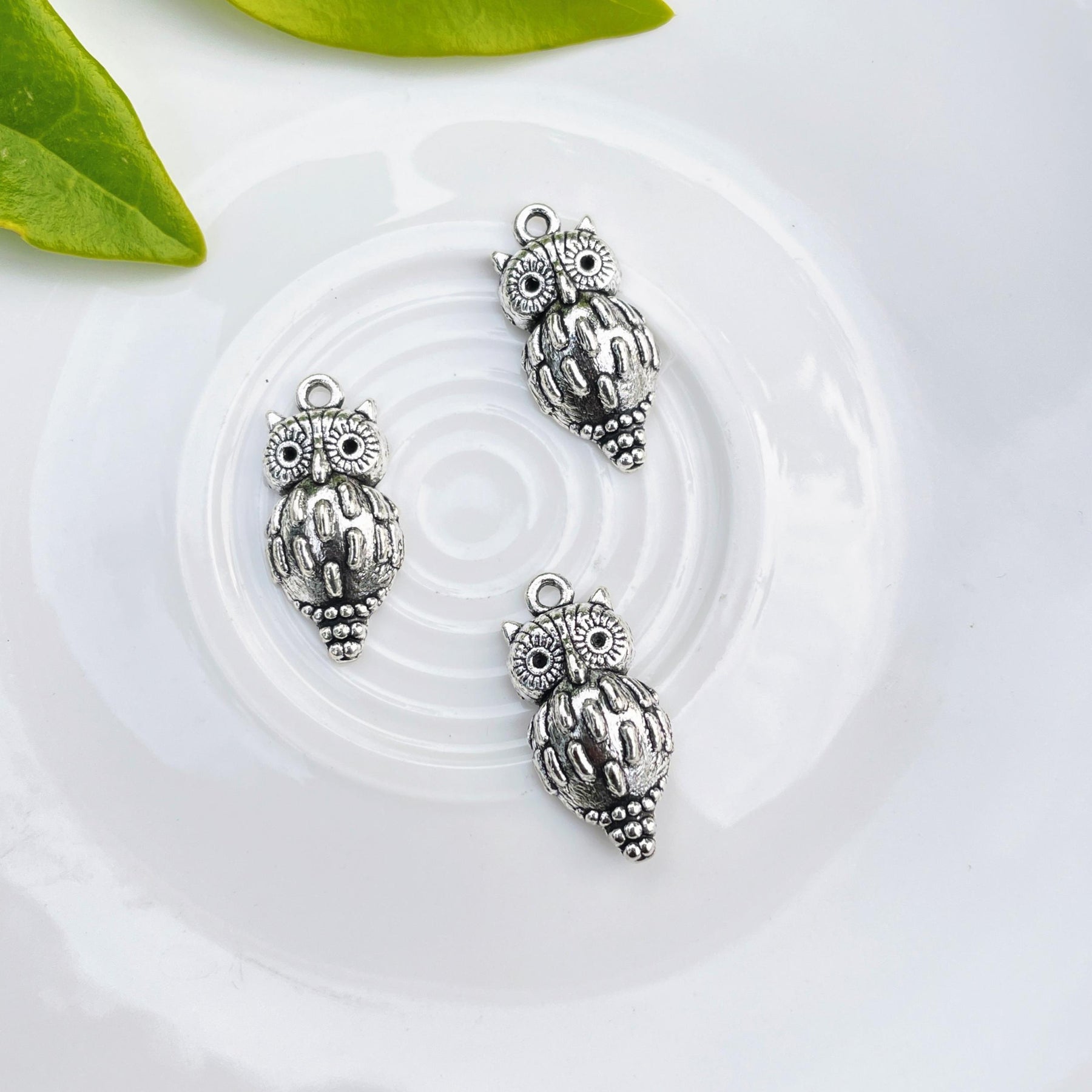 Enhance your jewelry creations with this set of 3 silvery owl alloy pendants. Suitable for making earrings, bracelets, necklaces, and other accessories.