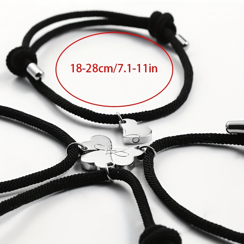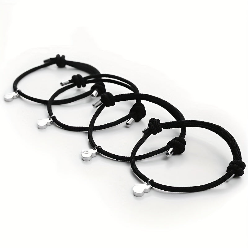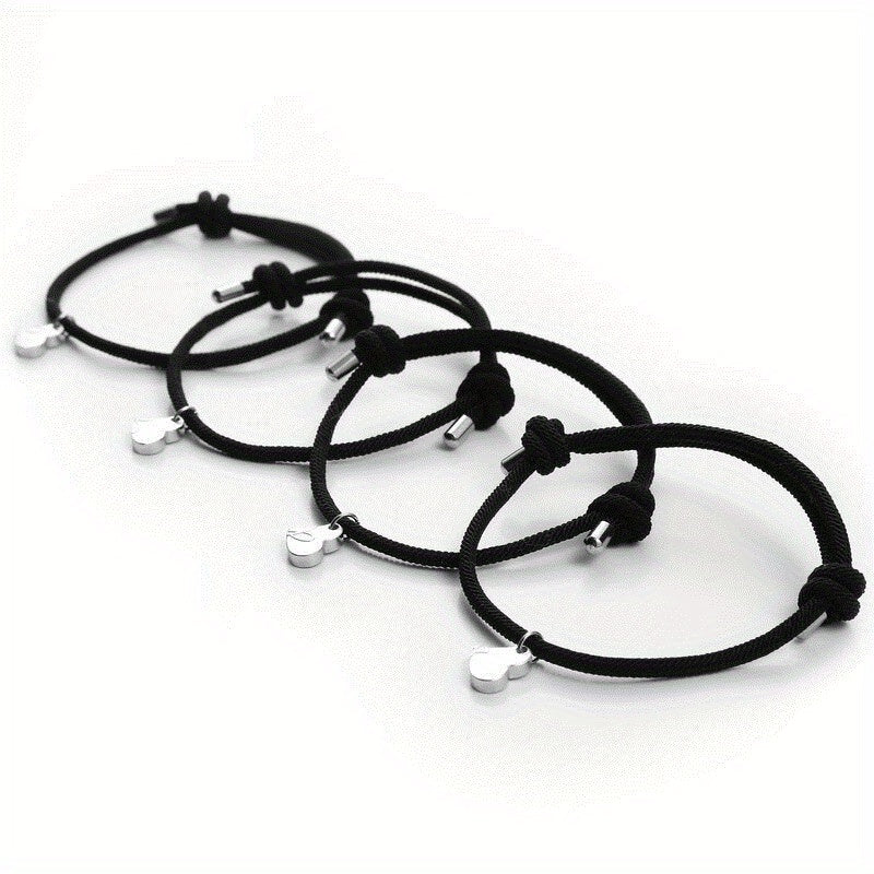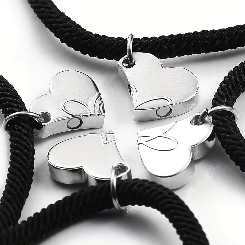 This set includes 4 heart-shaped magnet suction bracelets made of alloy, perfect for good friends and family. The creative braided hand ropes are ideal for men.