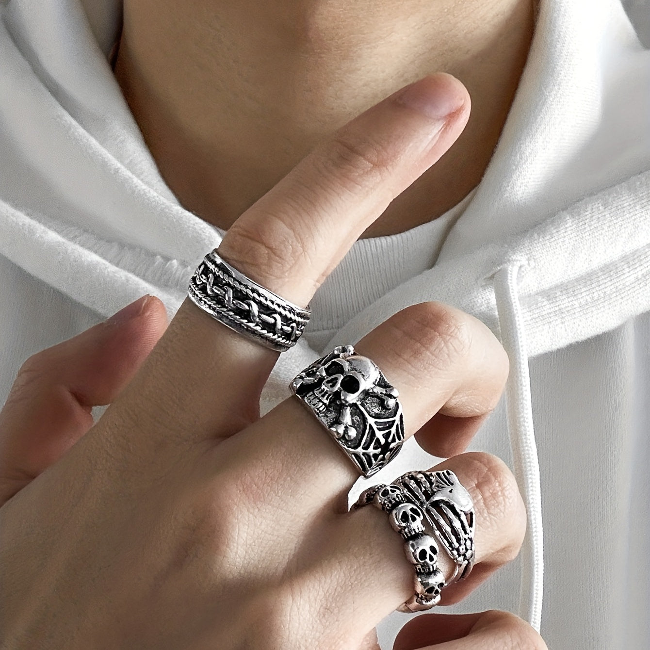 Add a touch of hip hop style to your daily look with this casual skull headgear ring set. Perfect for daily wear and decoration.