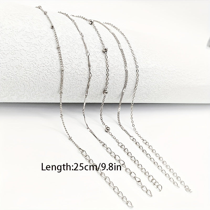 This anklet set includes 5 pieces of ankle bracelets made of copper with delicate tiny beads. They are adjustable to fit various ankle sizes and are perfect for adding a touch of elegance to your outfits.