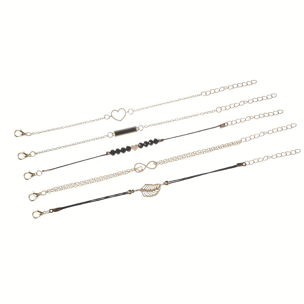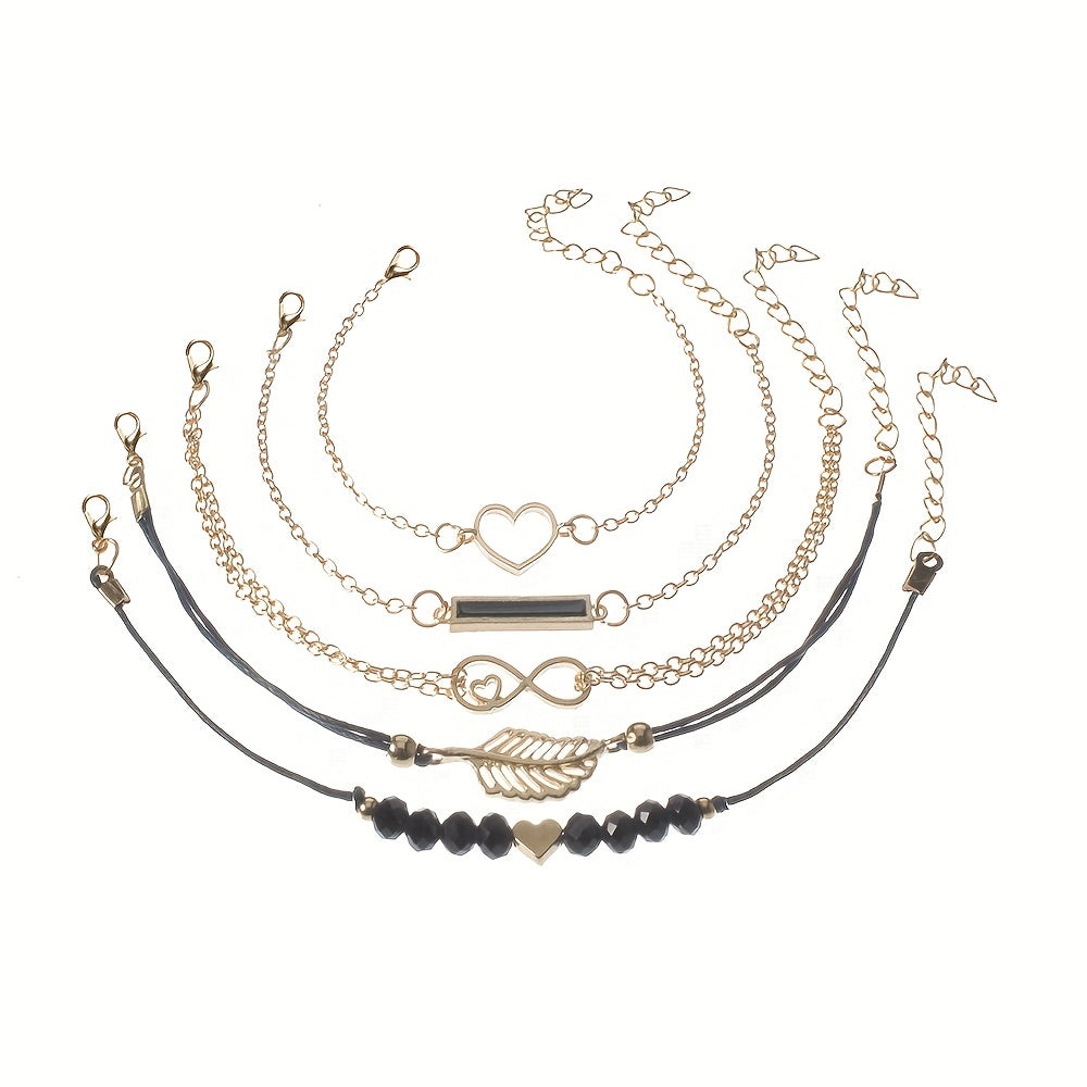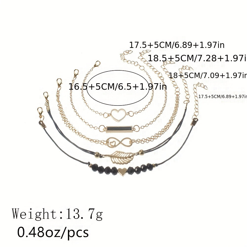 This stackable bracelet set features 5 pieces with inlaid rhinestones, making it a perfect gift for Mother's birthdays. Each bracelet adds a touch of sparkle to any outfit.