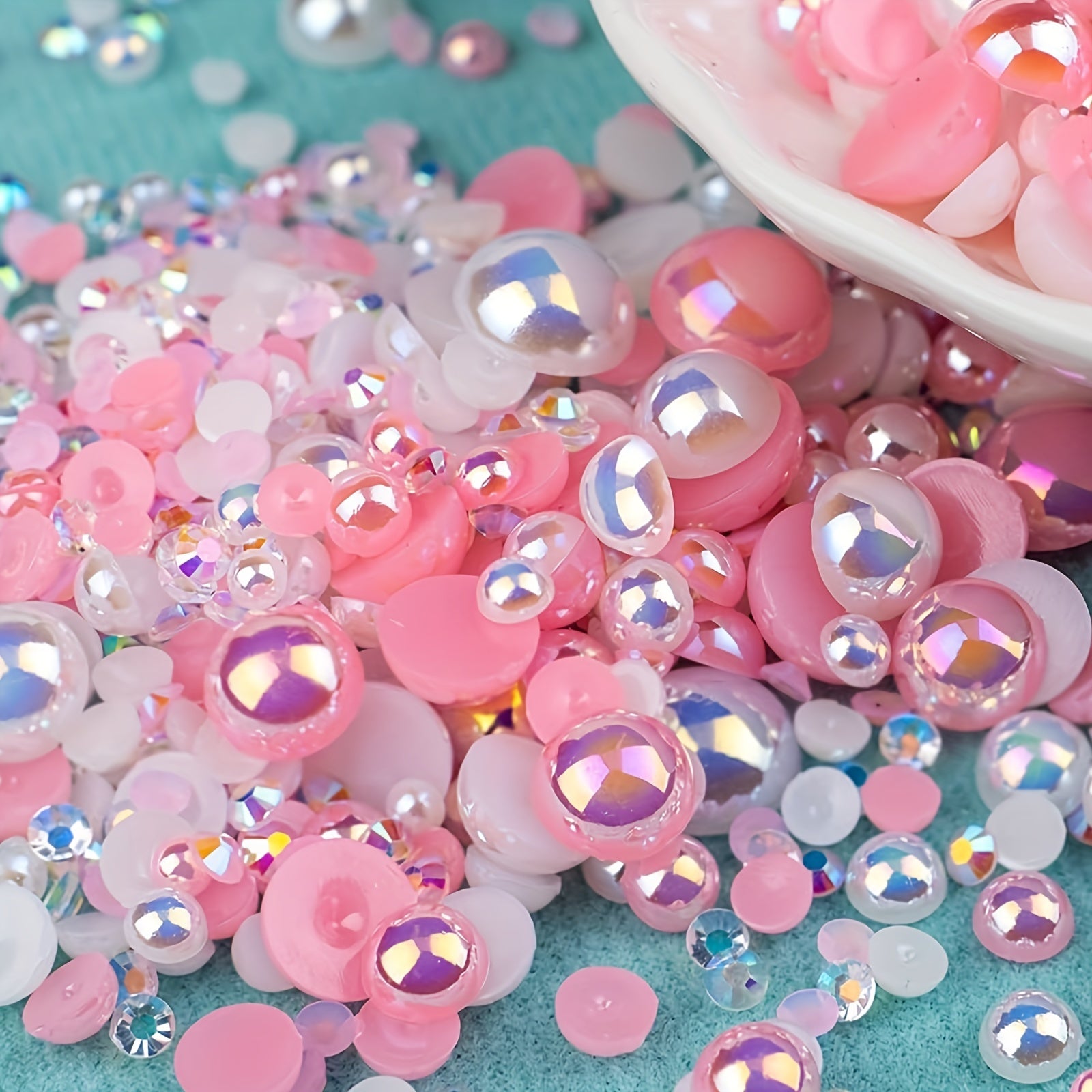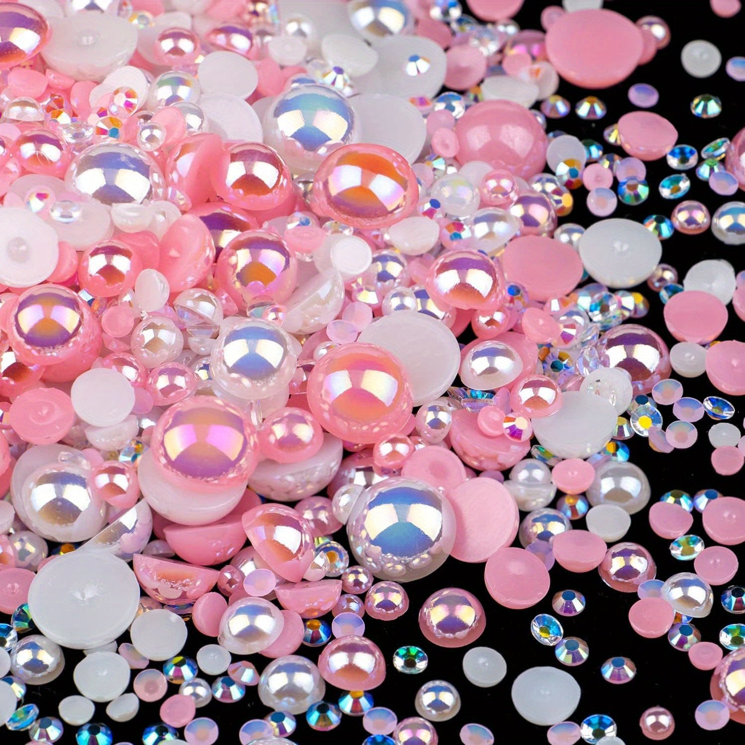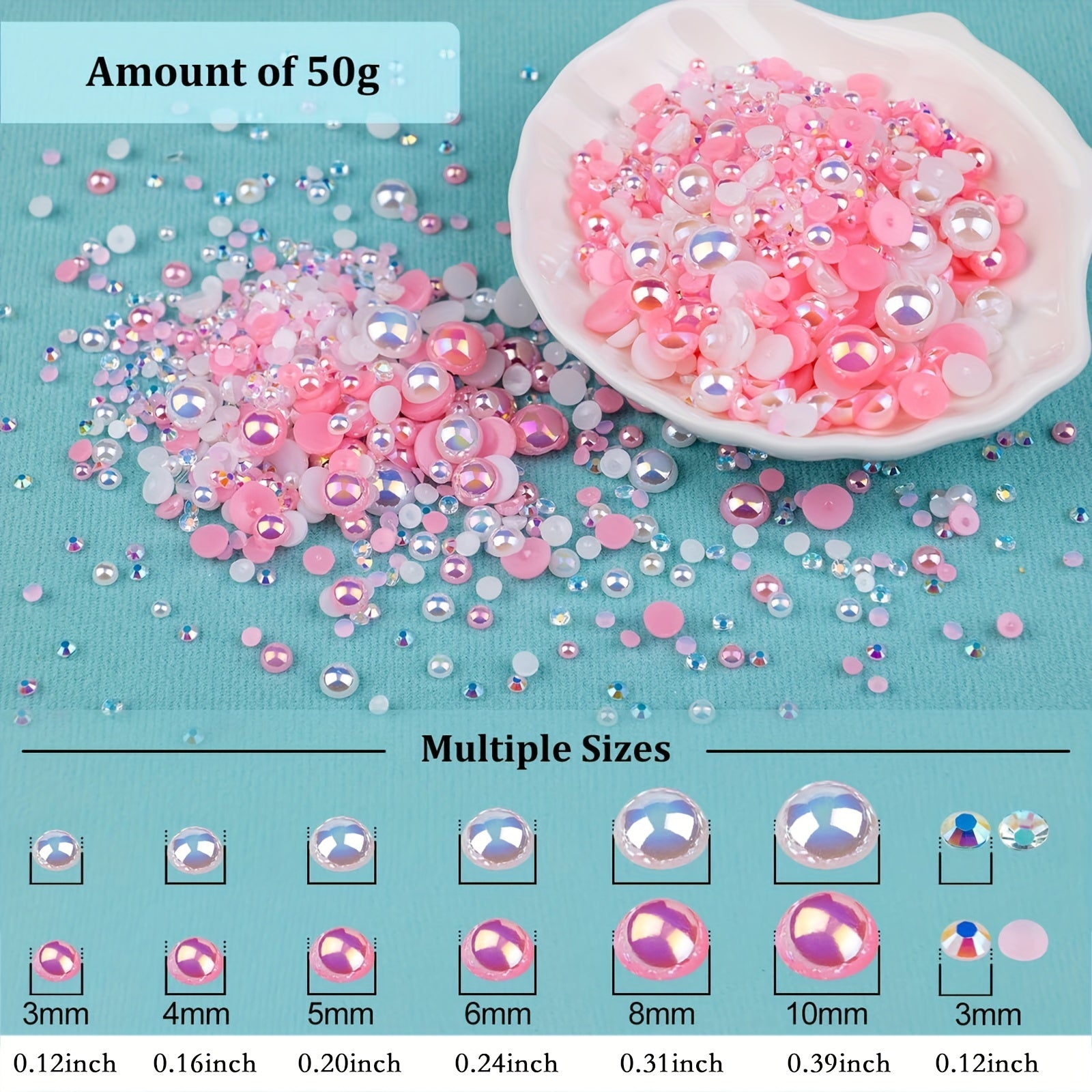 This 50g pack includes mixed size resin rhinestones and half faux pearls for DIY jewelry and nail arts decoration. Add a touch of elegance to your creations!