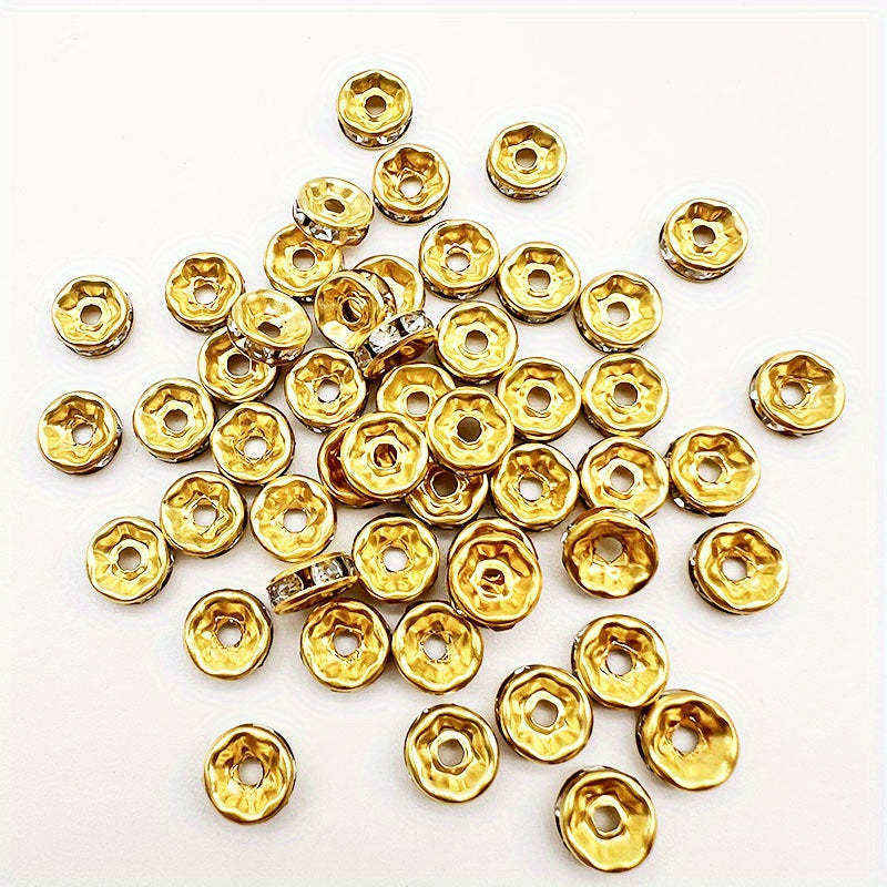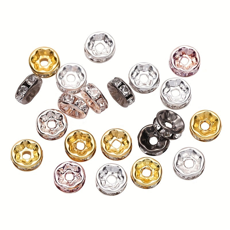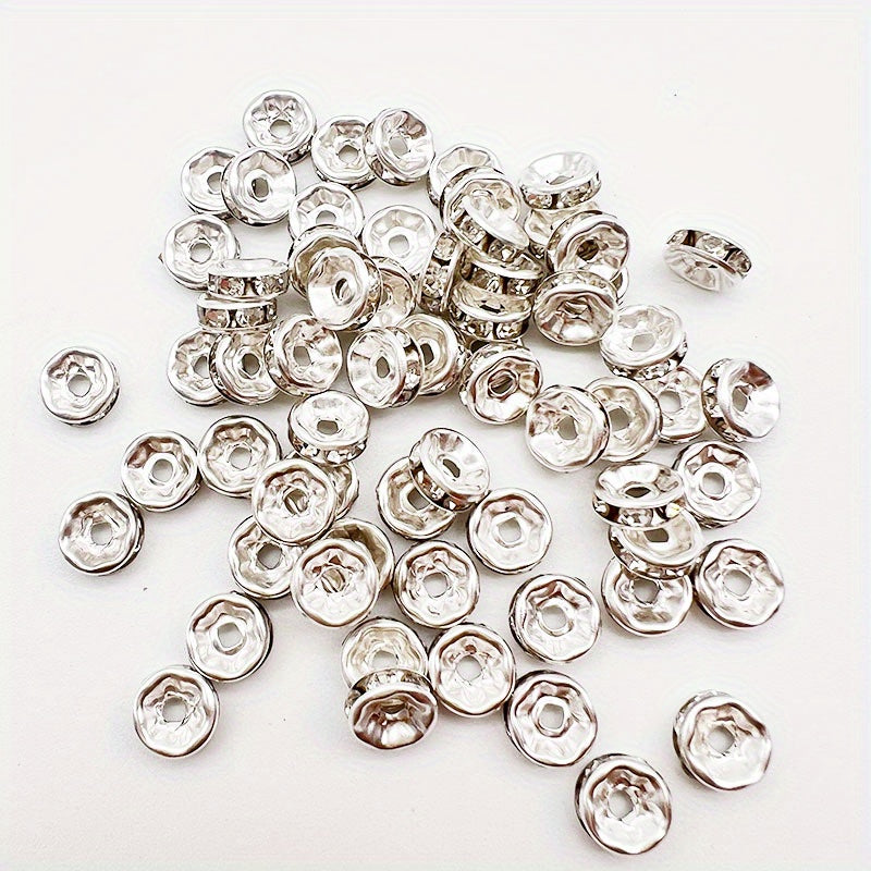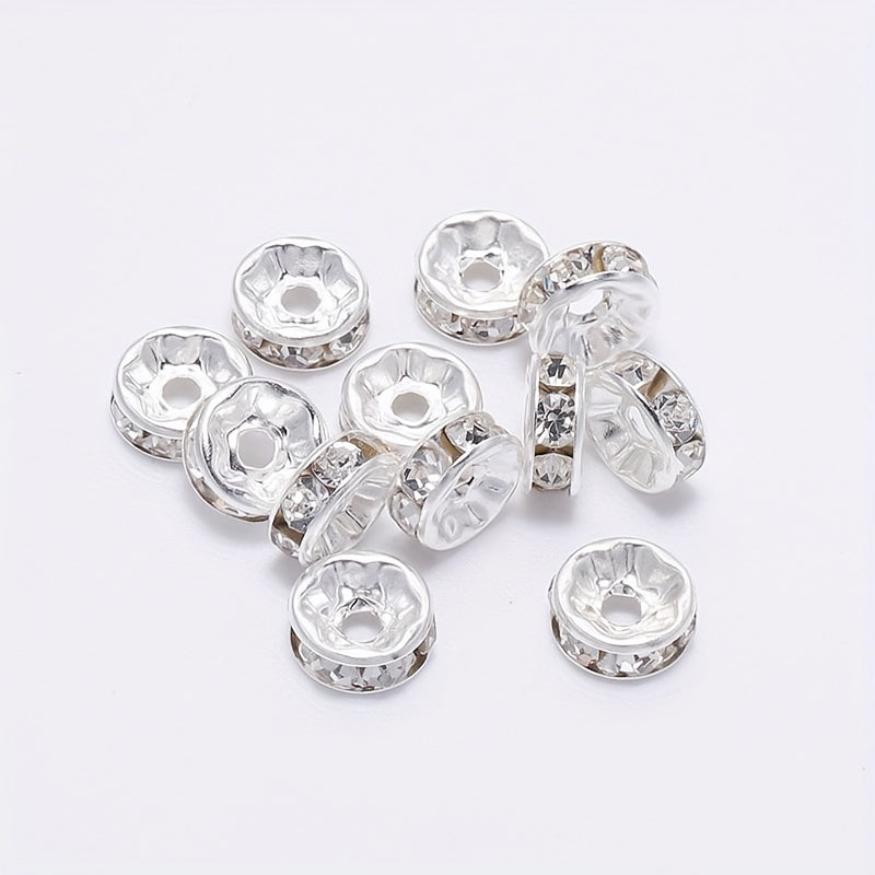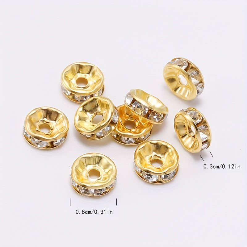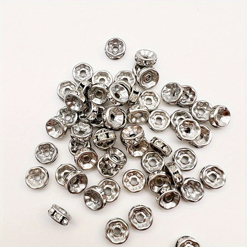 This package includes 50 pieces of 0.31-inch rhinestone round wheel beads that can be used for creating jewelry. Perfect for DIY projects.
