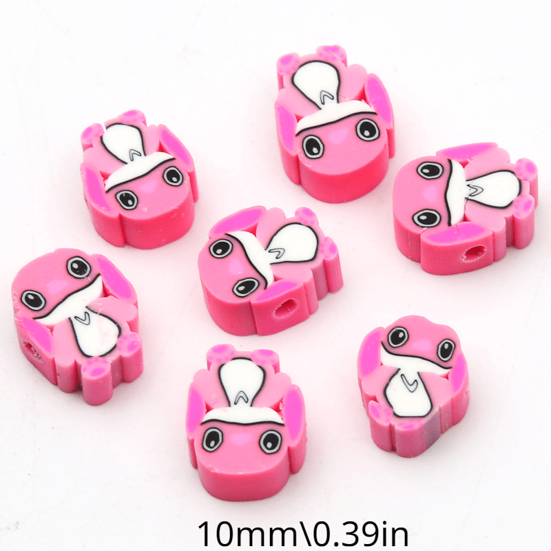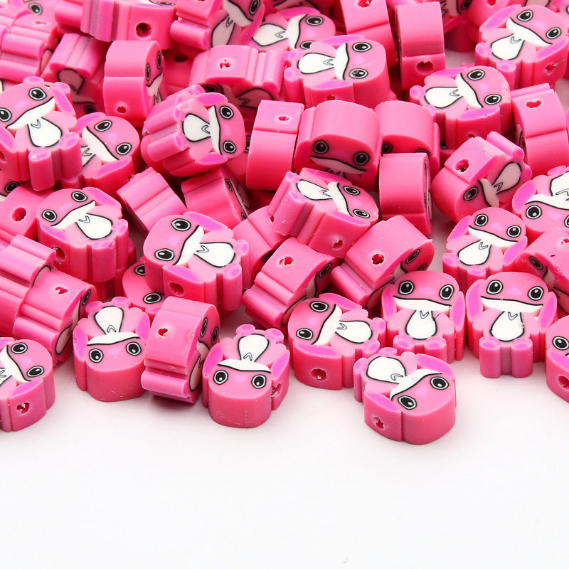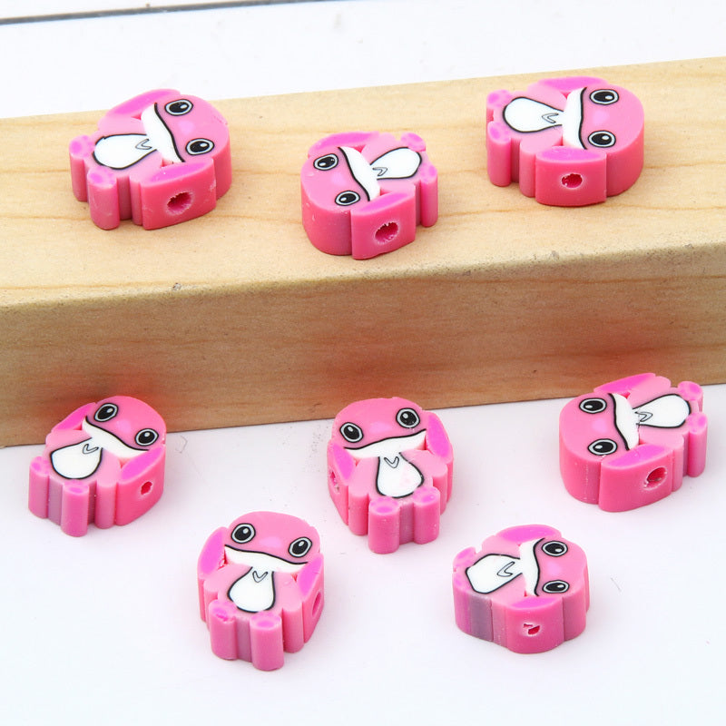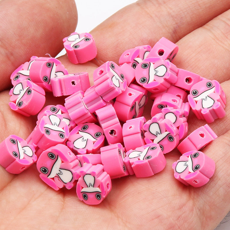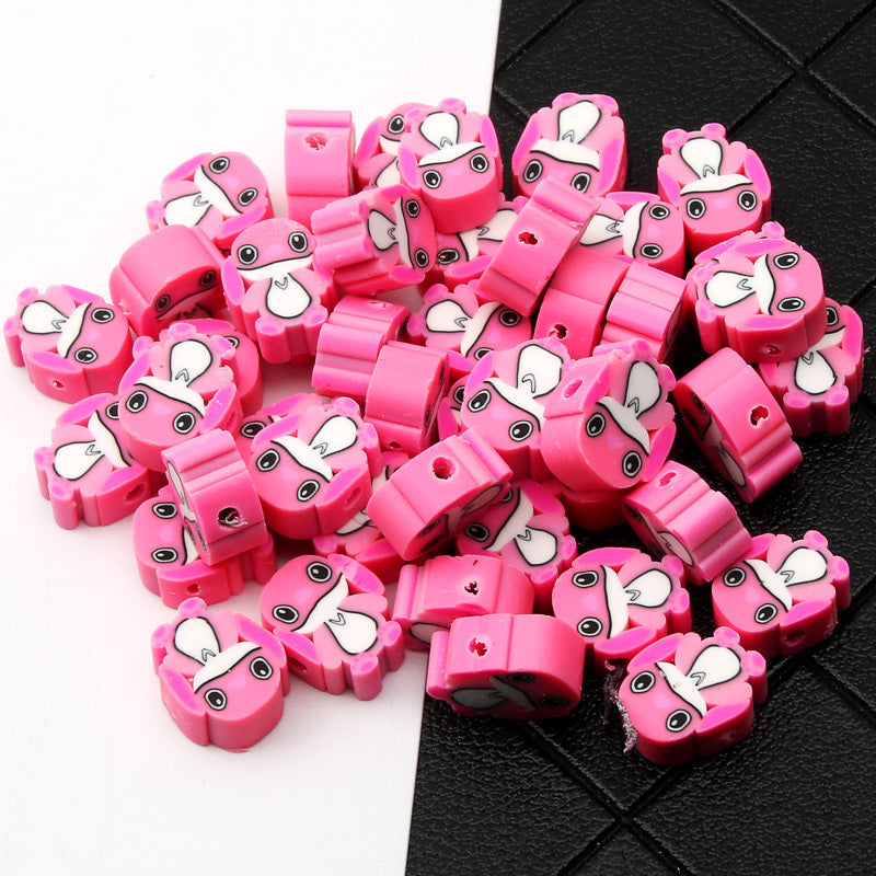 Add a touch of charm to your jewelry creations with these 10mm pink animal polymer clay beads. Perfect for crafting unique pieces, these clay spacer beads are ideal for bracelets, necklaces, and more.